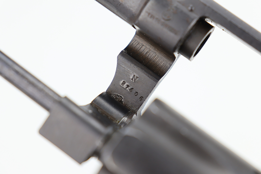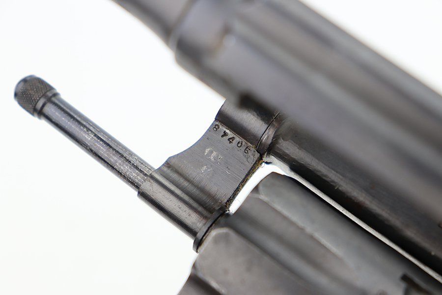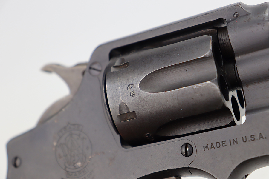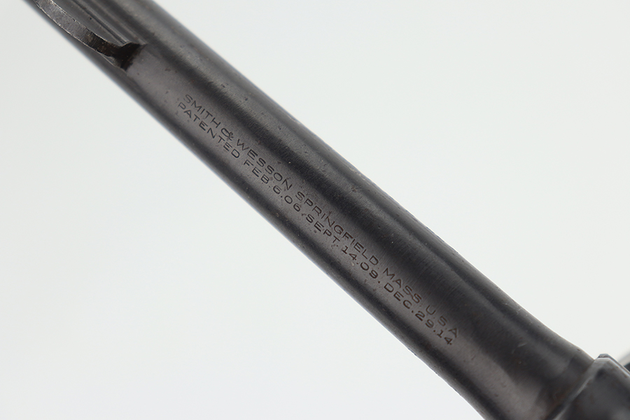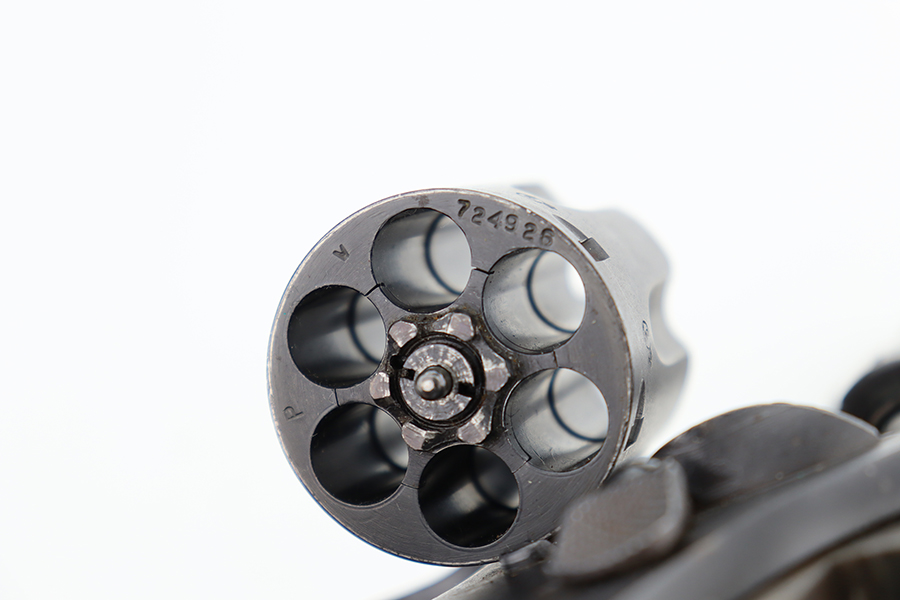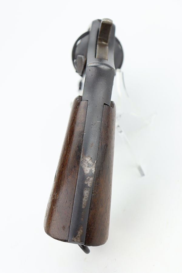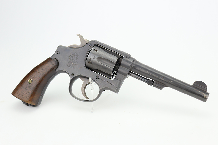 06/04/2024 – For sale is a British proofed S&W Victory revolver chambered in .38 S&W. The revolver is in overall 97% condition with some wear on the barrel and the overall finish is dulled. The left side of the barrel and in front of the cylinder is stamped with British proof marks. Above the trigger guard is stamped with the Birmingham Proof House. The bore is very bright and excellent. There are some scratches from use on the wood grip but there are no cracks.