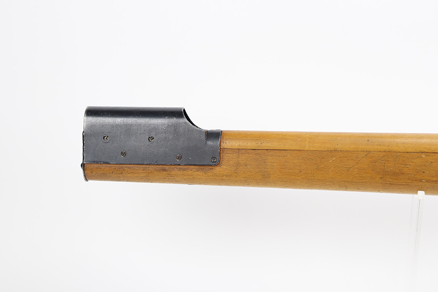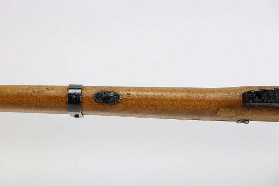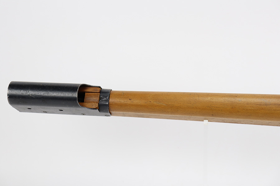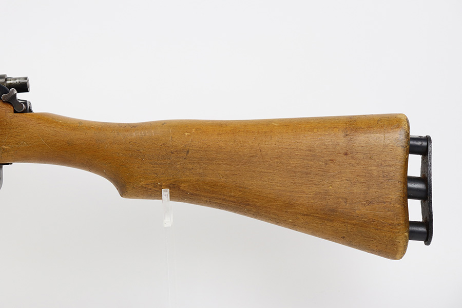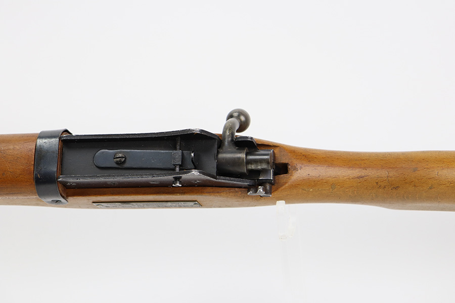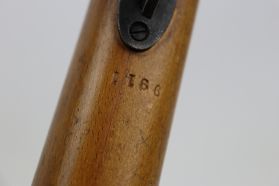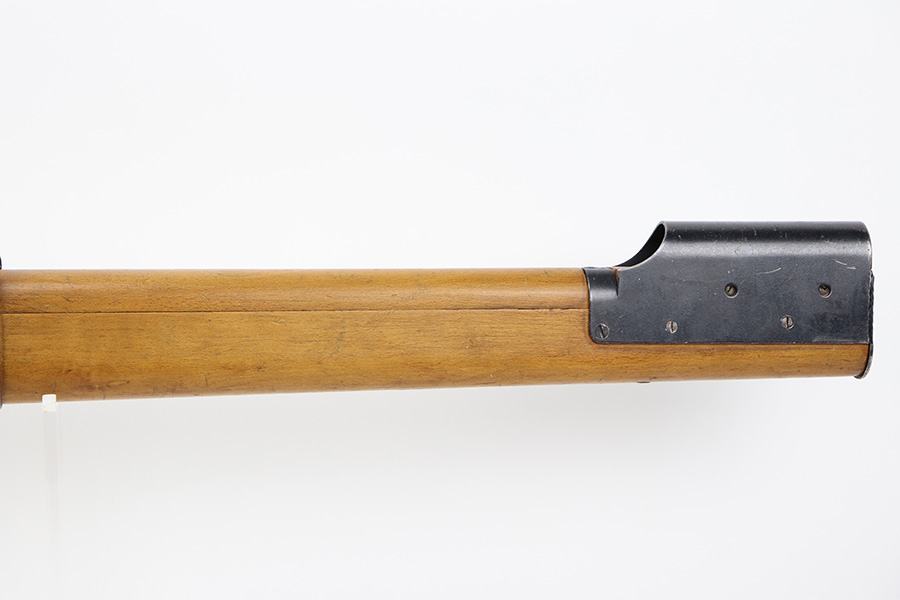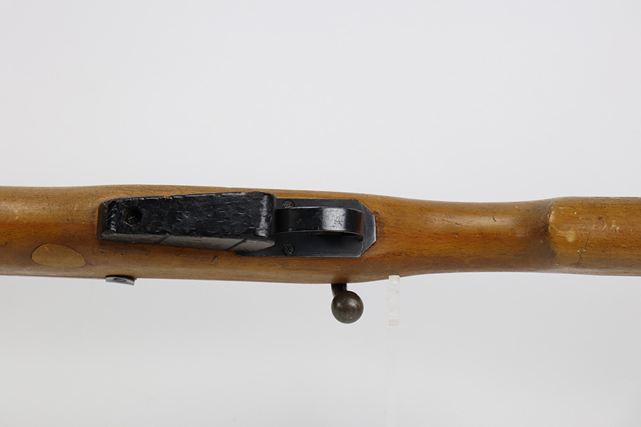 12/5/23 – Up for sale is an uncommon Swift Model B MkIII training rifle used by the British Commonwealth. The rifle was a cheap way to practice fundamentals and marksmanship at a fraction of the cost of a real rifle. These rifles were set up with a paper target an inch away and the rifleman would “shoot” the rifle and the rifle would stab the paper with a protruding needle. The original rifles were set up to mimic Pattern 14 rifles but the MkIII were set up to act like a No4 Mk1 Lee Enfield. The action is sound and works properly. The metal retains good bluing and the stock is also free of any damages. There is a stock repair on the right side in front of the magazine.