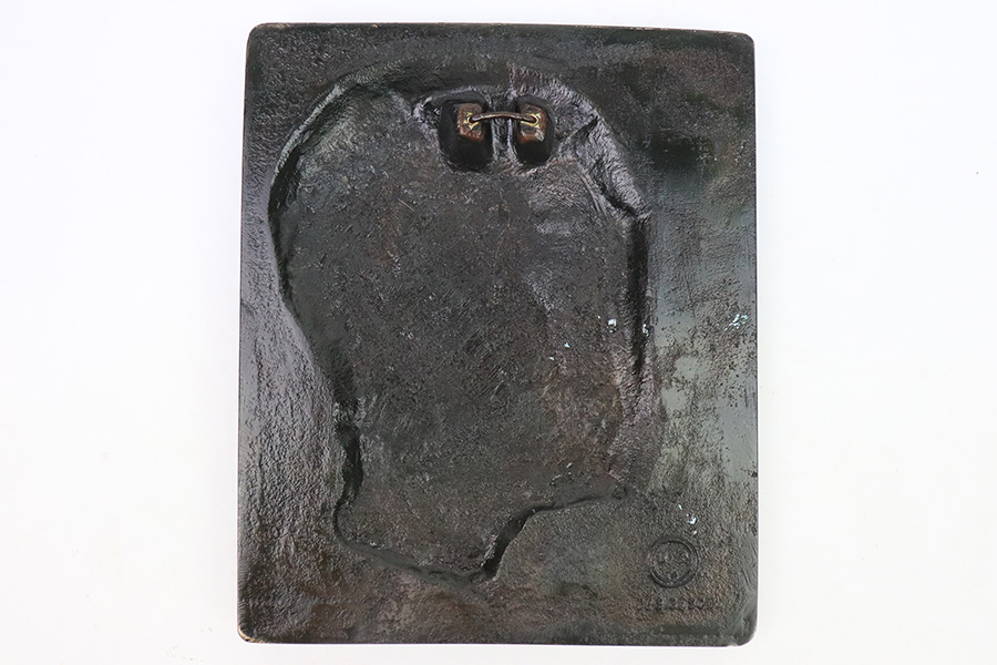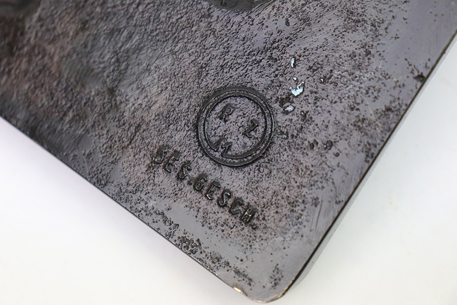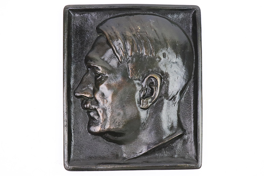 12/13/22 – This is a bronze Hitler Bust from WW2. The rectangular plaque has excellent detail and is non-magnetic. Measures just under 7 inches x 5.75 inches. The reverse is RZM stamped and reads “Ges. Gesch.” underneath.