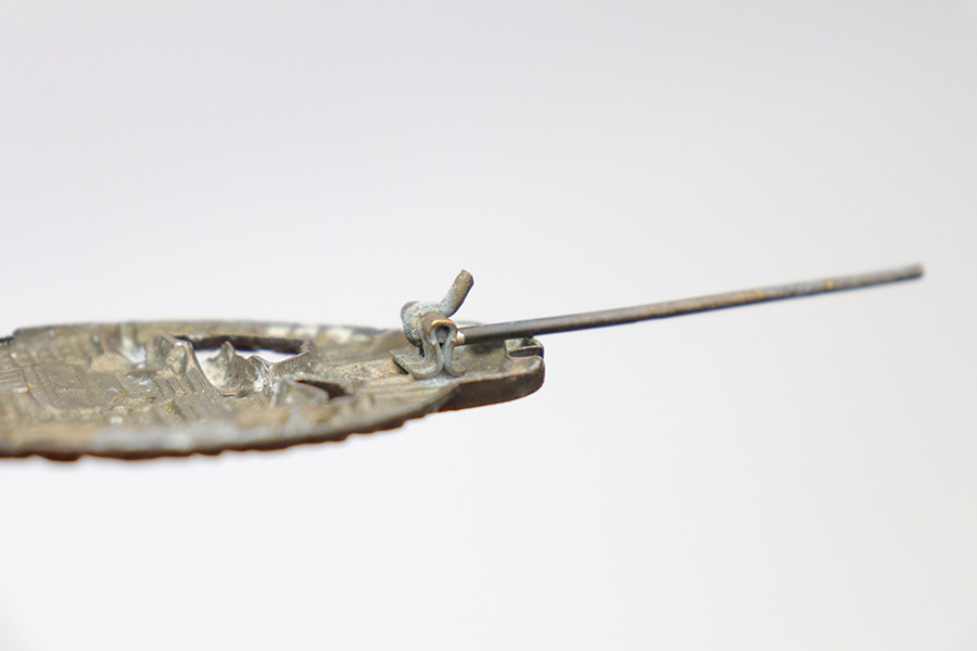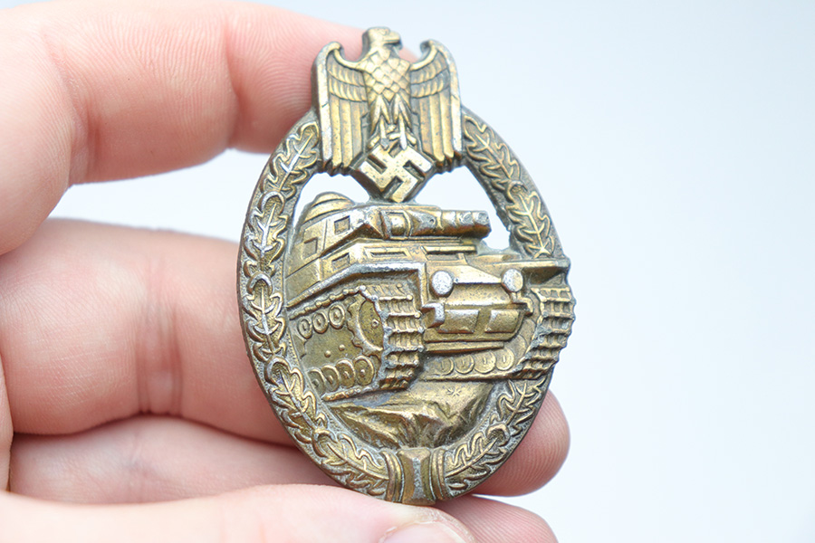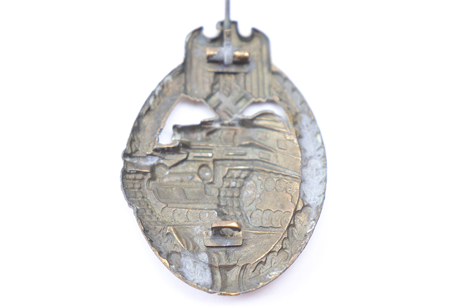10/22/21 – This is an original Bronze Panzer Assault Badge from WW2. The badge is made of zinc alloy and is non-magnetic. The pin is in great shape and there are no maker markings or stamps on the reverse. Some mild patina but no major issues. A great example.