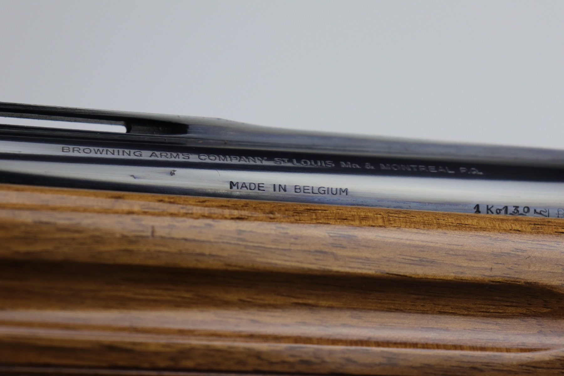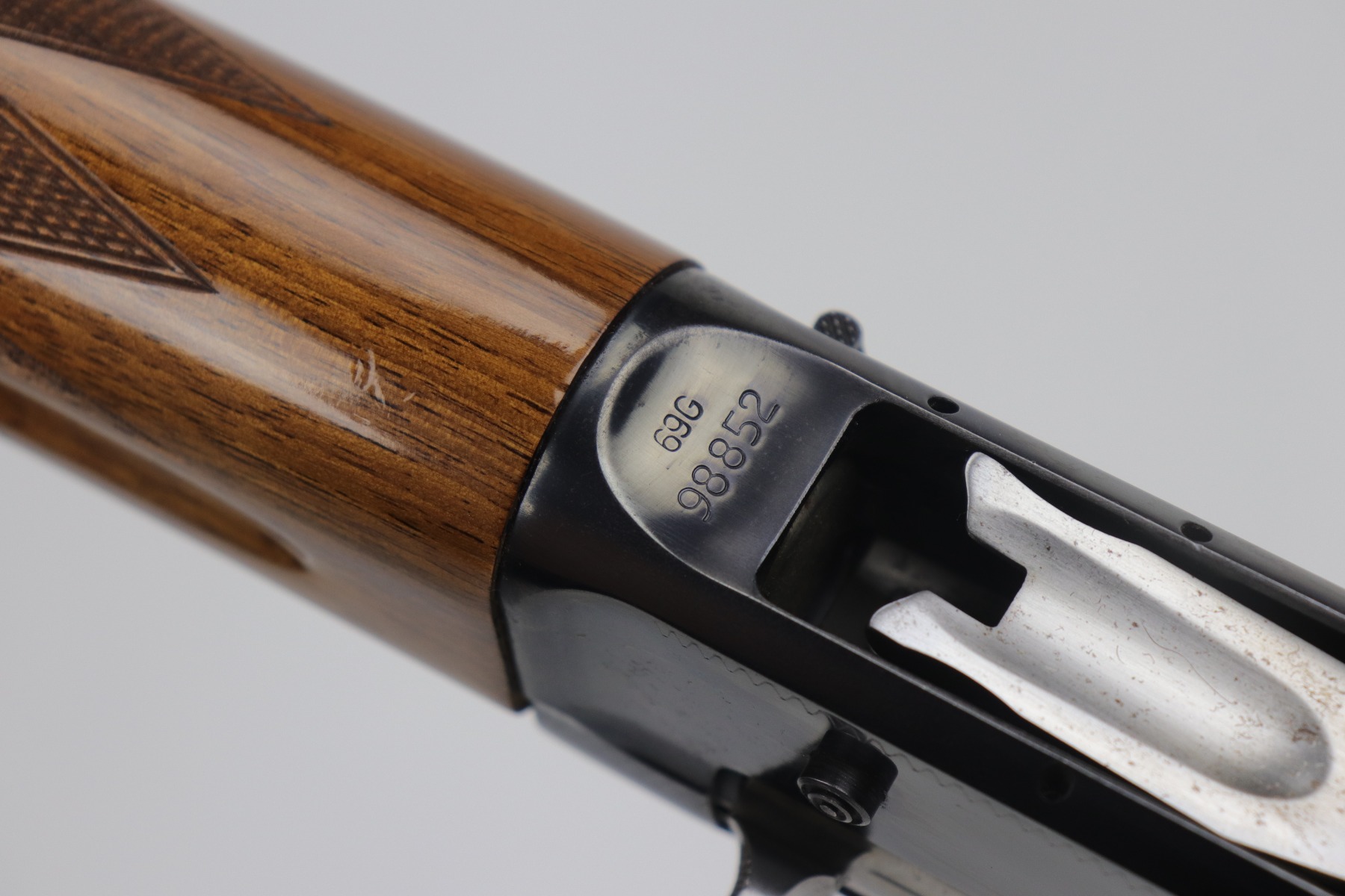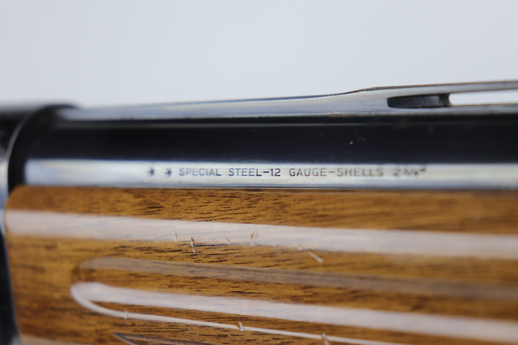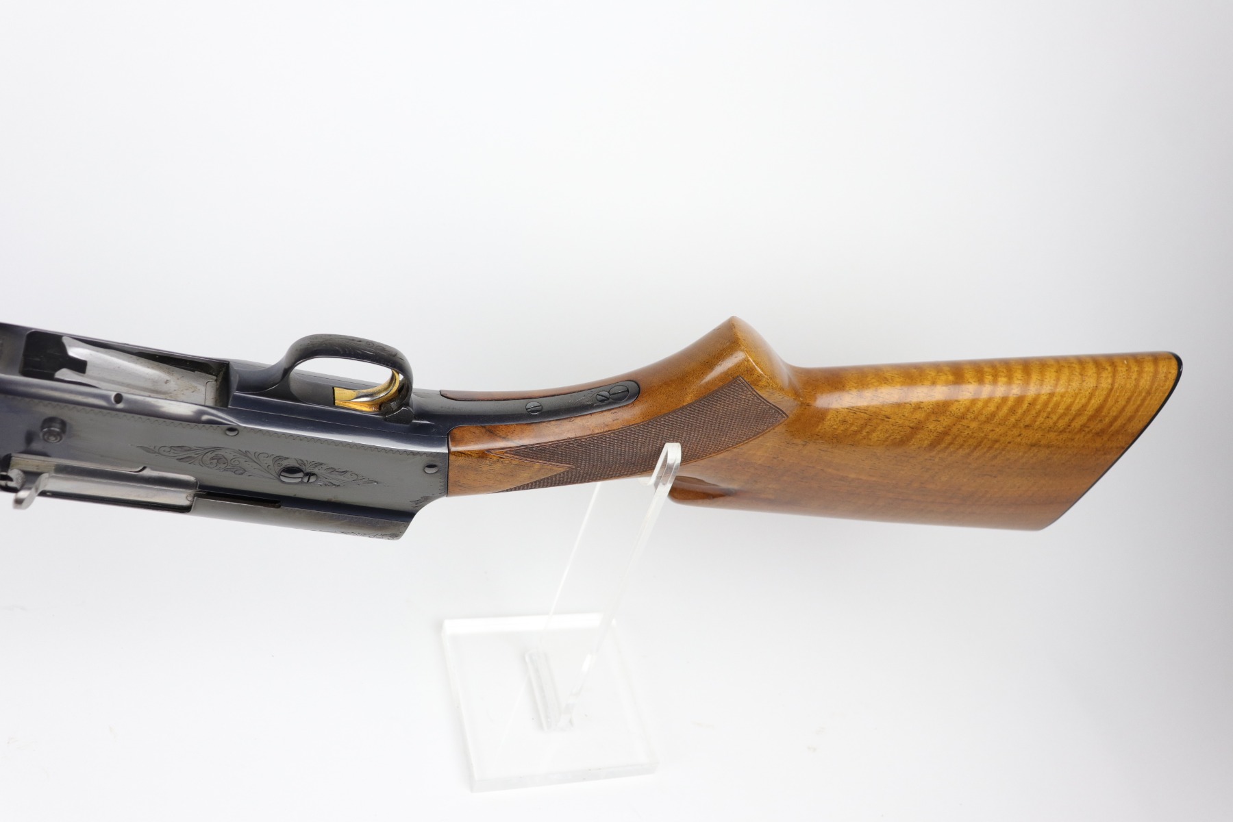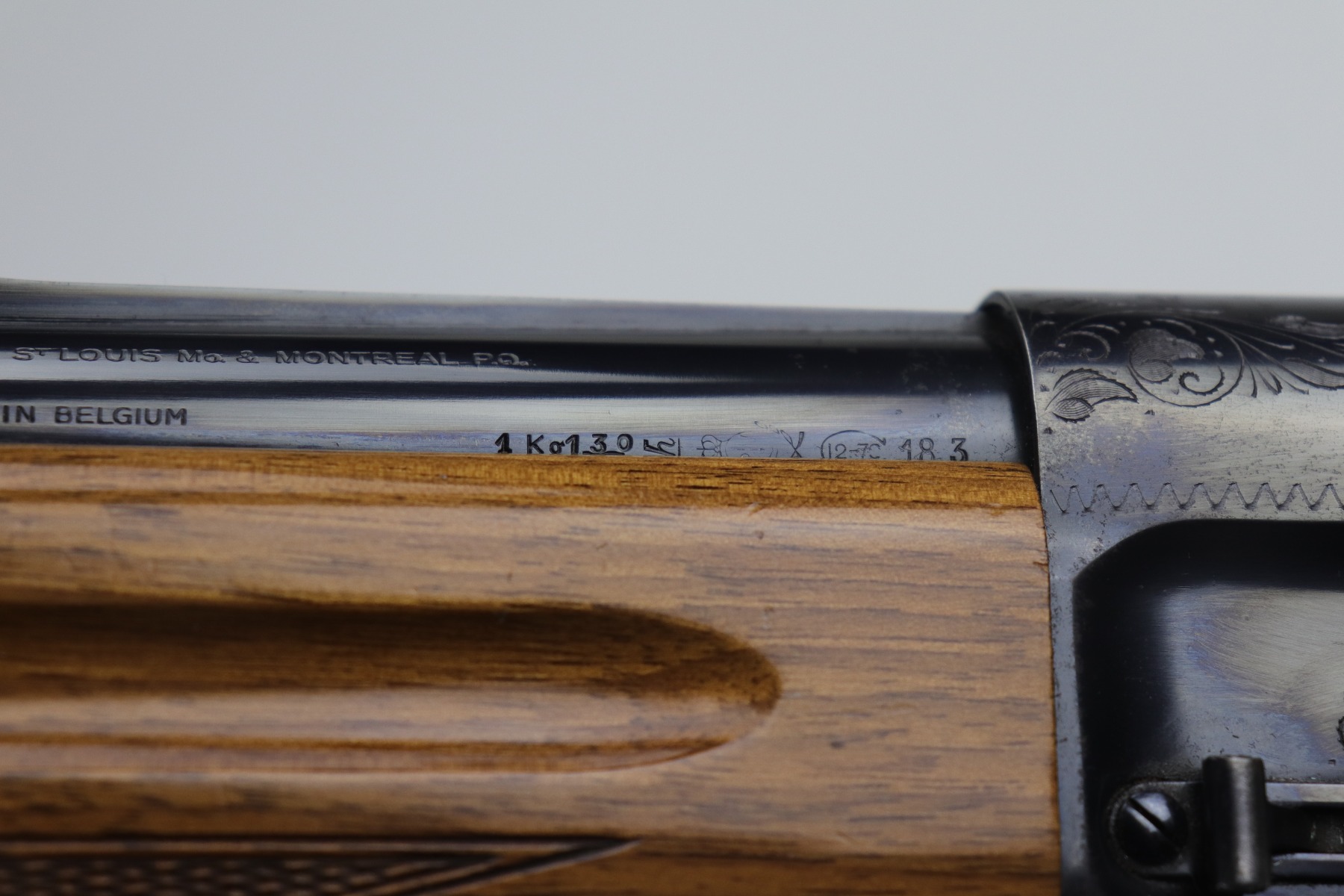 8/6/20 – This is a Browning A-5 Light Twelve Semi Auto Shotgun, chambered in 12GA. This particular gun was manufactured in Belgium. From the “69G” preceding the serial number, we believe this gun is of the light weight construction, manufactured in 1969. The gun has Belgian proofs and is in excellent condition. It has retained almost all of its bluing. There a just a few small areas of light freckling here and there. The stock is excellent. It has just a few very light handling marks. Functions well. Minty bore. 26.75″ bore. 14.75″ length of pull. Factory choke. We don’t know any other details about the choke.