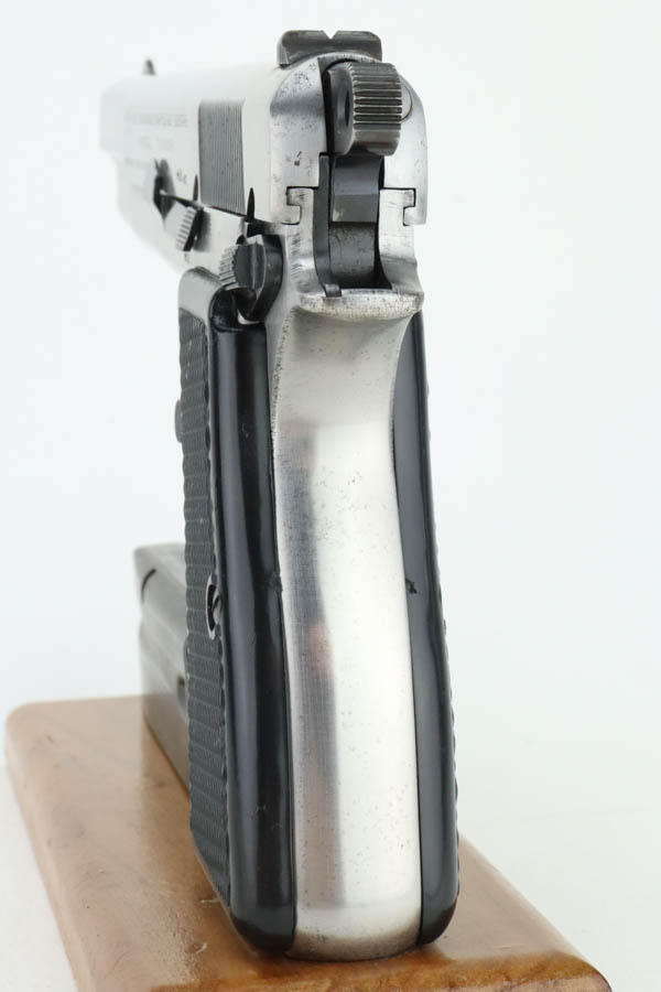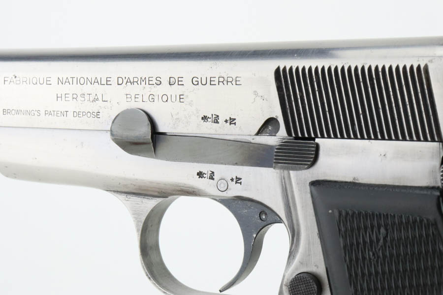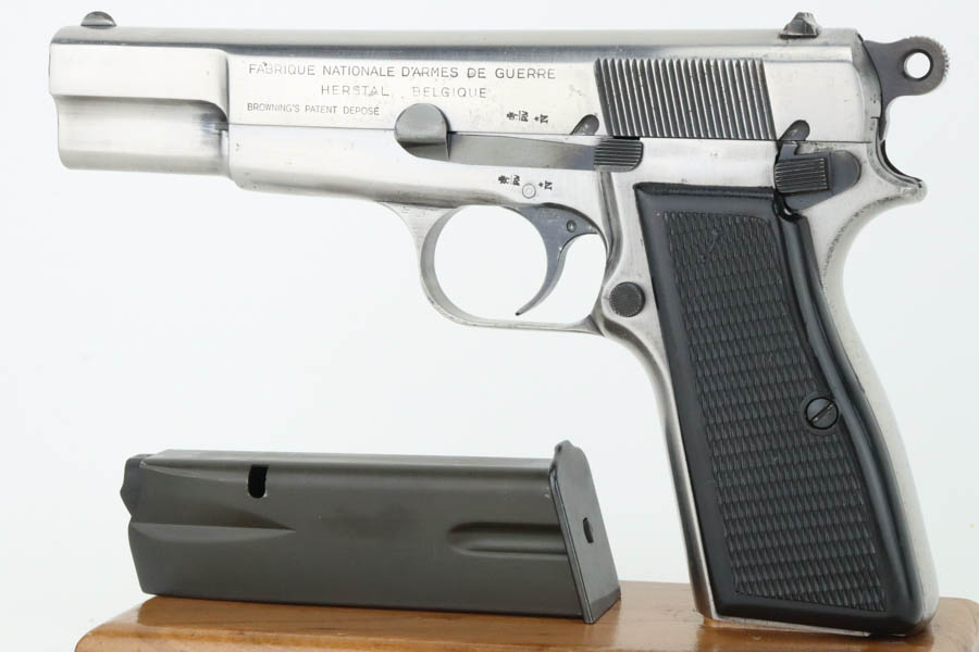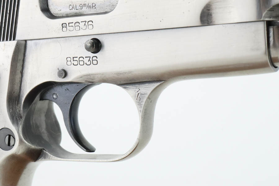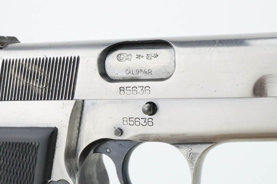 06/06/2024 – For sale is a Browning Hi Power made in 1959 at the FN Factory in Belgium. This handgun is overall in good condition but the finish has been stripped from the metal surface and is bare metal. The stamps are still clear and legible. The bore is bright with some carbon build up in the grooves. The plastic grip is clean and in good shape.