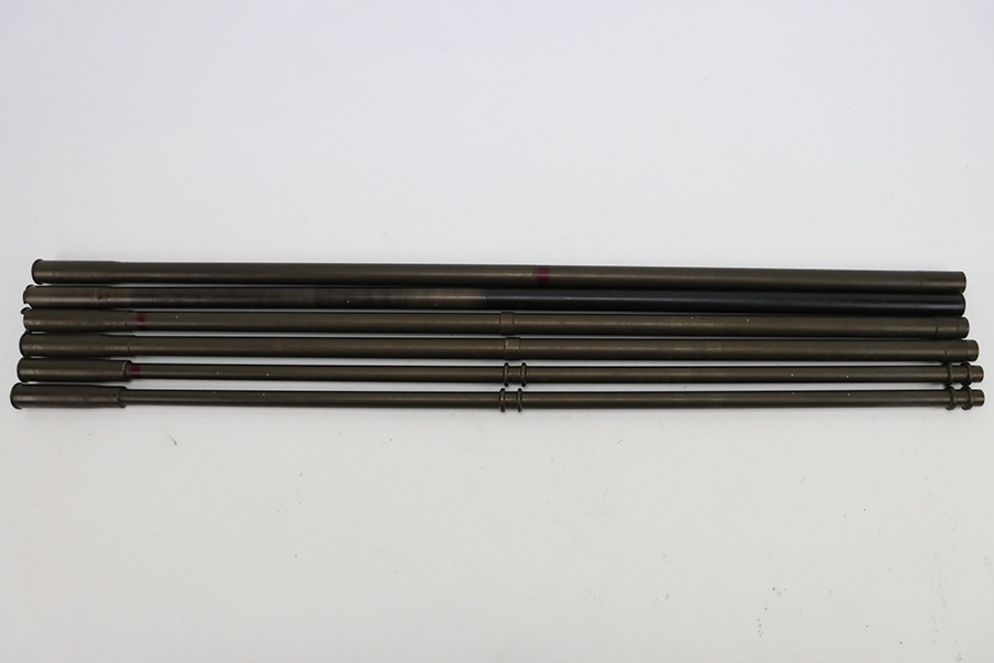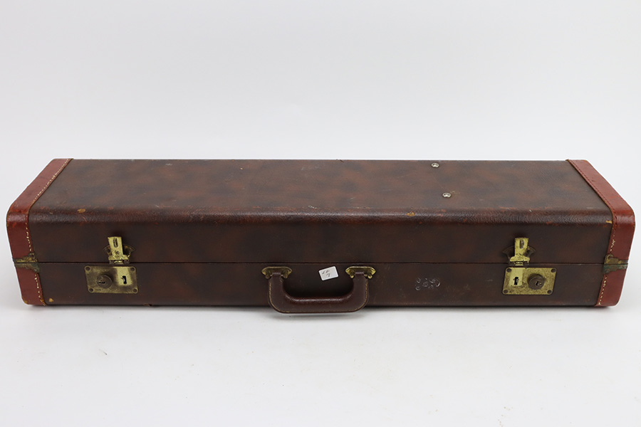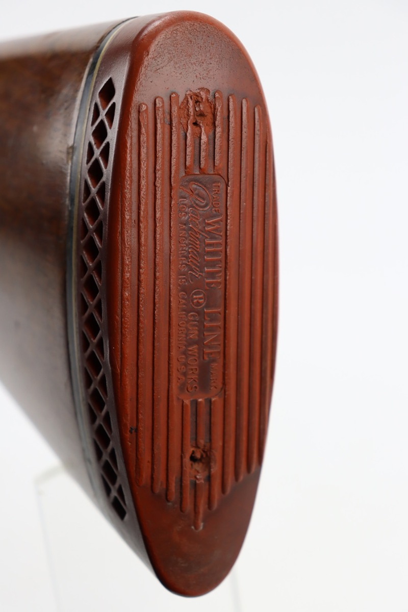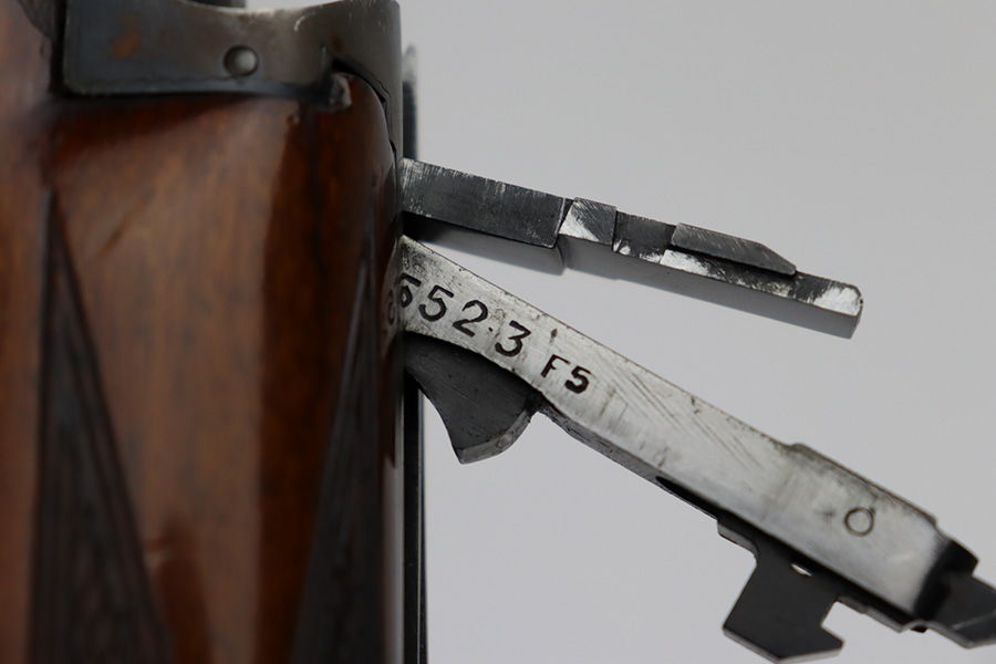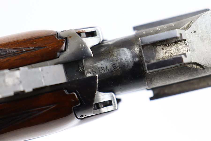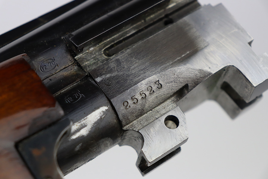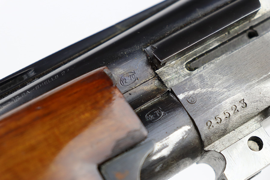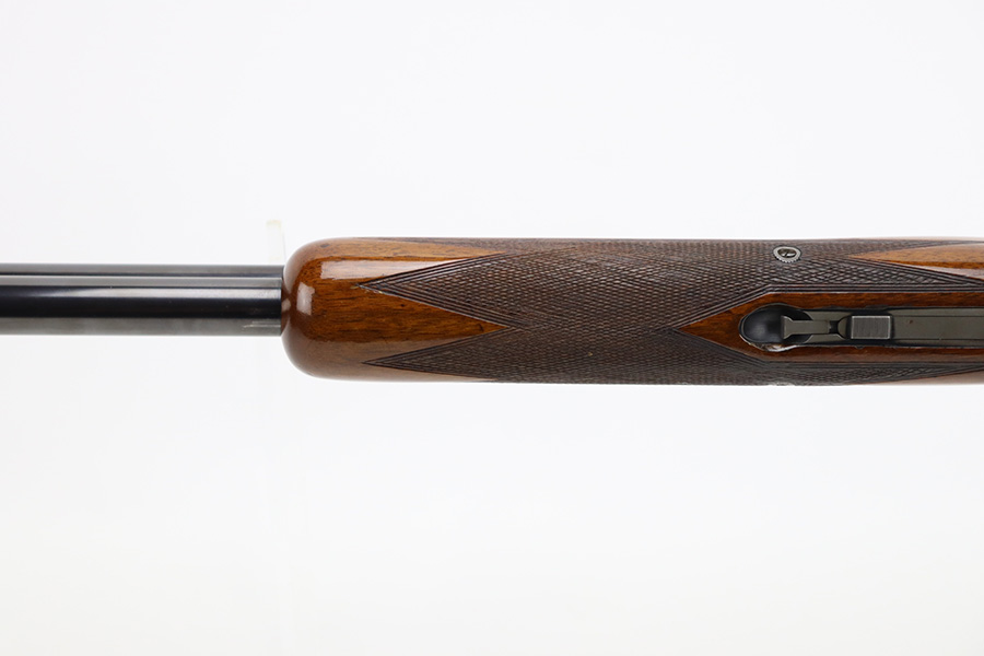 1/16/24 – This is an excellent example of a Browning Superposed Over/Under Shotgun Set, manufactured in Belgium in 1951. It is chambered in 12 GA, but comes with a complete set of scarce, full-length tube inserts for .410, 28, and 20 gauges. It also comes with all of the proper hardware. The gun, the tube inserts, and the hardware all come in a really nice green velvet-lined carrying case. The gun itself is a Grade I and has retained about 90% of its original high polish bluing. The majority of the wear is on the high edges of the receiver and on the lower tang of the trigger guard. The wood furniture is excellent with just some extremely light cracking in the laminate finish. Excellent, shiny bores. 30″ barrels, 14.5″ LOP.