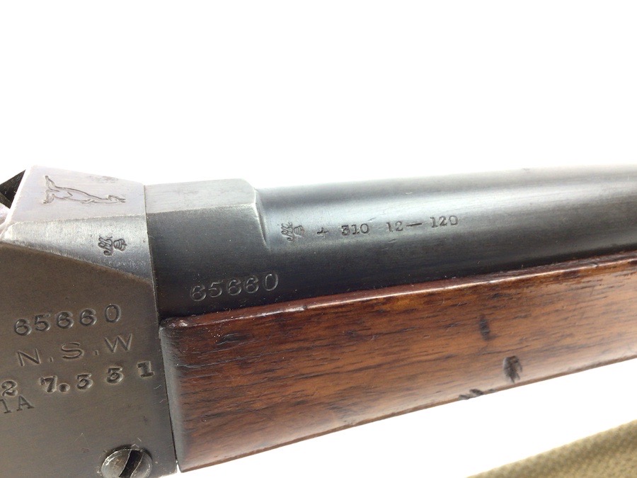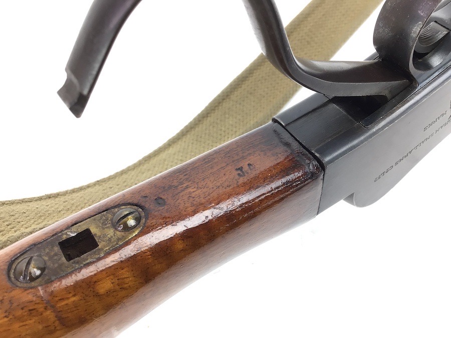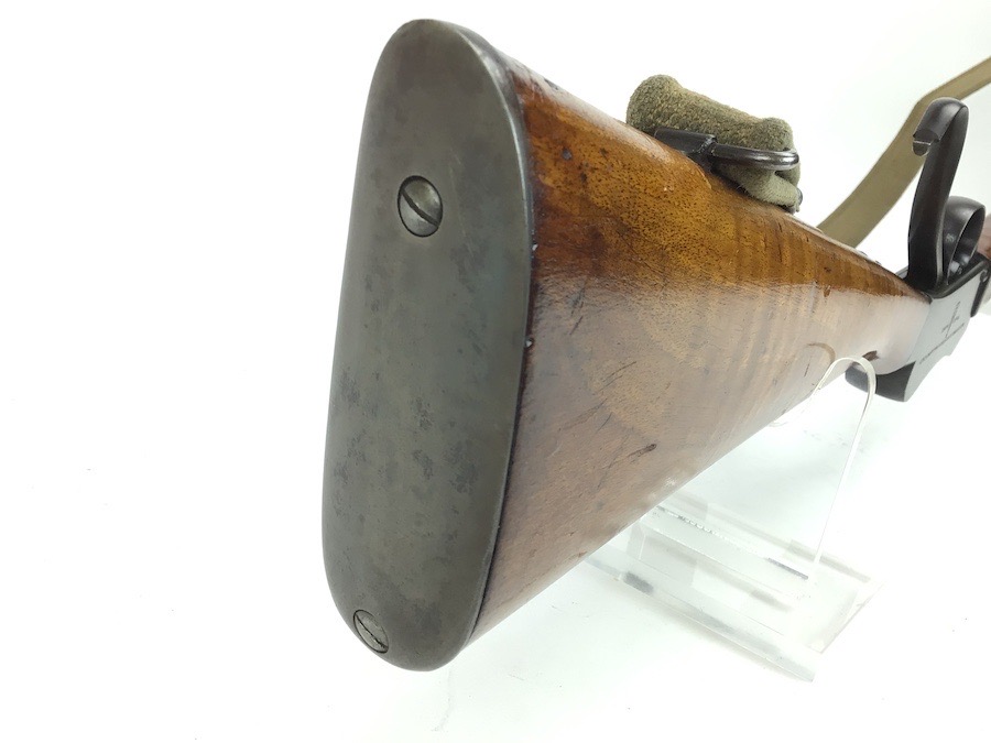 7/12/24 – BSA Martini Cadet chambered in .310 caliber. This is an Australian issue to the Commonwealth of Australia. Finish rates about 90-95% and presents very well. Bore has great rifling and rates a strong 8 of 10. Includes a rare sight protector and excellent canvas sling. No import marks. Features a Kangaroo logo on the top of the chamber. Stock is solid with minor handling marks. Appears to have a unit number stamped on the left side of the stock. Smooth action and completely functional.