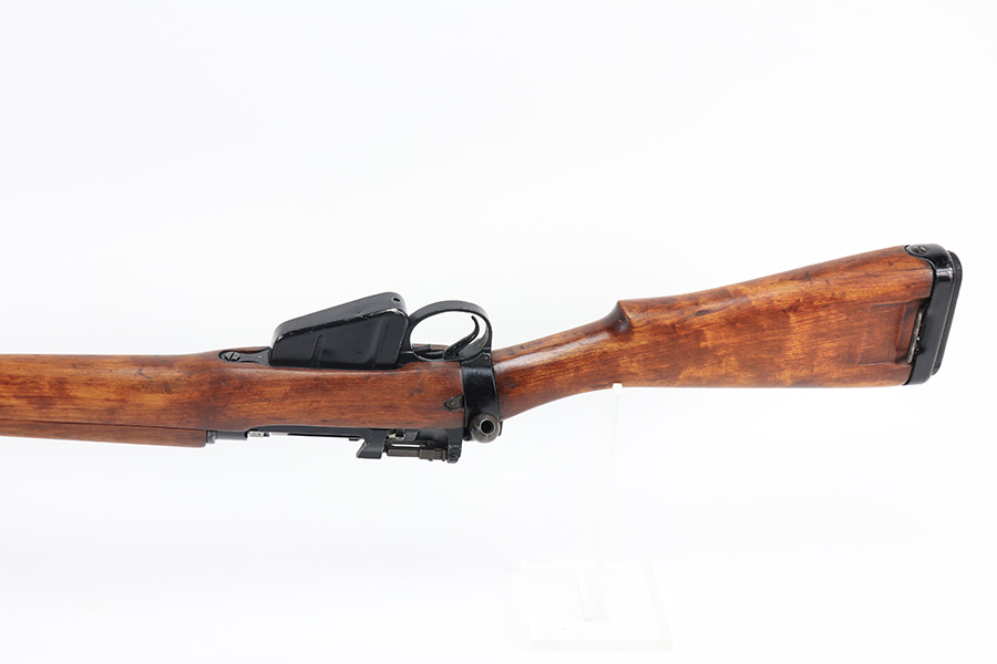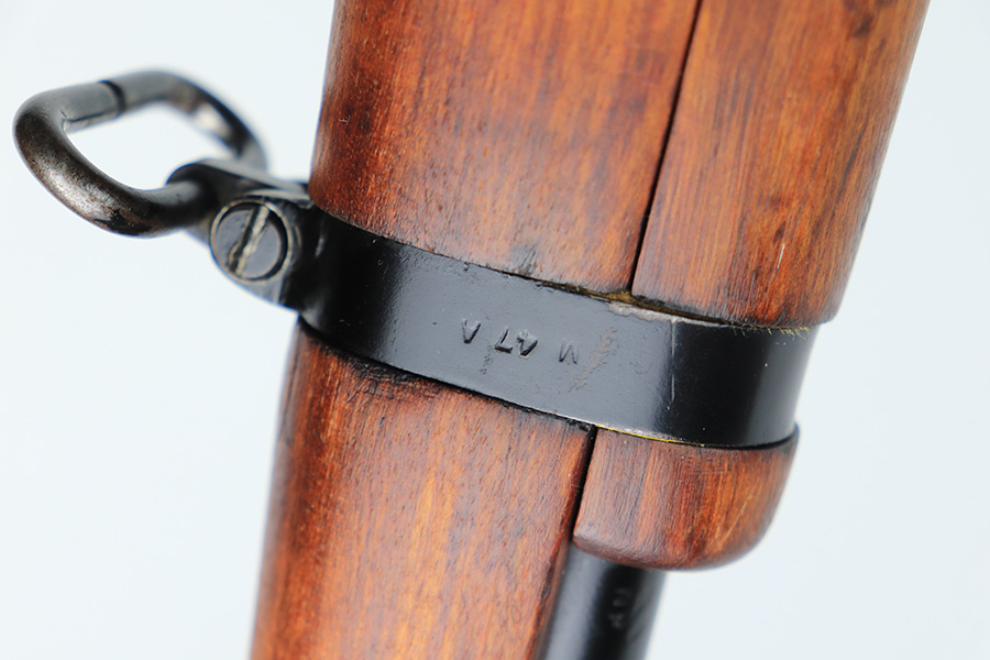 12/29/21 – This is a nice BSA Shirley Jungle Carbine from 1945. Matching numbers on bolt and receiver, and stock, front band and receiver are all marked M47. Some wear on the barrel/flash hider and front band. Bore is shiny with strong rifling but minor frost throughout. Export mark on barrel but no import mark on the rifle.