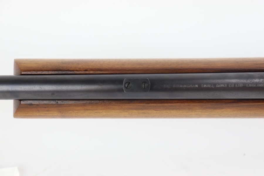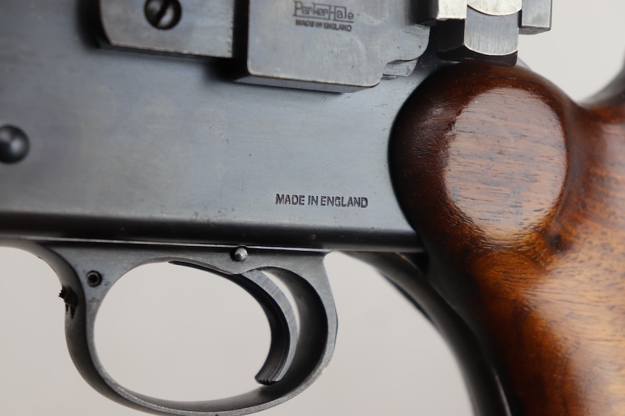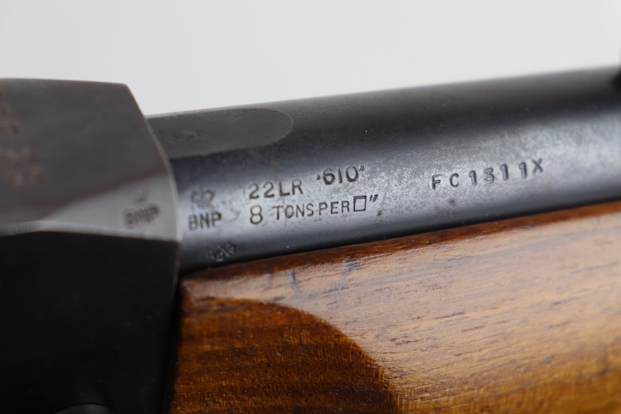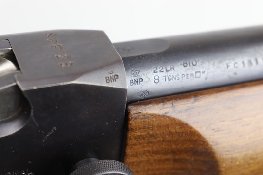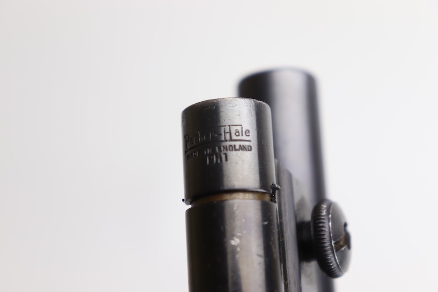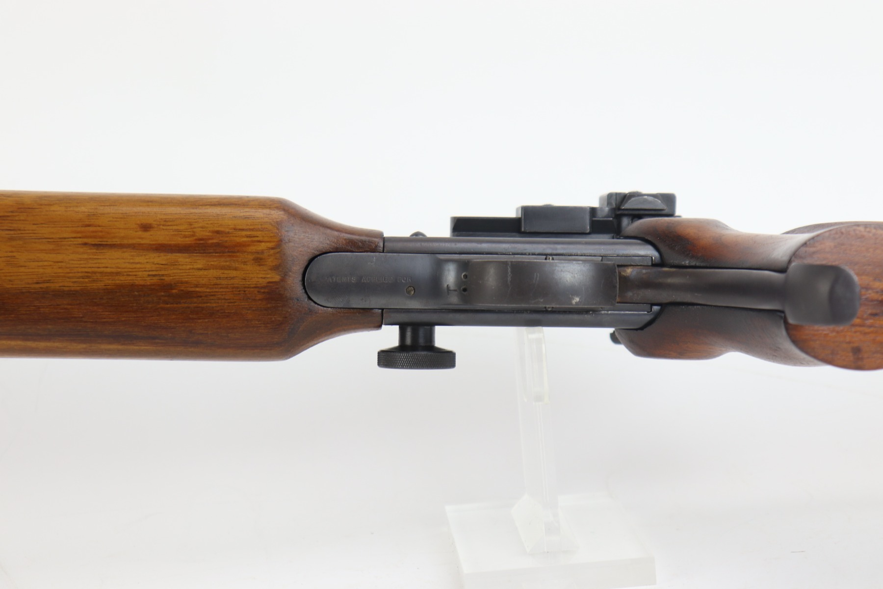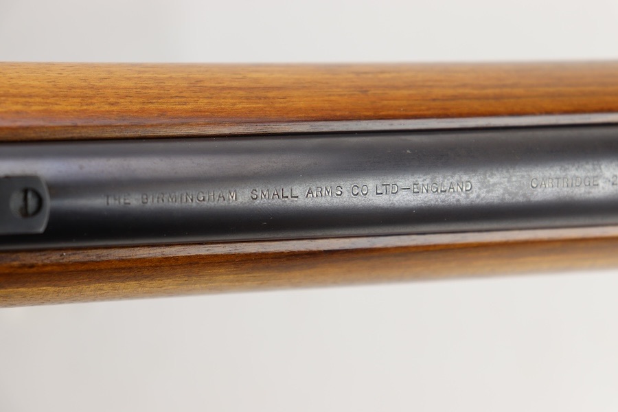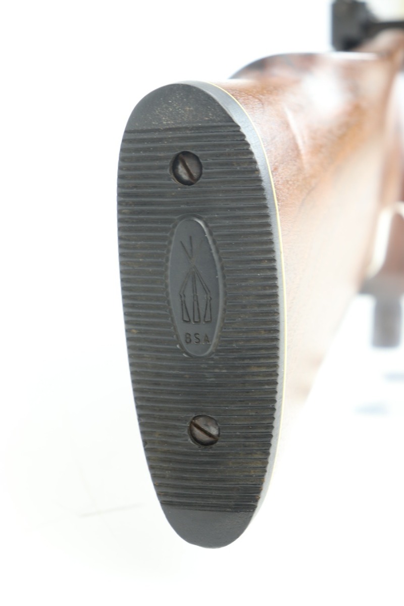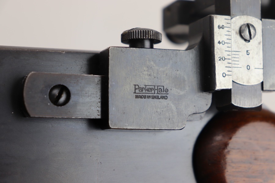 3/21/24 – Beautiful condition. Birmingham Small Arms, Martini International .22 caliber match rifle. Featuring a 25” medium-weight barrel with an excellent bore that rates a 9.5 out of 10. Target scope blocks. Olympic front target sight and international micrometer rear sight are both made by Parker Hale. Barrel and receiver bluing rate is about 90%, with only minor wear and light pin pricking on the barrel. Underlever Martini action works beautifully. The wood stock has minimal wear.