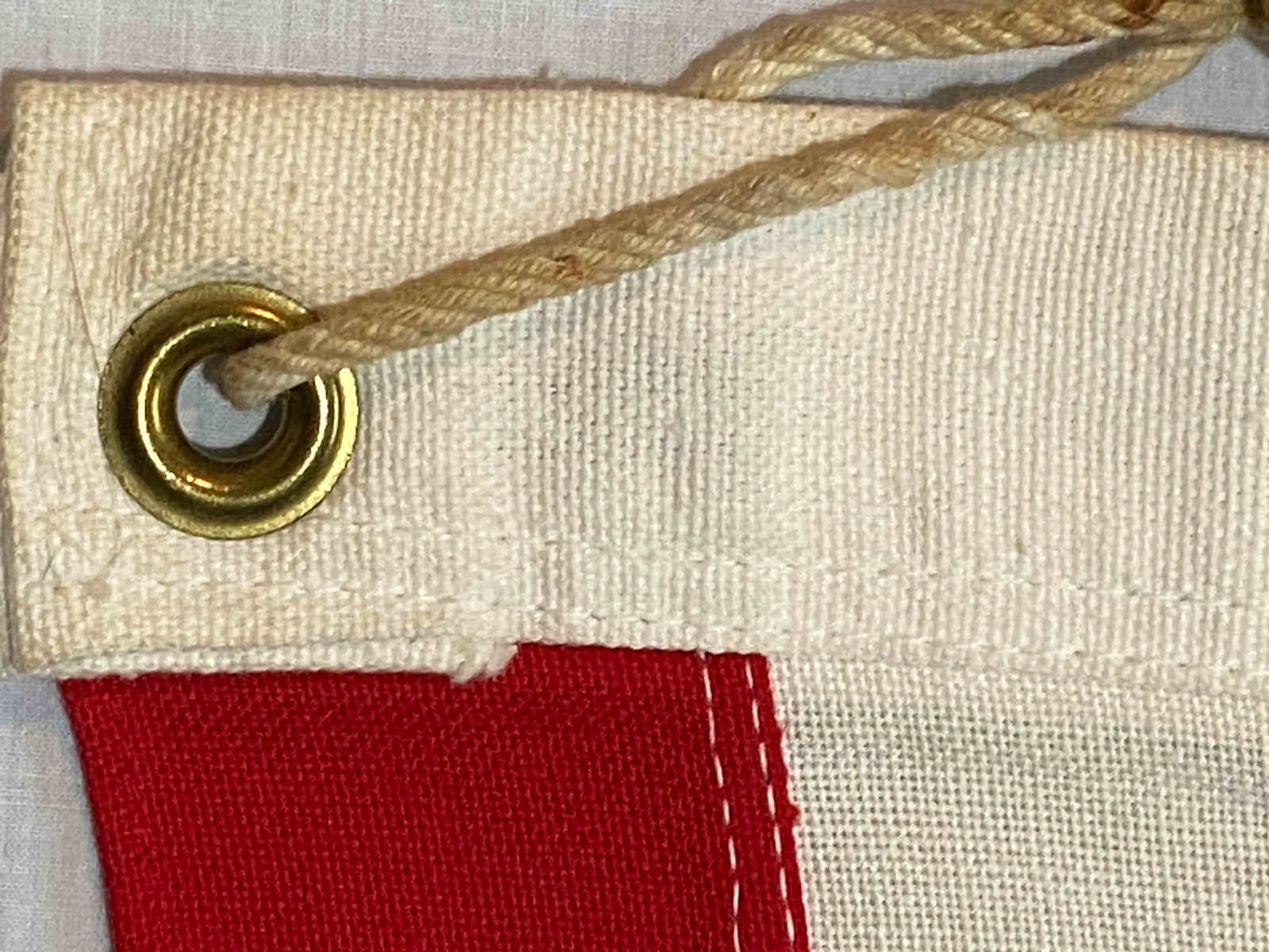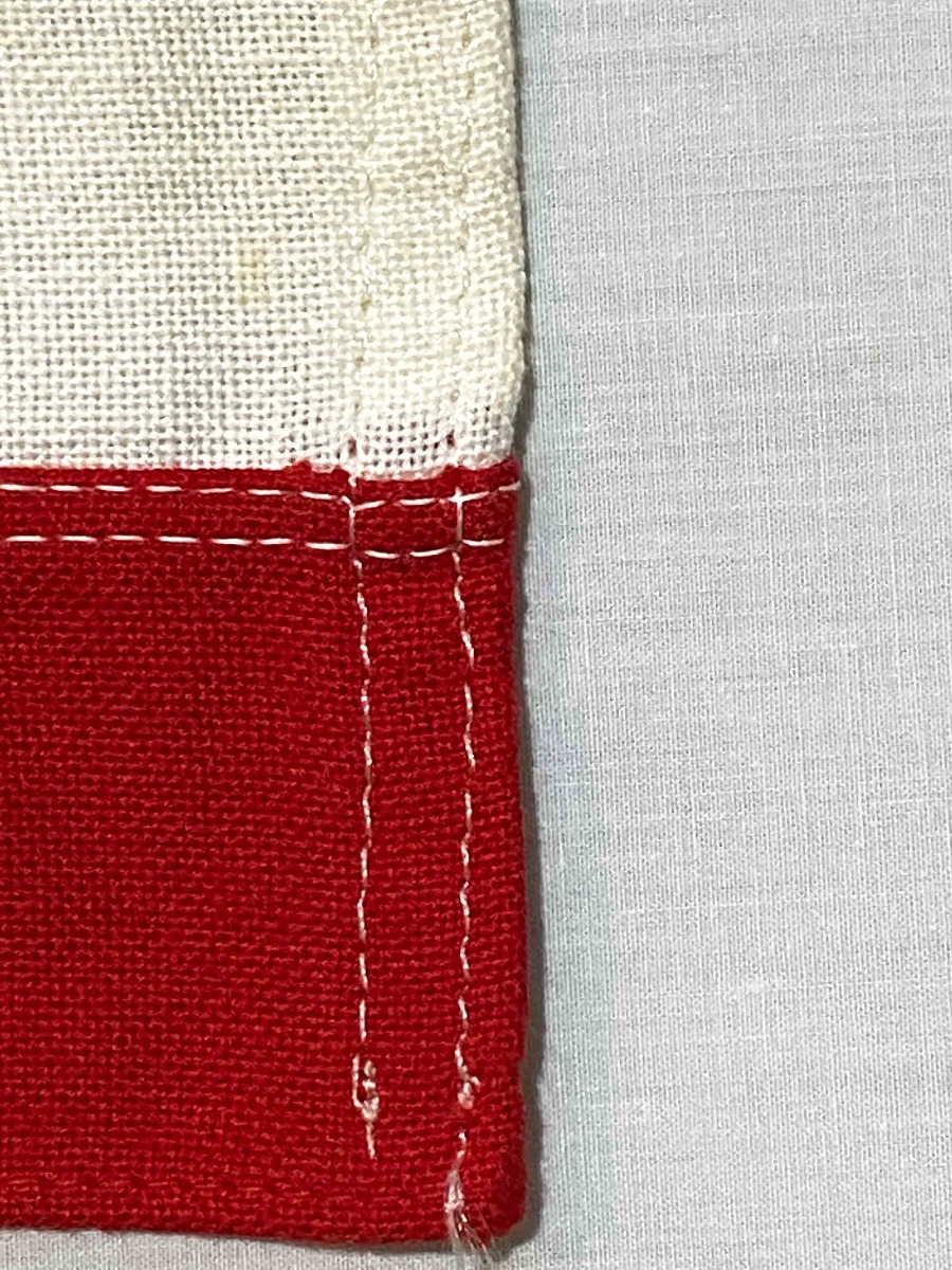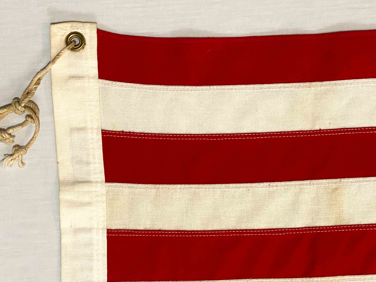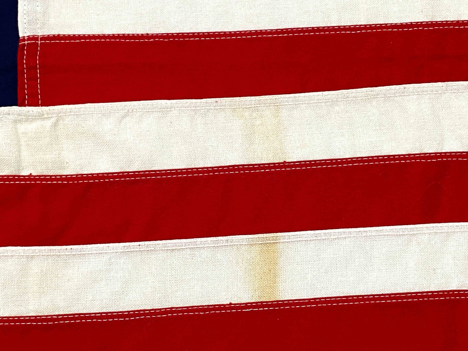5/6/20 – This is an original Korean War era U.S. 48 star flag. The flag is made by Bull Dog Bunting, as shown on the seam. The flag is 2×3 feet, a smaller, more desirable size. The flag has a few very minor stains but overall is in excellent condition. These were made between 1945 and 1950.