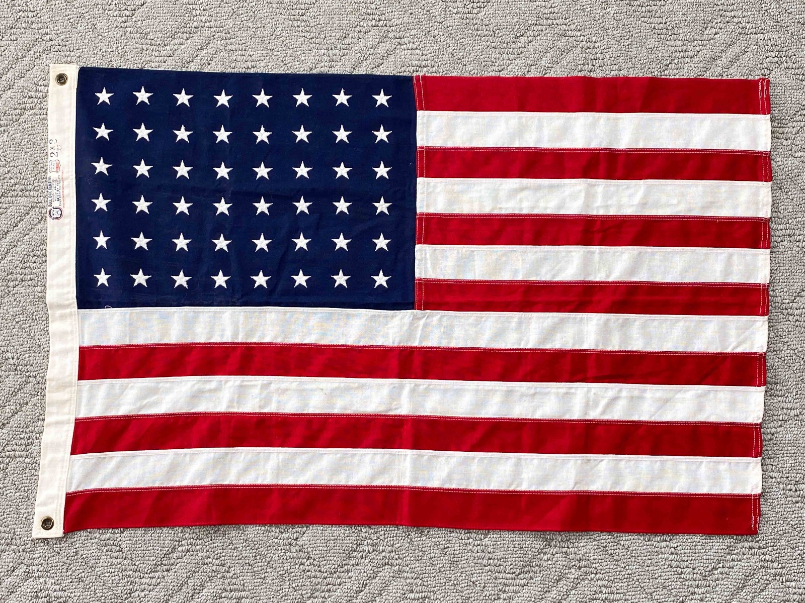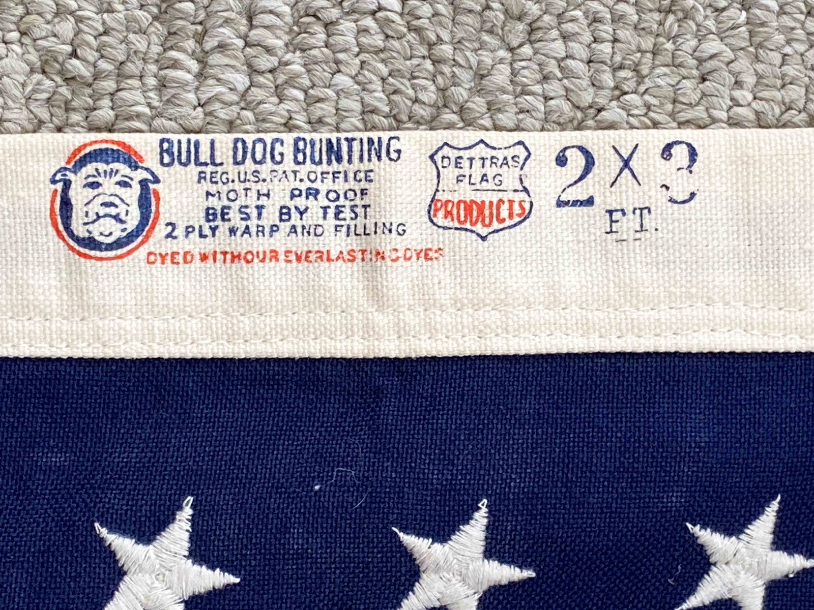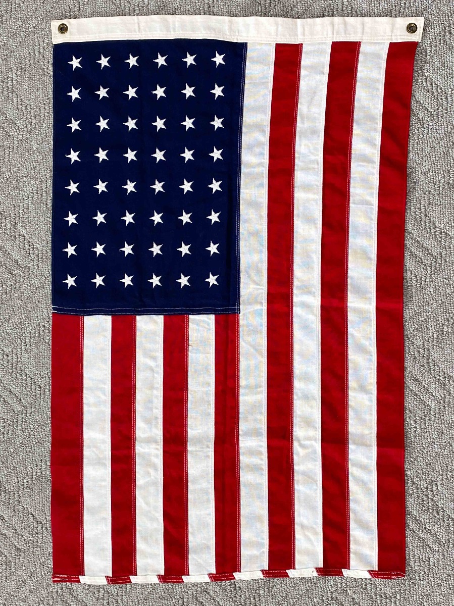7/12/21 – This is an original 48 star US military flag made by Bull Dog Bunting. The flag is in excellent condition and measures 2×3 ft.