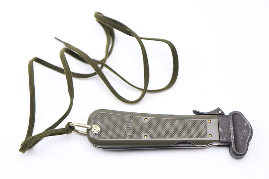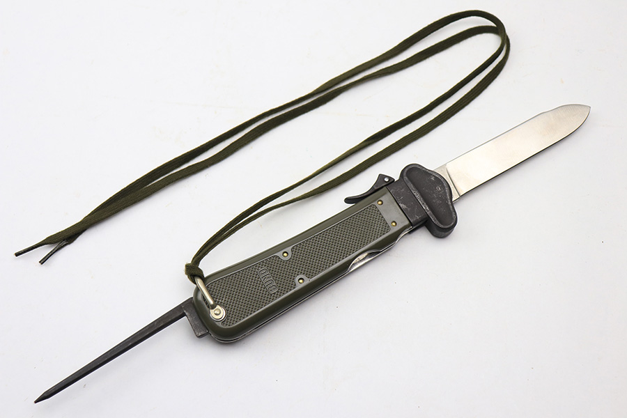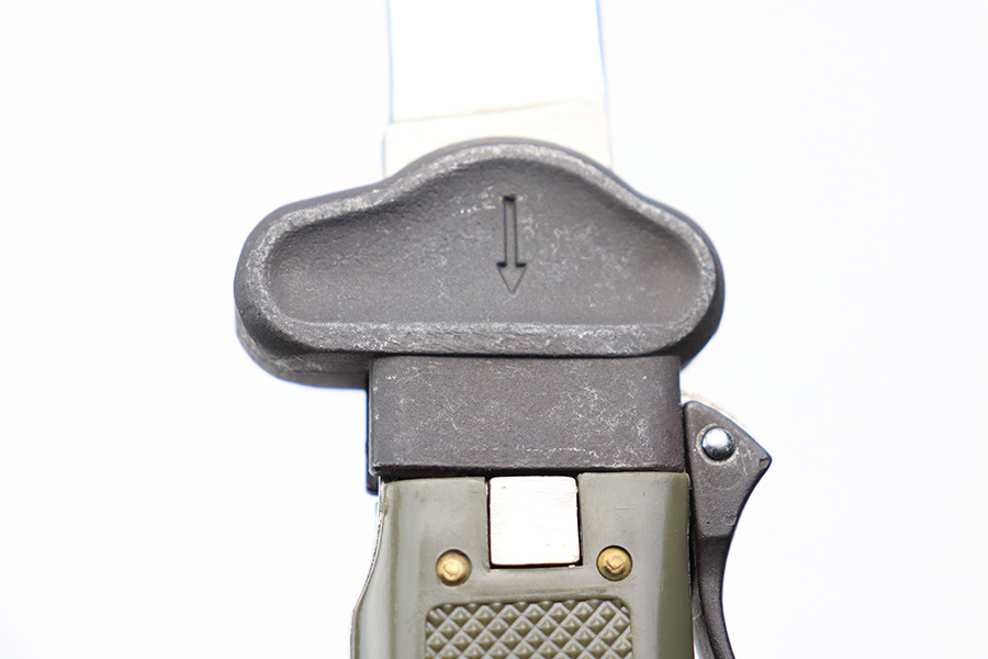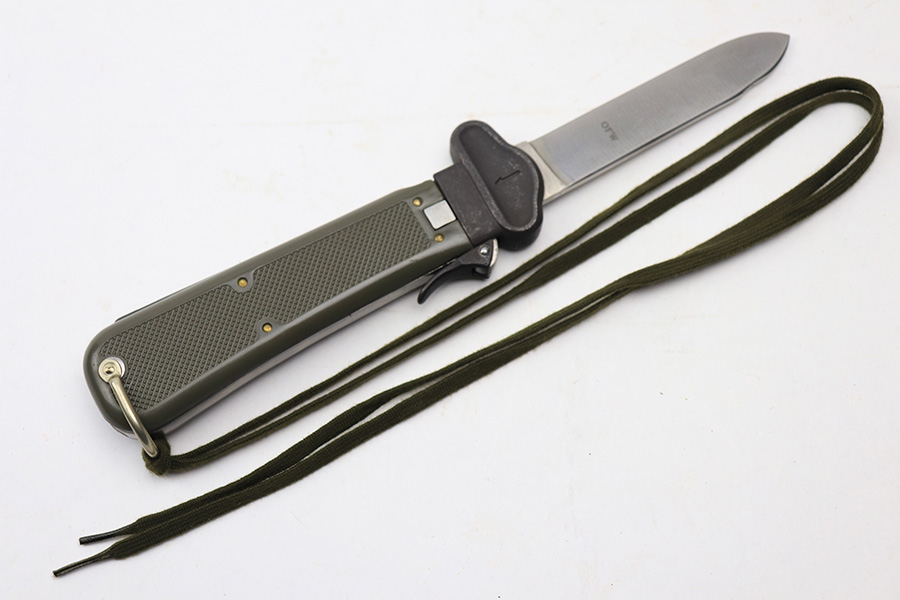 3/3/22 – This is a post-war, modern German production Gravity Knife. Excellent, minty condition with no notable issues. The blade is maker stamped “OFW” and the handle is marked “BUND”. Very similar to the WW2 era Luftwaffe gravity knives.