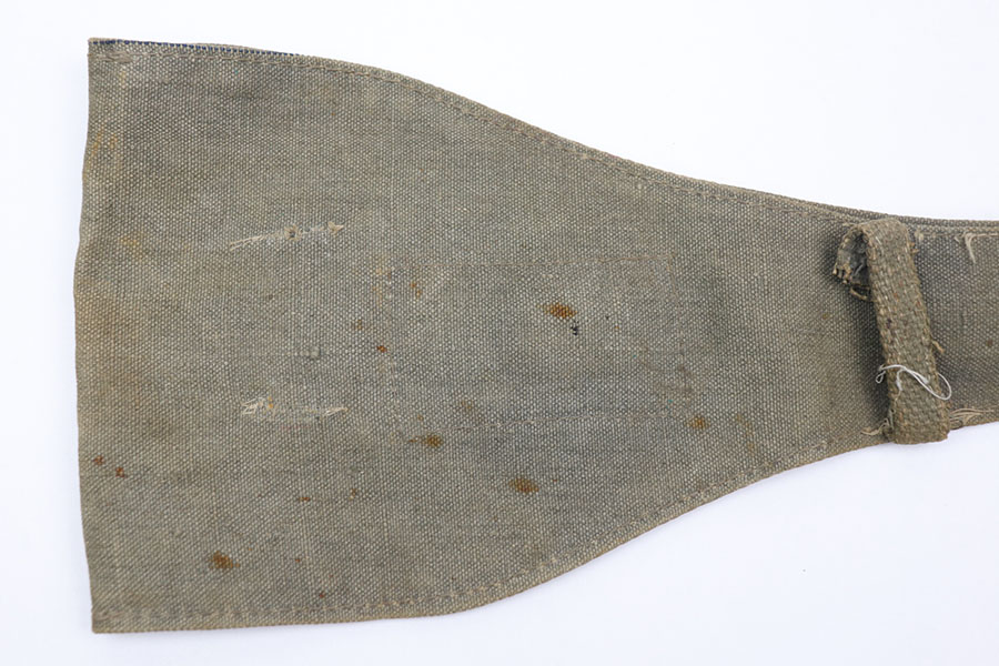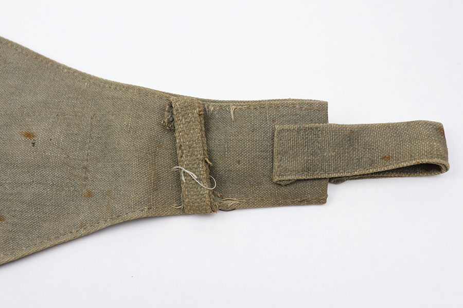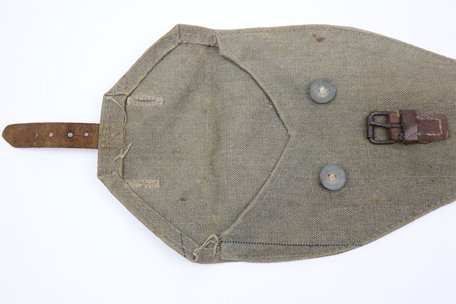10/30/20 – This is an extremely rare canvas carrying case for an artillery luger. Made during WW1 and very seldom seen, this mag pouch has no markings and is in great condition although showing some signs of aging. Light spots of discoloration as shown in photos and a few areas of loose stitching. Two lines of stitching in the back of the canvas indicate where this was once attached to a belt / uniform. These have been found in old WW1 photos being worn by soldiers holding artillery magazines.