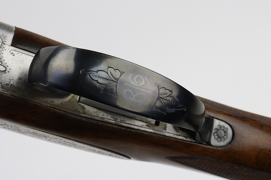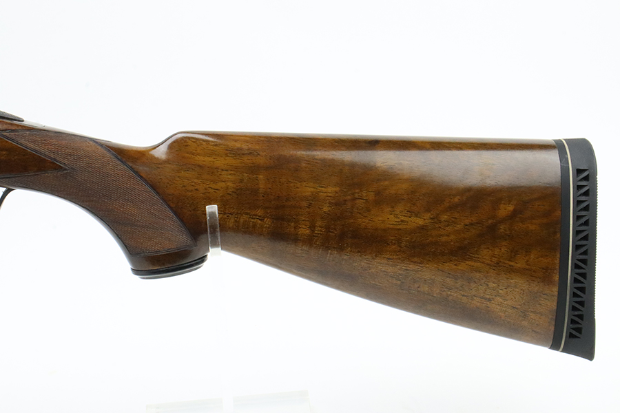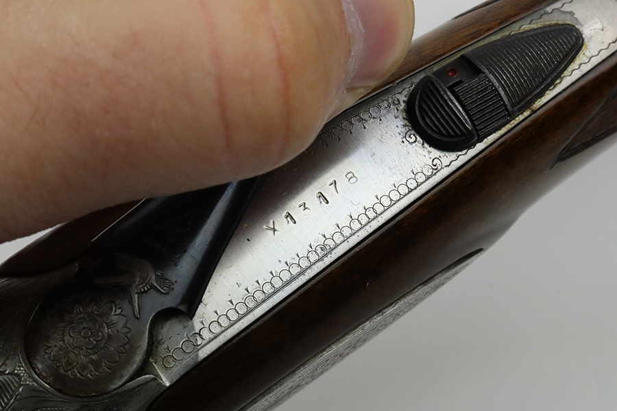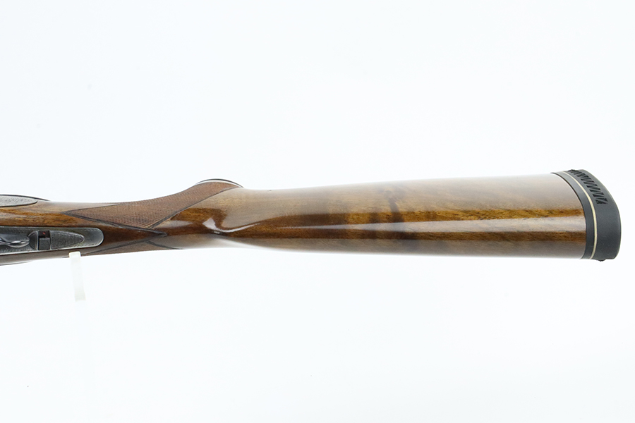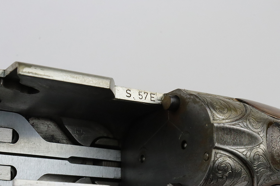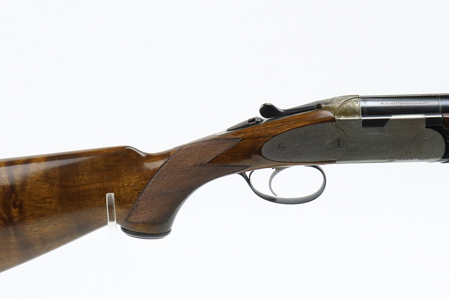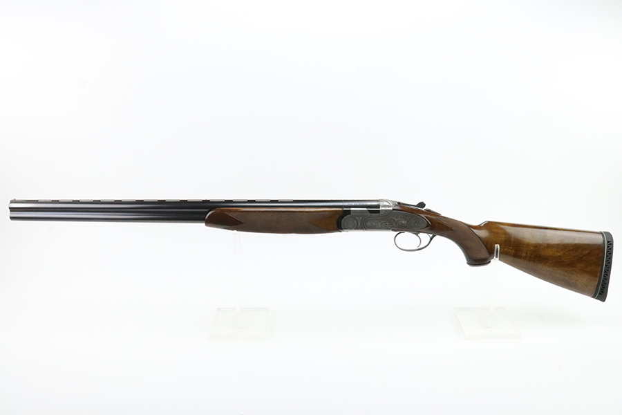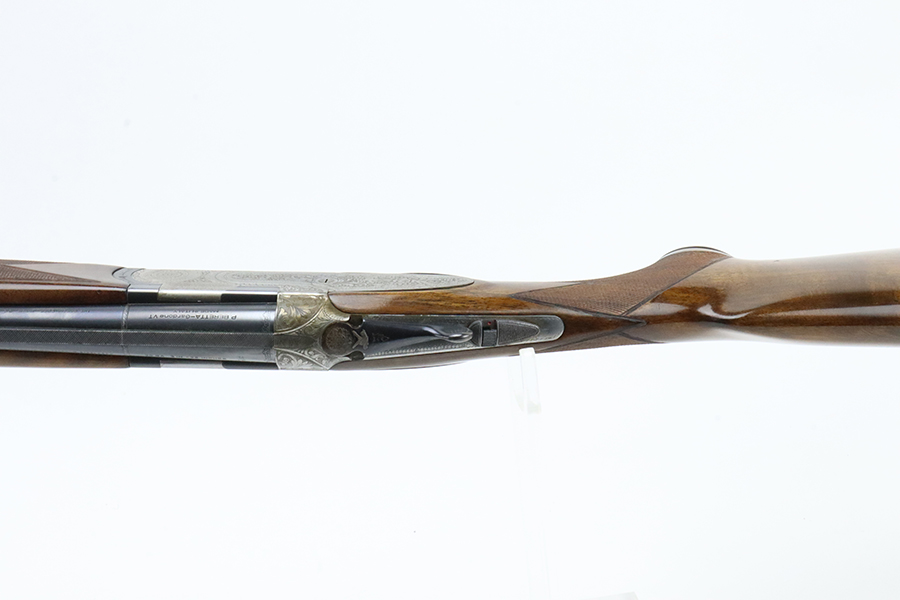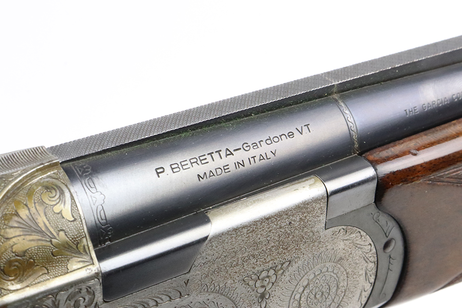 3/27/24 – This is a beautiful example of an engraved Beretta Model 57E over/under shotgun, chambered in 20 GA. It comes in a really nice green velvet-lined leather case. The receiver on this gun features a beautiful and detailed filigree engraving pattern. Blued barrels. There are virtually no signs of wear, just some minor discoloration on the receiver. Minty wood furniture. Mint bores. 26 3/8 inch barrels.