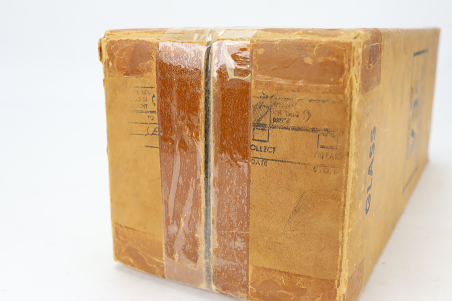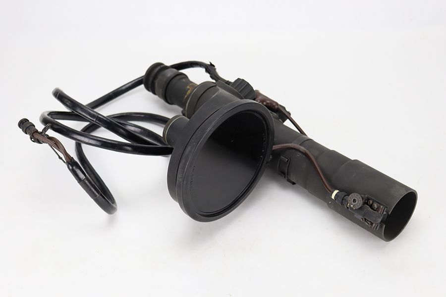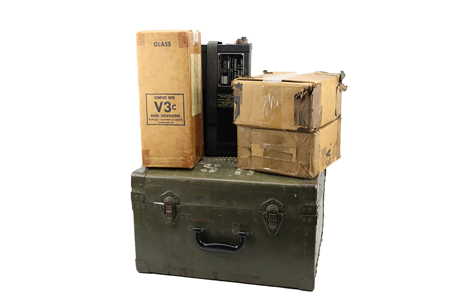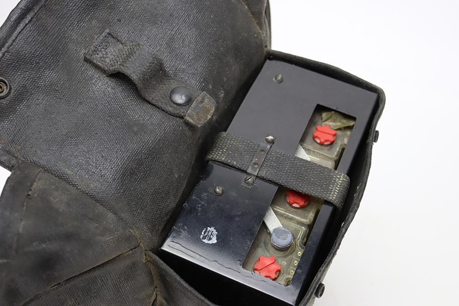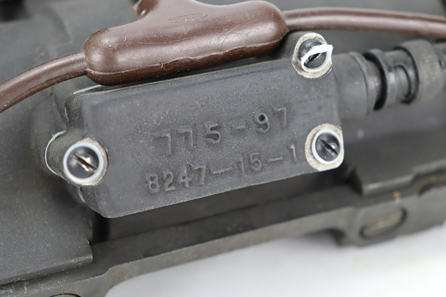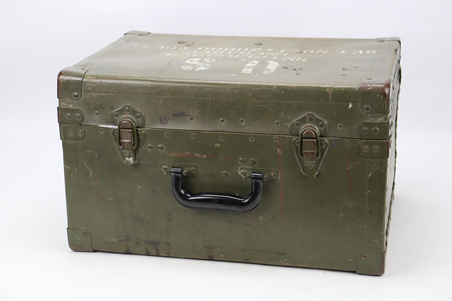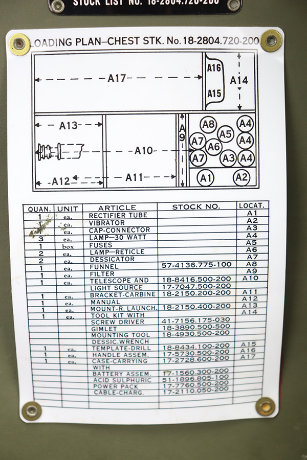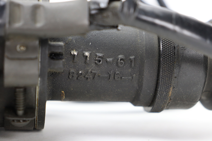 2/8/24 – Developed during WW2, the M3 was named a “sniper scope” in official nomenclature to obscure its true function as an early infra-red night scope, capable of spotting targets at over 100 yards and detecting other IR-sources up to a mile away. Mounted on an M1 semi-automatic carbine, the scope could be used by night sentries to detect incoming sneak attacks, and direct outbound machine gun and rifle fire with tracer rounds. The scope measures 16 inches long with a Army Corps of Engineers/American Optical Company markings on a sticker on the right side of the base. In a green painted hardwood case with white stenciled “U.S./SNIPERSCOPE/INFRARED/SET NO.1, 20000 VOLTS” on top of the lid, another Army Corps of Engineers/American Optical tag on the inside. The case contains the original pieces, including the power pack and its rubberized canvas pouch, the attaching wires, handle, etc. This listing also includes an additional power pack attached to a battery assembly, another battery assembly, 1-battery cage, 2-reticle rheostats, 2-potentiometers, a replacement electron tube and an original manual.