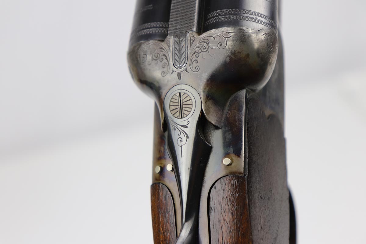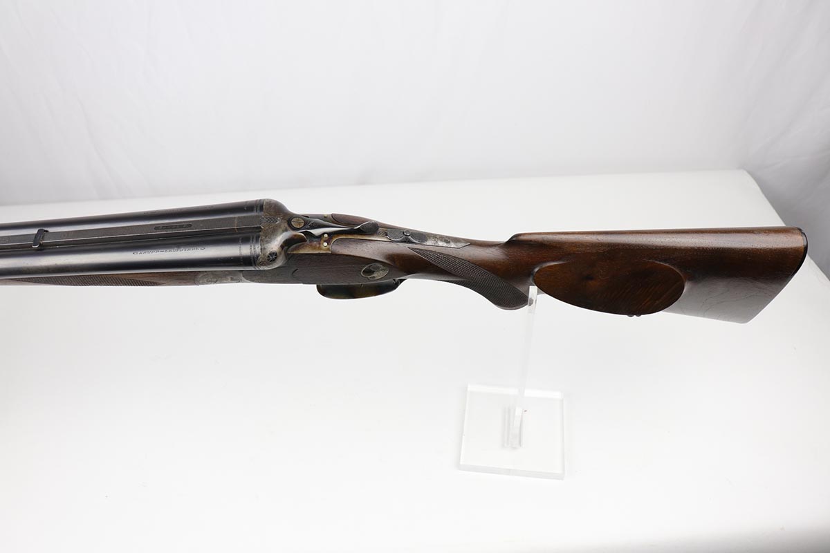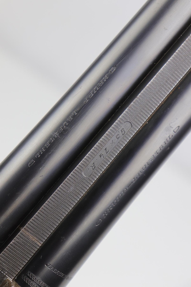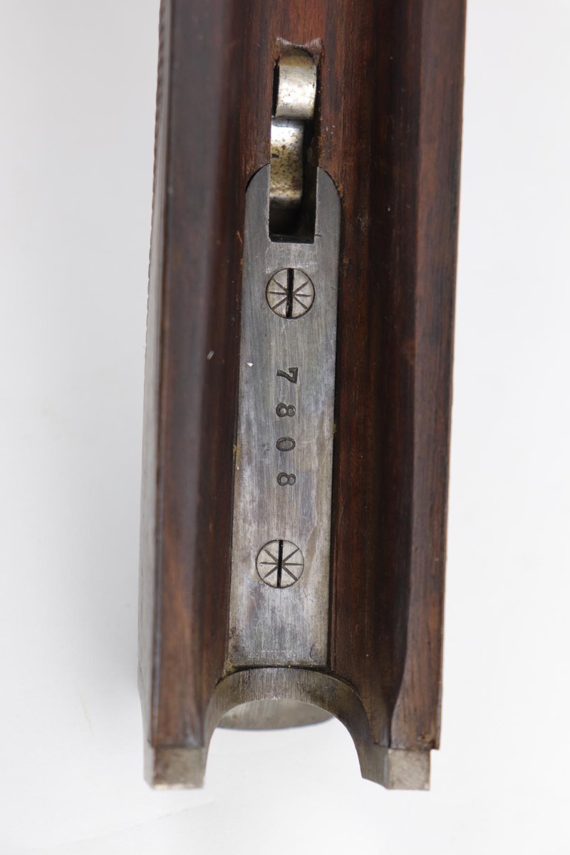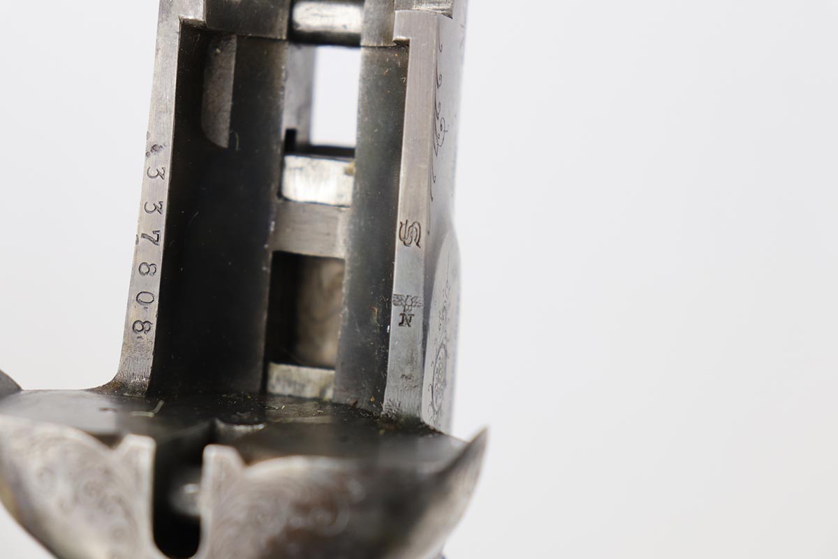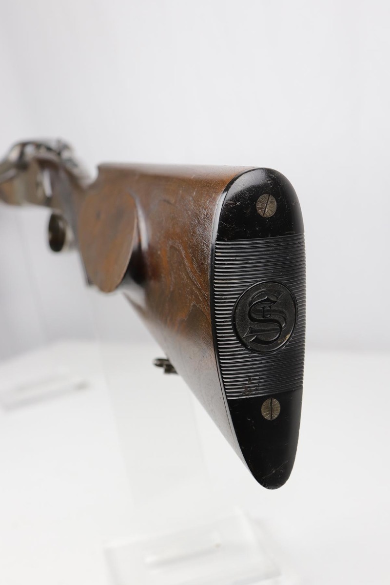 The Sauer M30 drilling (in German, meaning triple-barrel combination rifle/shotgun) was originally developed by famous German gun making company J.P.Sauer & Sohn as all-around hunting weapon. Introduced in 1930, it was commercially available in several caliber combinations, sporting two side by side shotgun barrels (in 16 or 12 gauge) over one rifled barrel. In 1941, when Hitler’s Germany began military operations in Northern Africa, Luftwaffe (German Air Force) adopted Sauer M30 drillings as wilderness survival weapon for air crews, operating over vast North African deserts. It is 12g as well as 9.3x74R rifle ammunition. It must be noted that Luftwaffe bought Sauer M30 drillings outside of standard military procurement procedures, and all Luftwaffe drillings were made to pre-war commercial standards of fit and finish, and thus were rather expensive. Overall, Luftwaffe bought about 2,500 Sauer M30 rifle / shotgun. Eagle/N proofs can be found in a few spots. All matching, and functions well mechanically. This gun was also partially featured in our Youtube video on the drilling shotguns, and can be found as the last photo in this listing.