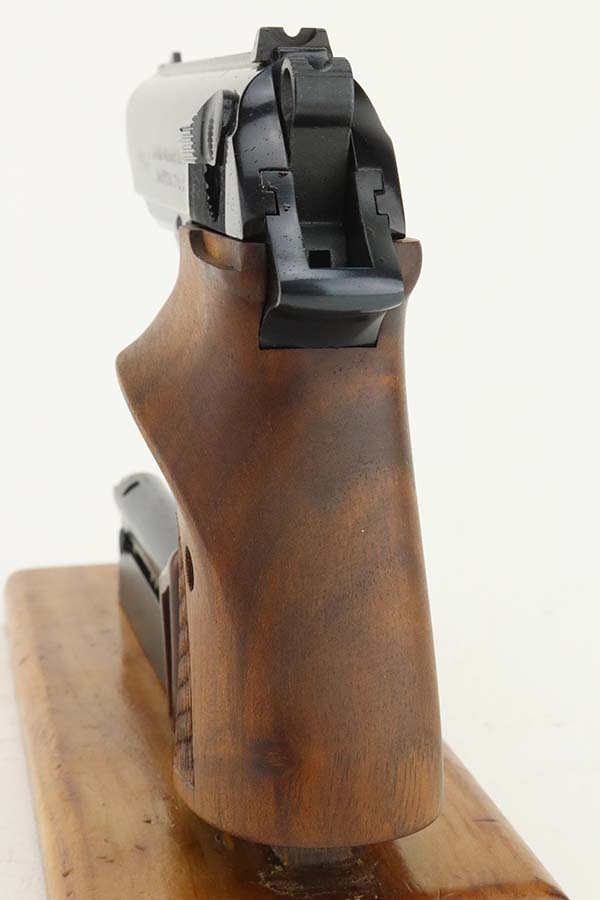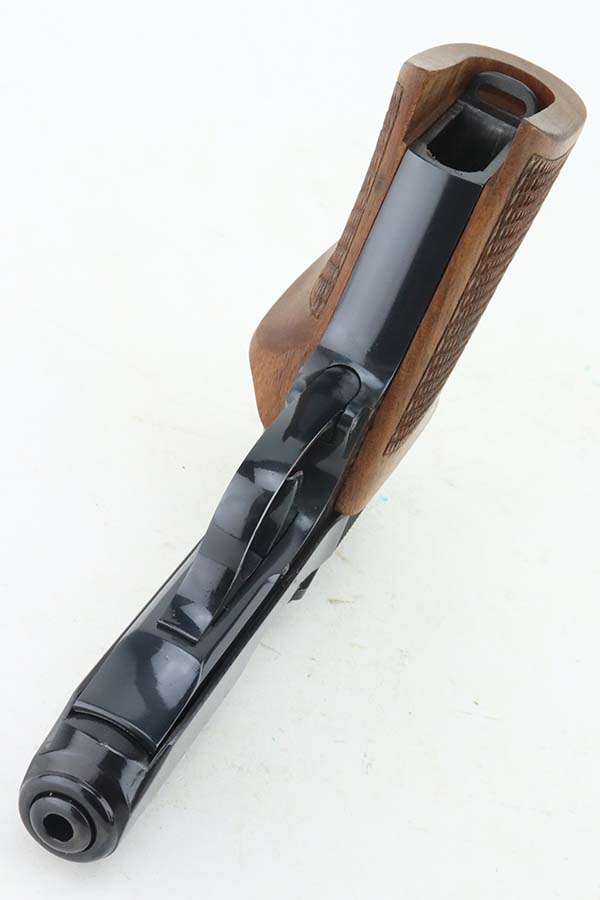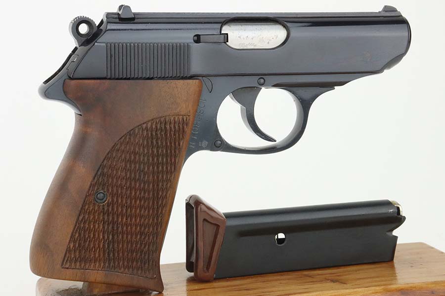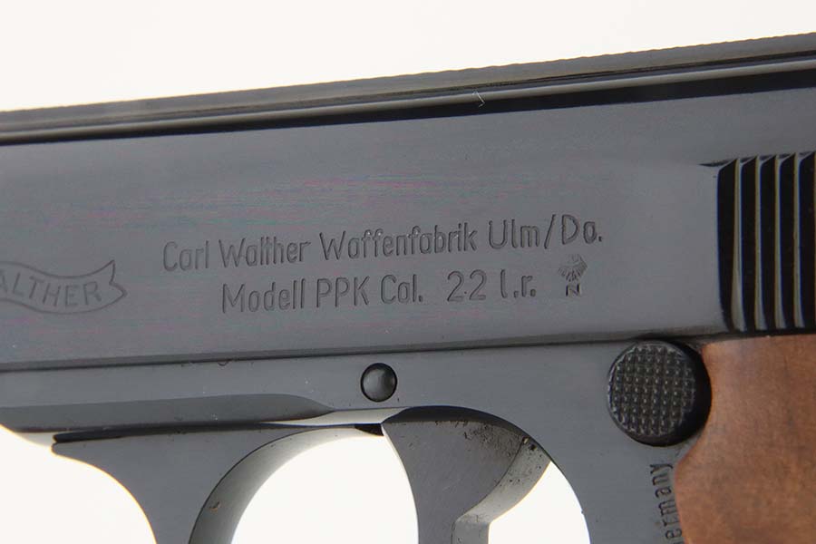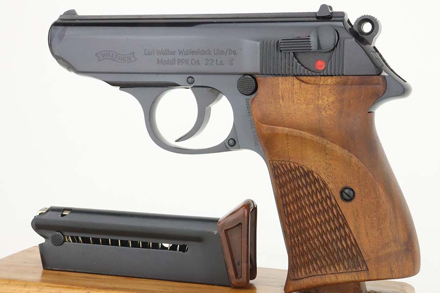3/22/24 – This is a like-new example of a Walther PPK manufactured in 1966 and chambered in .22 LR. All matching with no import marks. “Made in West-Germany” export marking on the left side of the frame. The gun is mint with no signs of finish loss or wear. Mint bore. Fitted with mint target-style wood grips and comes with one finger extension magazine. It also comes with a nice green presentation case.