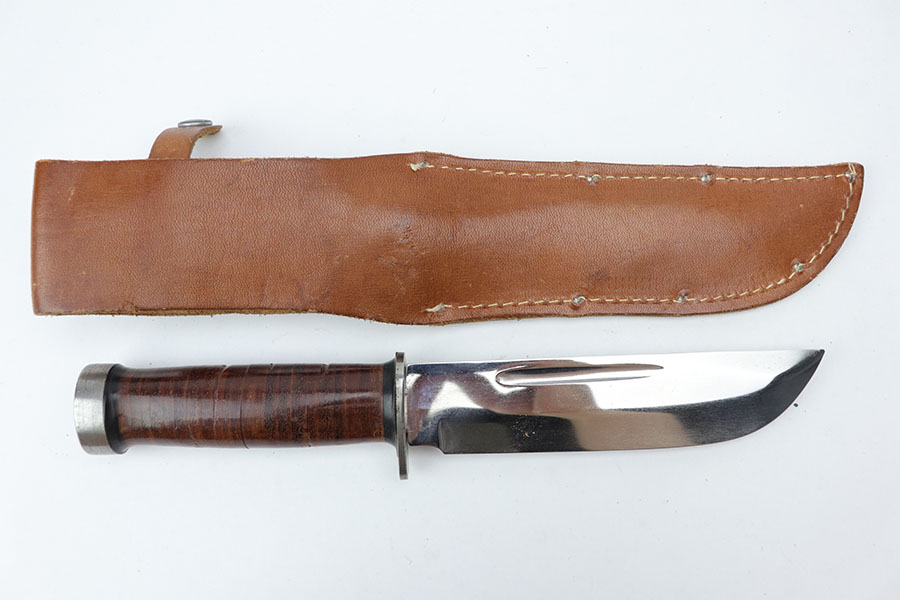 8/20/20 – This is a minty condition Cattaraugus 225Q Quartermaster knife in minty condition. Blade shows minimal to no wear. and has a reflective finish. Minty handle and leather sheath as well. Maker and model stamped on the blade.