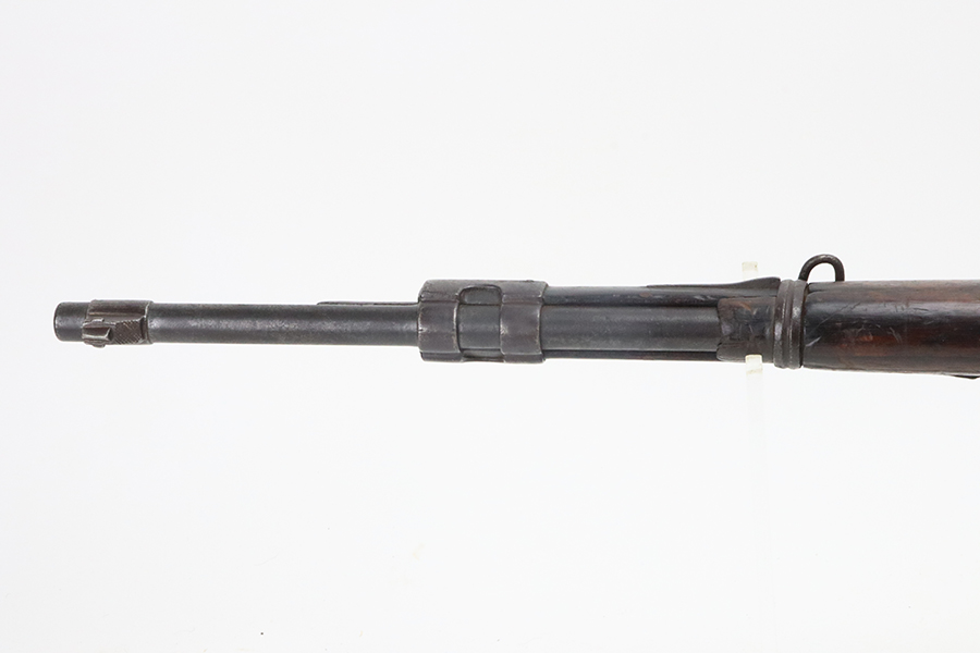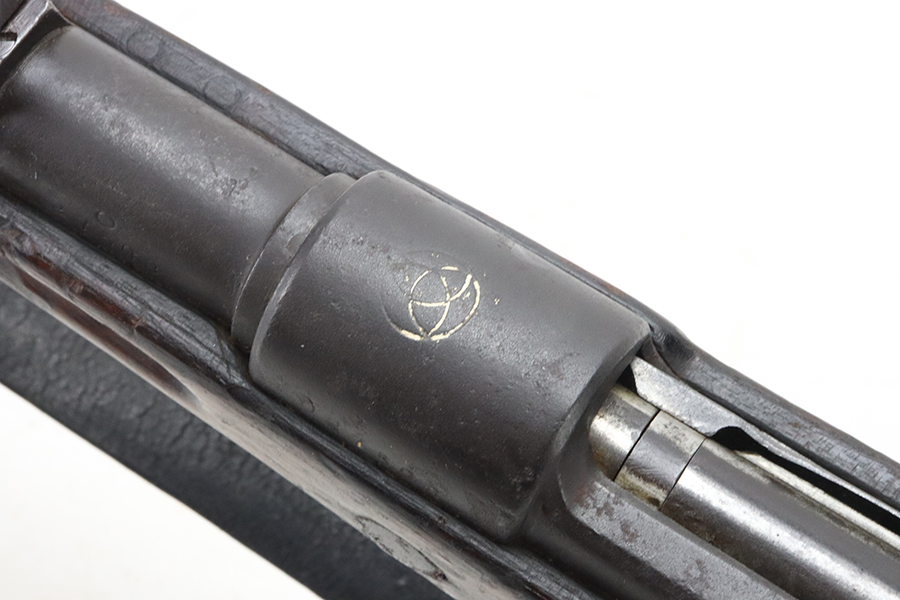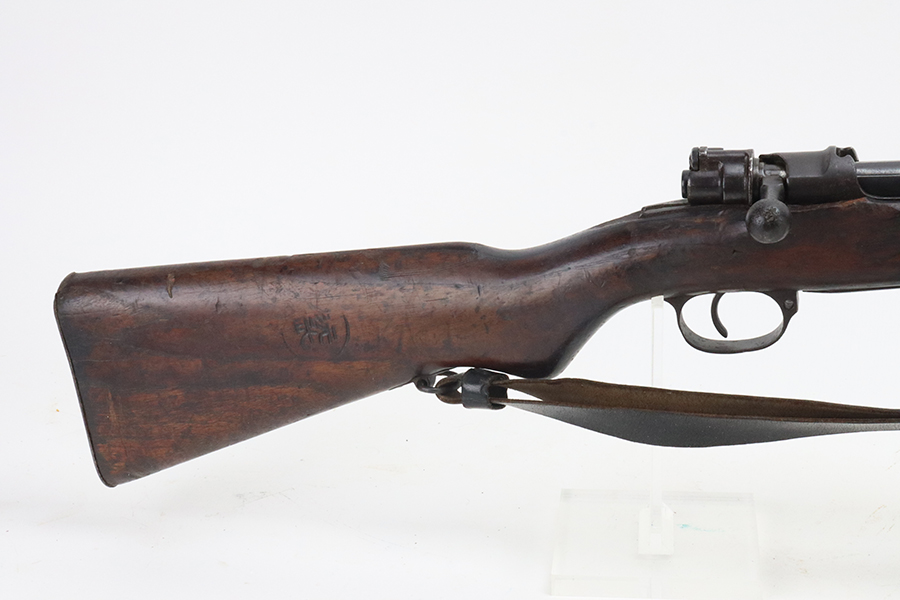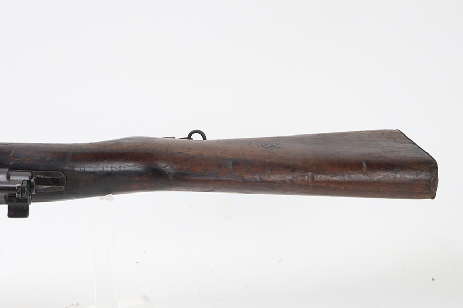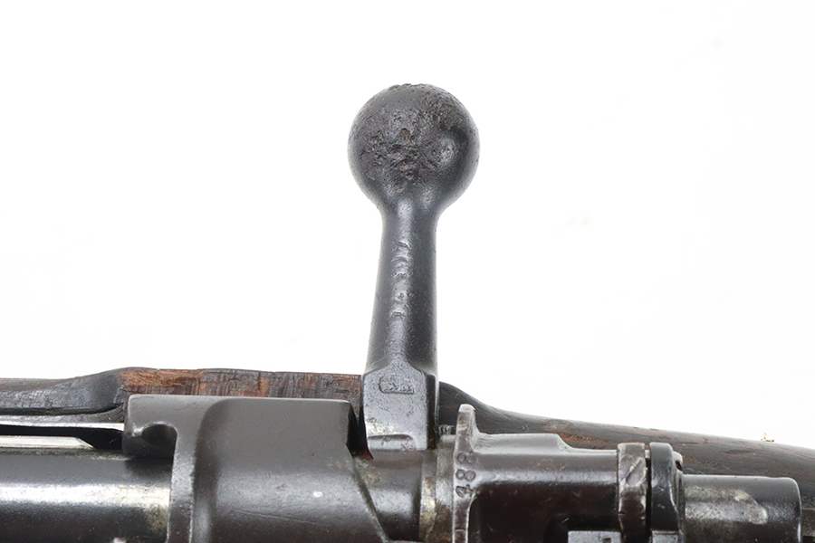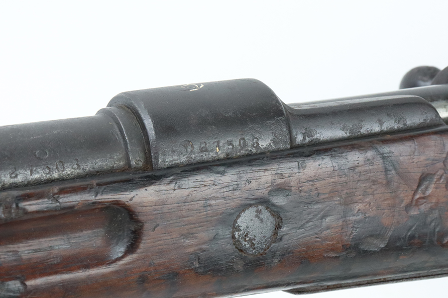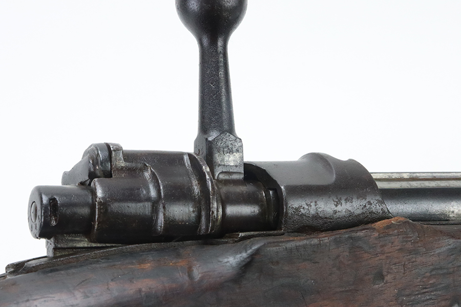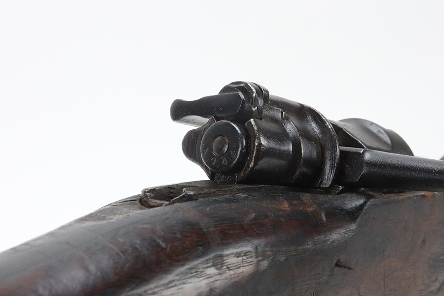5/20/24 – This is a Chinese-made Mauser 98, used during the Chinese Civil Wars between WWI and WW2. Chinese arsenal marking on the chamber and a Chinese seal on the right side of the butt stock. Most of the gun is matching, but the bolt is mismatched. The metal parts are covered in obvious oxidation and minor pitting. The stock is pretty beat-up – signs of obvious wear and use throughout. There are a couple of hairline cracks in the butt stock – nothing structural. The condition of the bore is poor – very worn rifling with heavy pitting throughout.