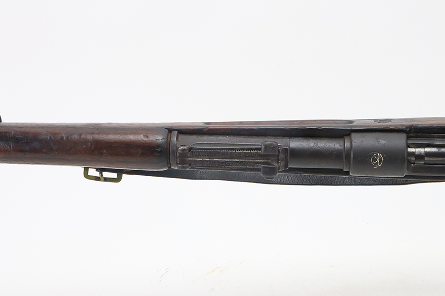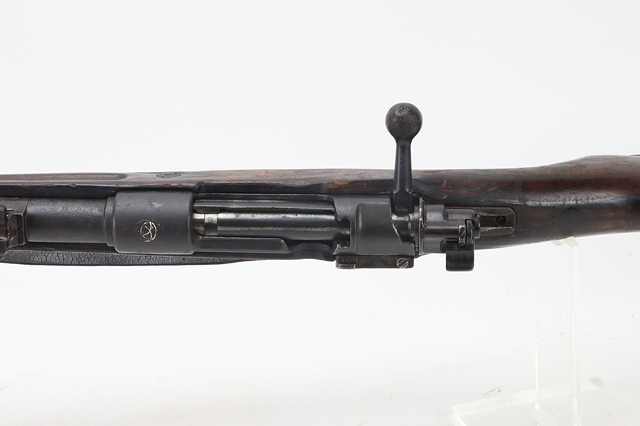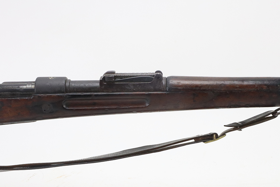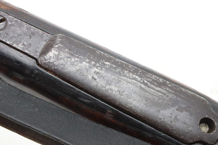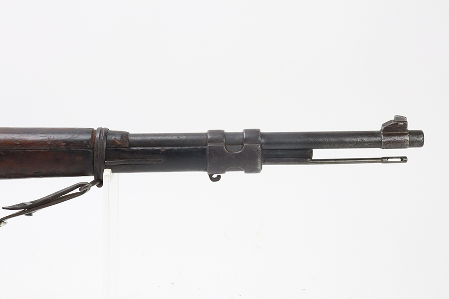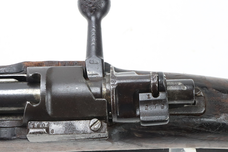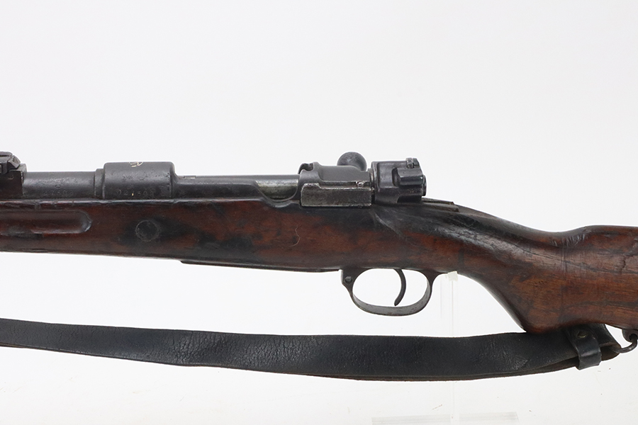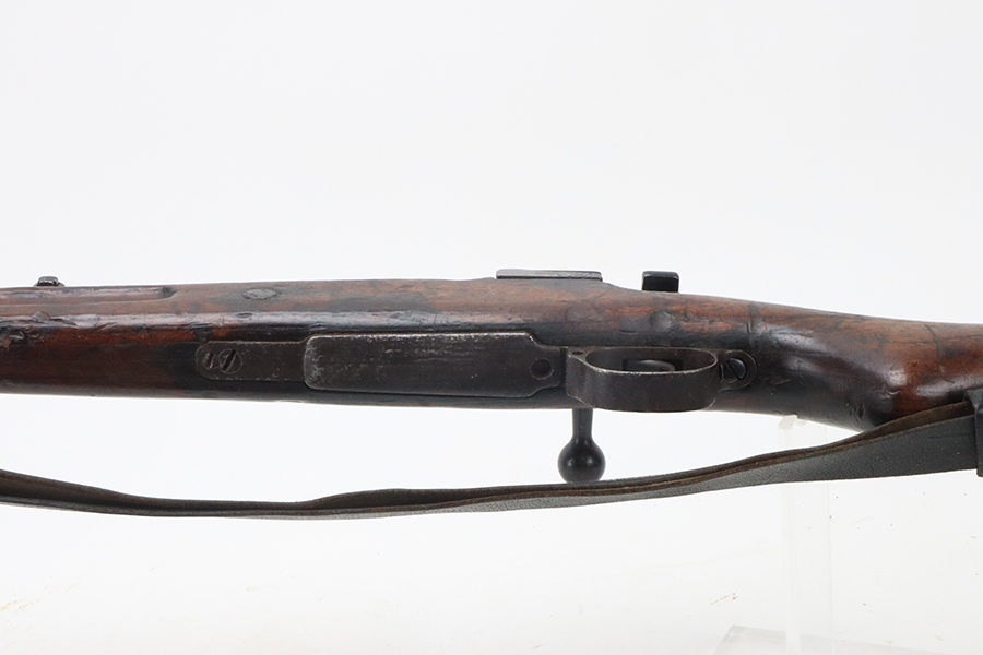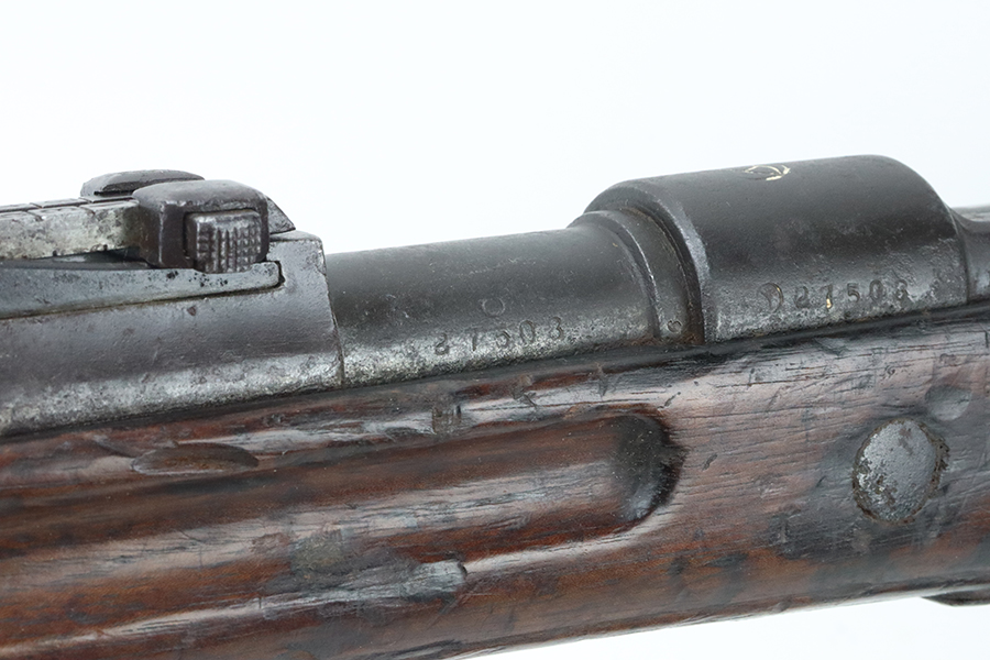 5/20/24 – This is a Chinese-made Mauser 98, used during the Chinese Civil Wars between WWI and WW2. Chinese arsenal marking on the chamber and a Chinese seal on the right side of the butt stock. Most of the gun is matching, but the bolt is mismatched. The metal parts are covered in obvious oxidation and minor pitting. The stock is pretty beat-up – signs of obvious wear and use throughout. There are a couple of hairline cracks in the butt stock – nothing structural. The condition of the bore is poor – very worn rifling with heavy pitting throughout.