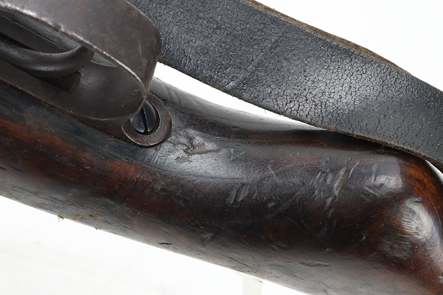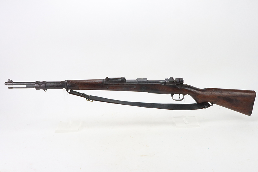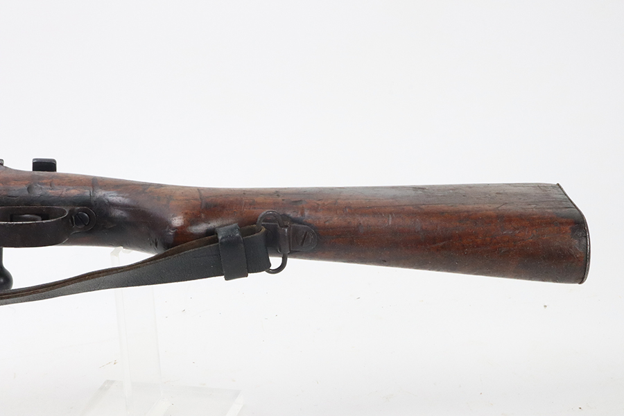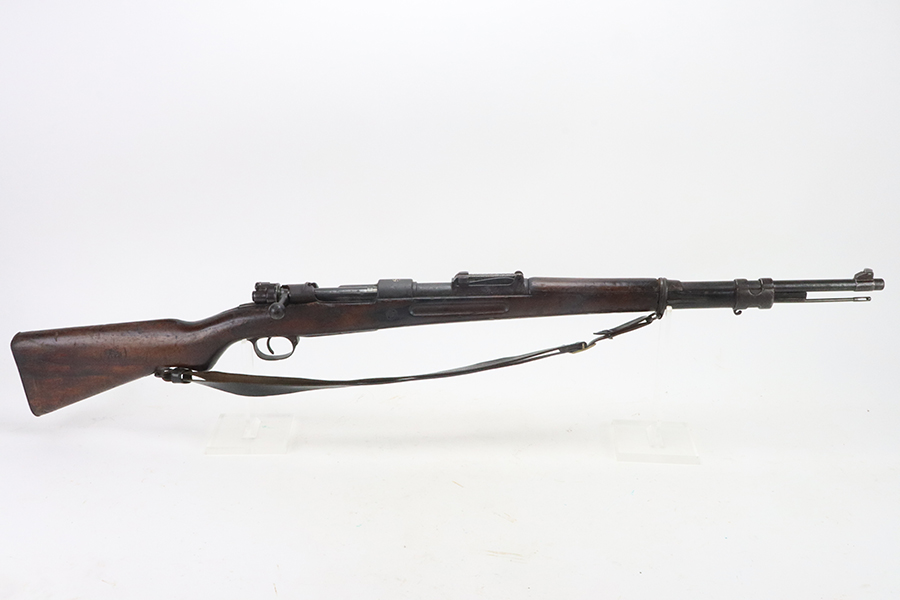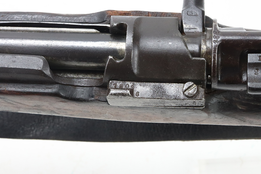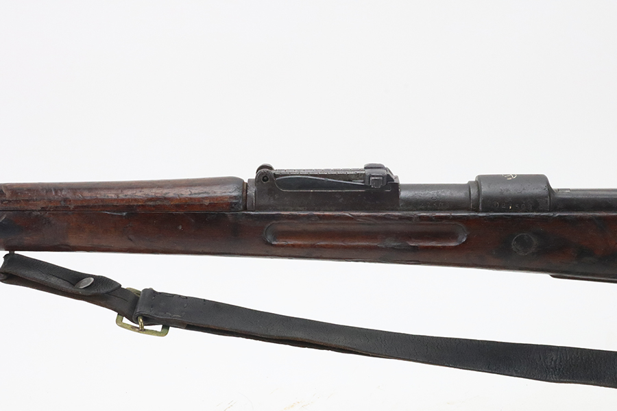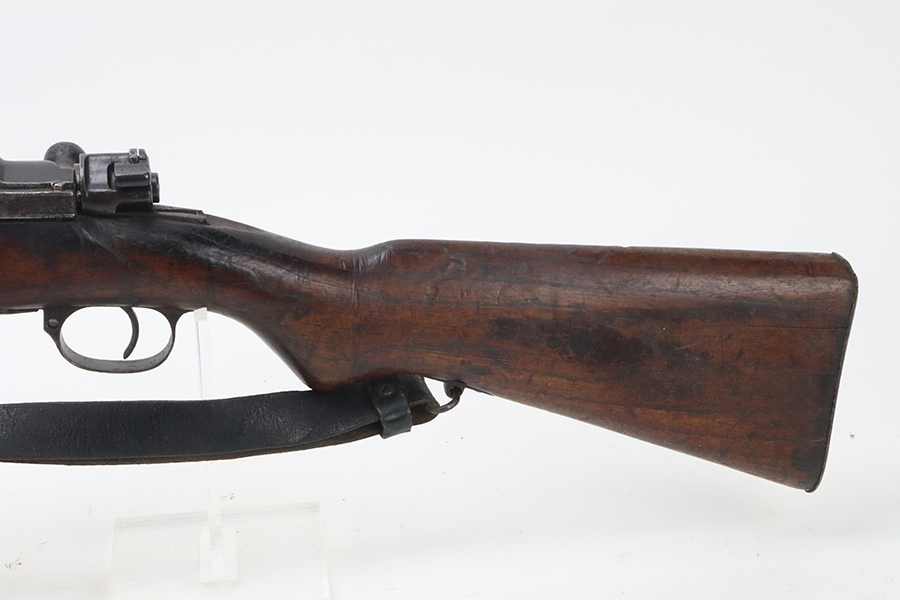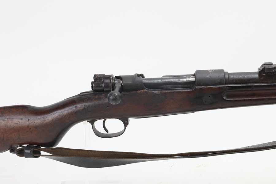 5/20/24 – This is a Chinese-made Mauser 98, used during the Chinese Civil Wars between WWI and WW2. Chinese arsenal marking on the chamber and a Chinese seal on the right side of the butt stock. Most of the gun is matching, but the bolt is mismatched. The metal parts are covered in obvious oxidation and minor pitting. The stock is pretty beat-up – signs of obvious wear and use throughout. There are a couple of hairline cracks in the butt stock – nothing structural. The condition of the bore is poor – very worn rifling with heavy pitting throughout.