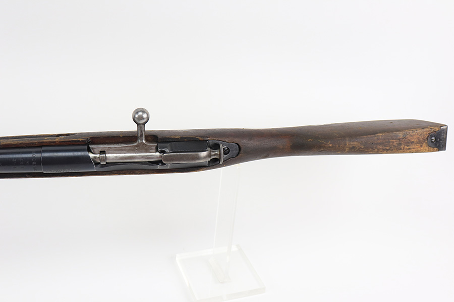 4/7/22 – This is a Chinese Mosin-Nagant Type 53 made in Factory 26 in 1955. The gun is all matching, but the bolt is mismatched. Comes with the original folding bayonet. Import mark on the receiver. There isn’t much actual finish loss, but there is minor wear around the muzzle and some light scratches on the magazine. Thinning and some tiny dots of oxidation on the butt plate. There is heavy scratching and bruising on the stock. The bore has strong rifling, but there are some areas of spotty oxidation here and there.