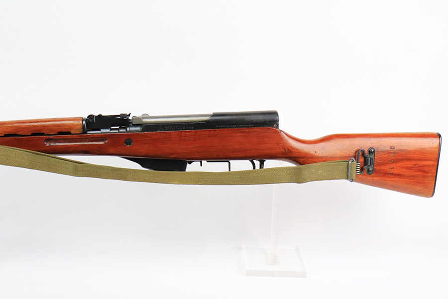 7/21/22 – This is an excellent example of a Chinese Norinco SKS, manufactured at factory 26 between 1962 and 1970. The gun is all matching. The original bluing is in good condition and there is an import mark on the left side of the receiver. The rifle shows only light handling wear, other than a small patch of surface rust on the magazine. The rifle comes with the original fold-out bayonet and a canvas sling. The stock is numbered and matching and shows minor handling wear throughout, with a few shallow divots in various places. Overall, the gun is in great condition. The bore is near mint.