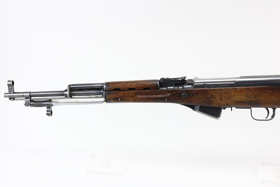 9/1/21 – This is a very nice example of a Chinese SKS rifle manufactured in 1967. It was made in factory 26. It is all matching, including the stock. There is an import mark on the receiver. The bayonet is intact. There is thinning on the metal parts throughout. Some light scratches and a couple of areas of oxidation on the receiver. The stock has minor bruises and dings throughout. The bore is mint.