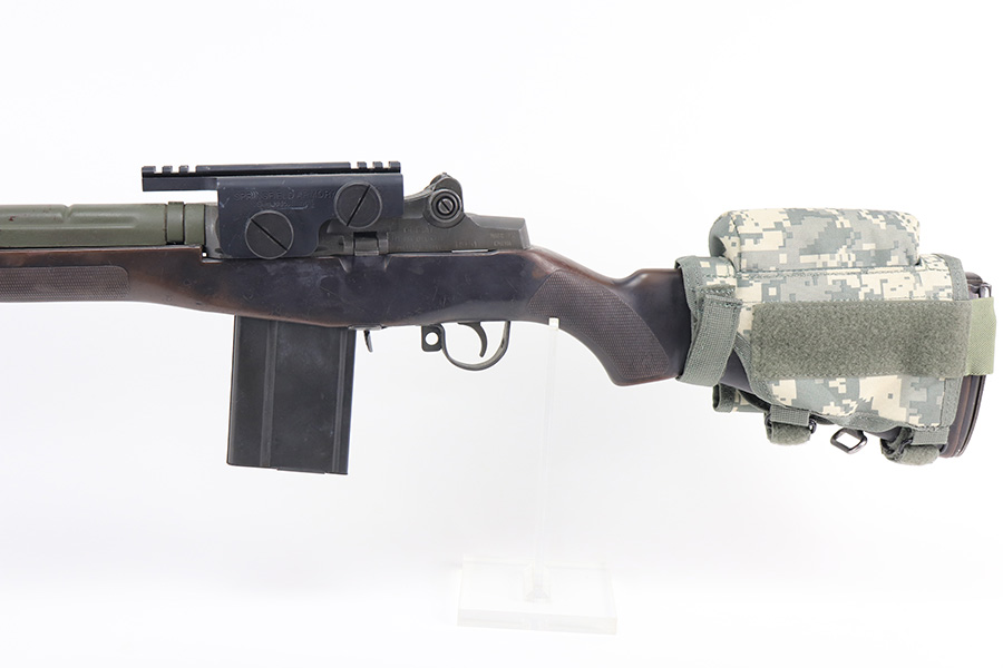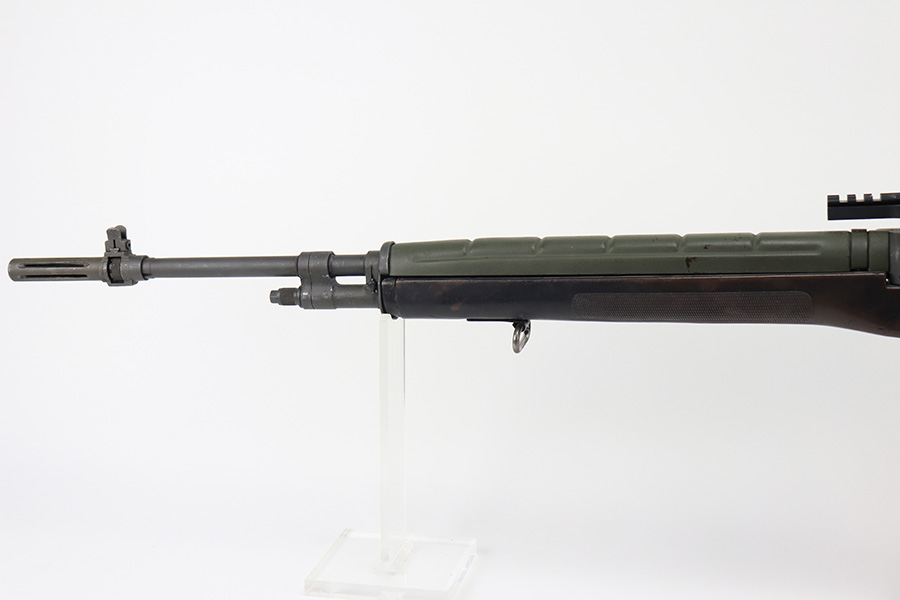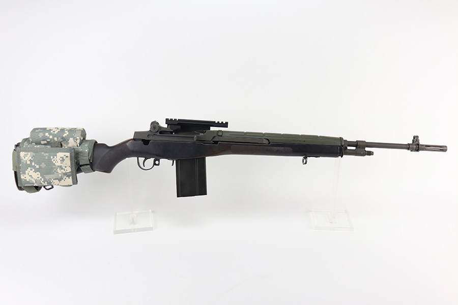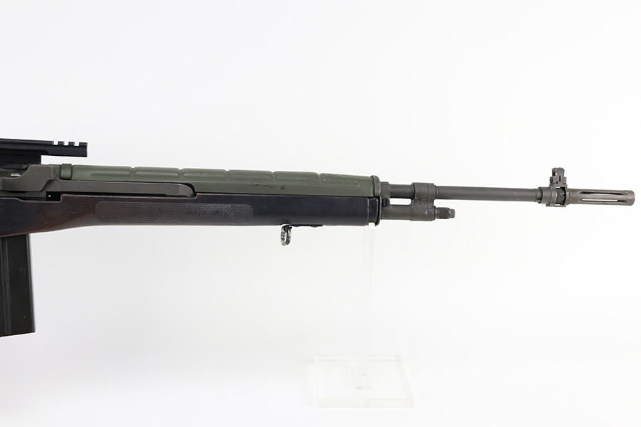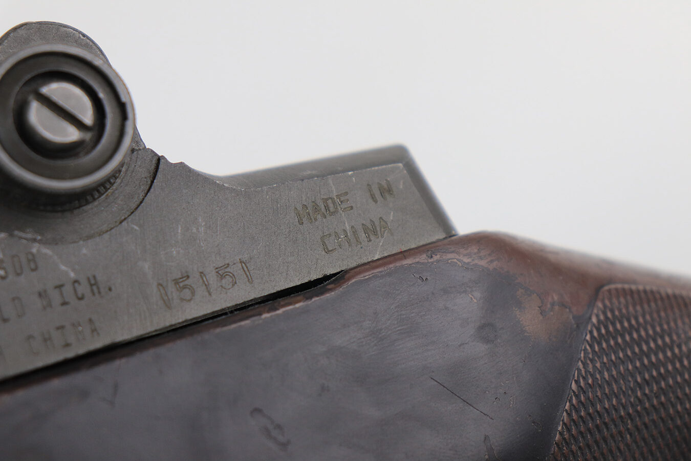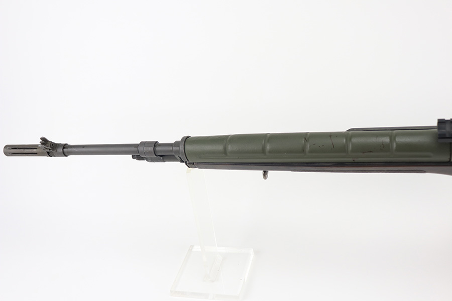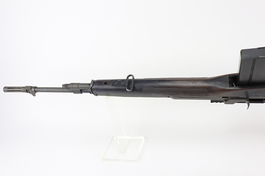 2/1/22 – This is a nice example of a Chinese make of the Springfield M14 Rifle. This one was made by Polytech and is chambered in.308 Winchester. It comes with one 25-rd magazine, a Springfield scope mount, and a camo cheek pad/butt stock cover. Overall, the gun is in nice condition. There are minor dings and scratches along the stock and areas along the stock where it looks like the black painted finish is starting to rub away. There are a few light scratches in the paint on the upper hand guard. The upper handguard fit is a little loose. There is wear around the high edges of the butt plate. The bolt has a little trouble locking back – probably could use a good oiling. The bore is near-mint.