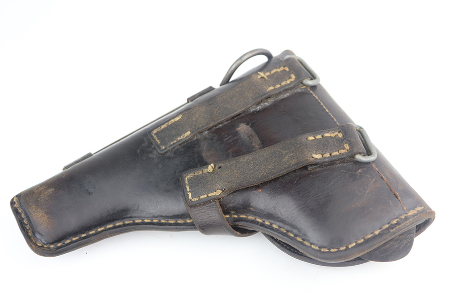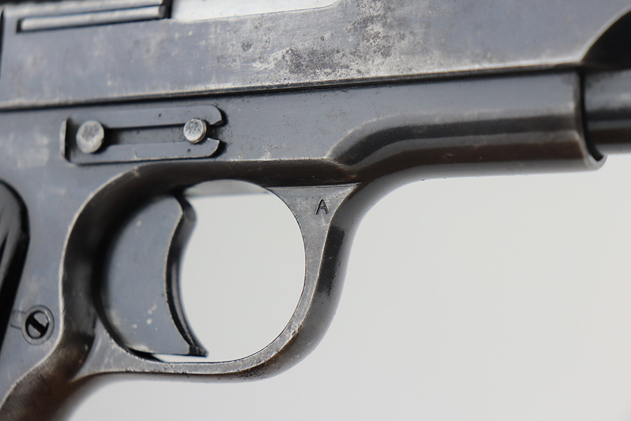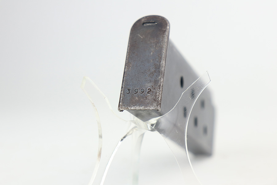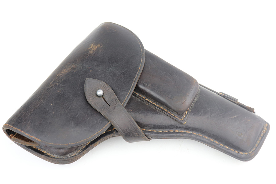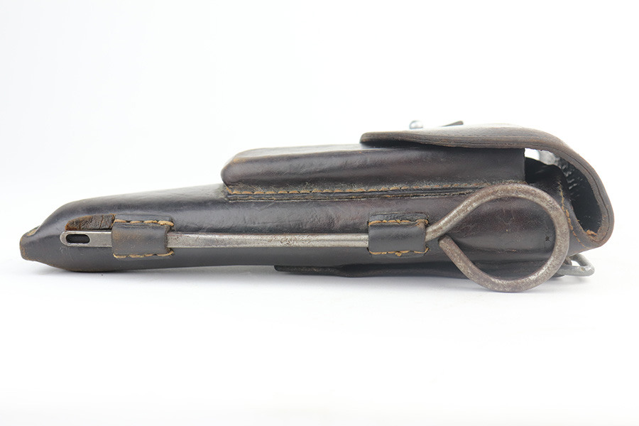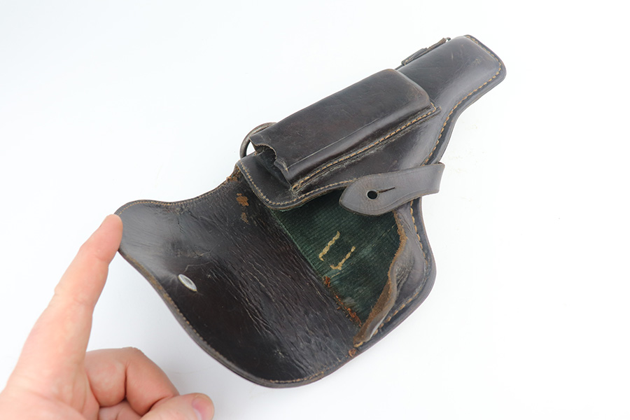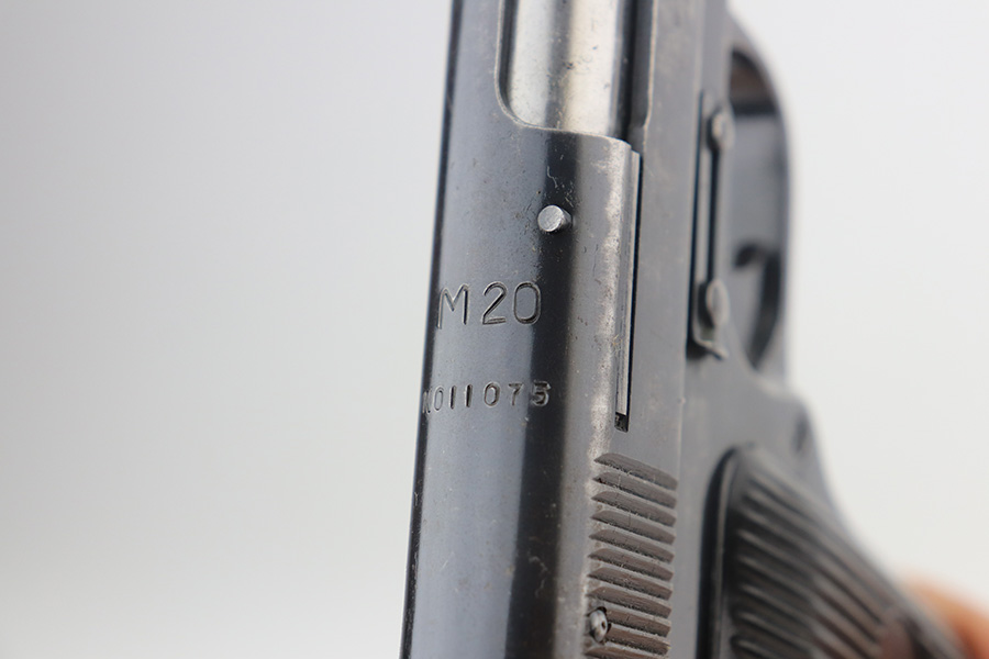 6/21/21 – This is a Chinese M20 rig, manufactured in the 1960’s. The M20 was a version of the Type 54 made without factory markings to conceal the weapon’s origins. Many of these were provided to Vietnamese forces during the Vietnam War. This one is all matching and comes with a period-correct holster, cleaning rod, and two mismatched magazines. It has retained roughly 60% of its finish. There is thinning and patina on the straps and areas of pin pricking here and there. There is a gouge in the left grip and a small chip in the right grip. The bore has decent rifling, but there is oxidation and pin-pricking throughout.