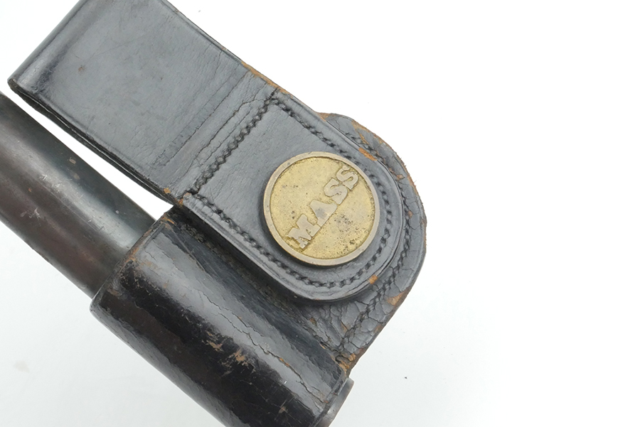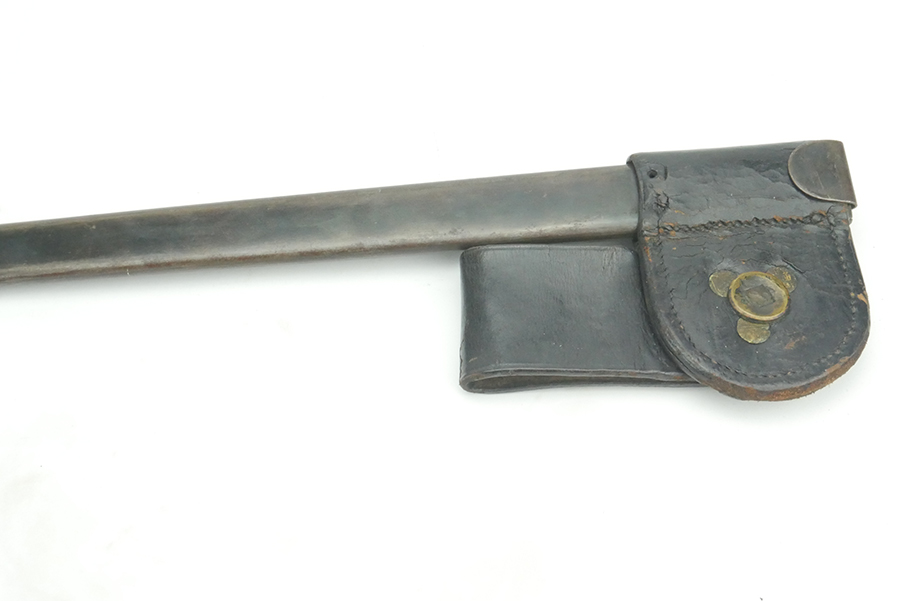 5/30/24 – This is an original Civil War musket bayonet, metal scabbard, and leather belt loop. The bayonet and belt loop are both Massachusetts marked. Blade is US marked. All in very nice condition for their age.