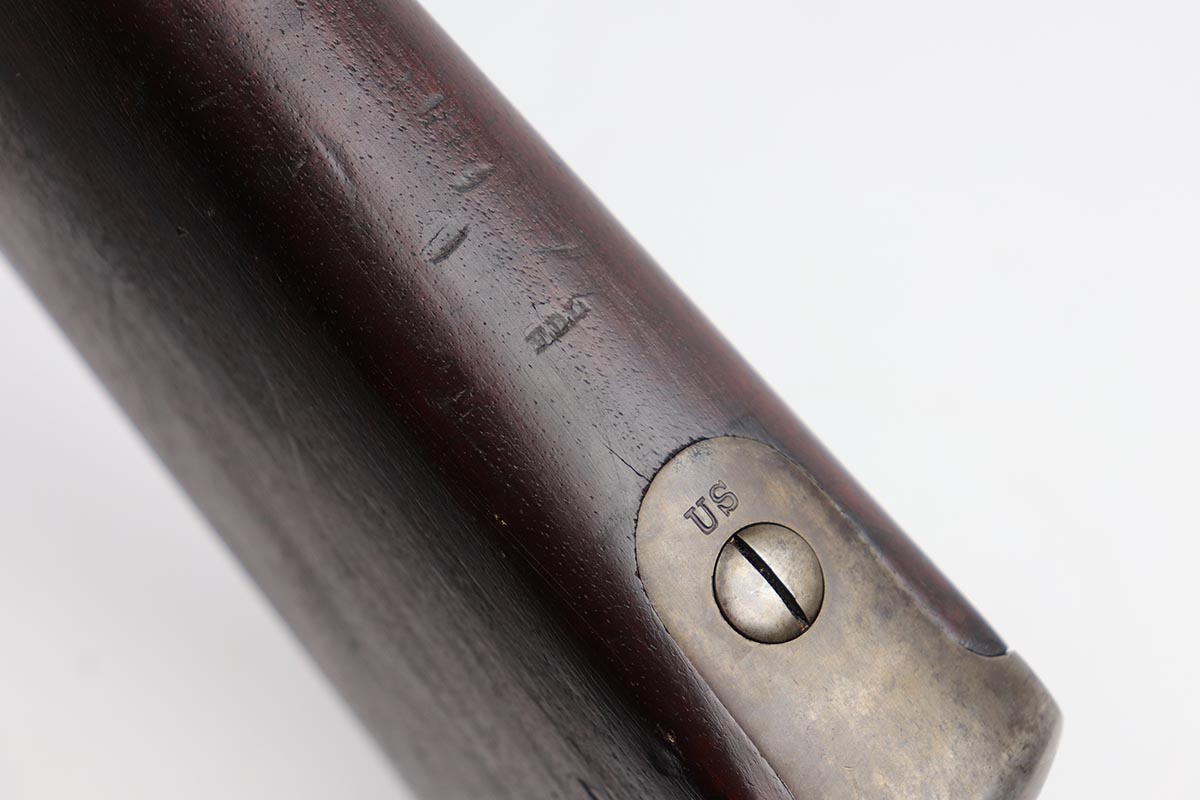 12/18/19 – This is an exceptional example of a Civil War Carbine issued to the US Army on or about 1864. It is designated as a Model 1864 and was a revolutionary design for it’s time in that it shot a single cartridge. Most of these went to Cavalry soldiers toward the end of the Civil War. The metal is mostly spotty patina but much better than most from this era. The bore is very good considering the age and rifling is fairly strong. It comes in .54 caliber. The wood is also in very nice condition considering the age. It has the inspector initials FDL on the left side of the stock, just above the saddle ring. Also again seen on the top, rear of the stock. Original butt plate is marked U.S. The action is tight and the serial numbers all match. This is an antique so can be mailed direct to you.