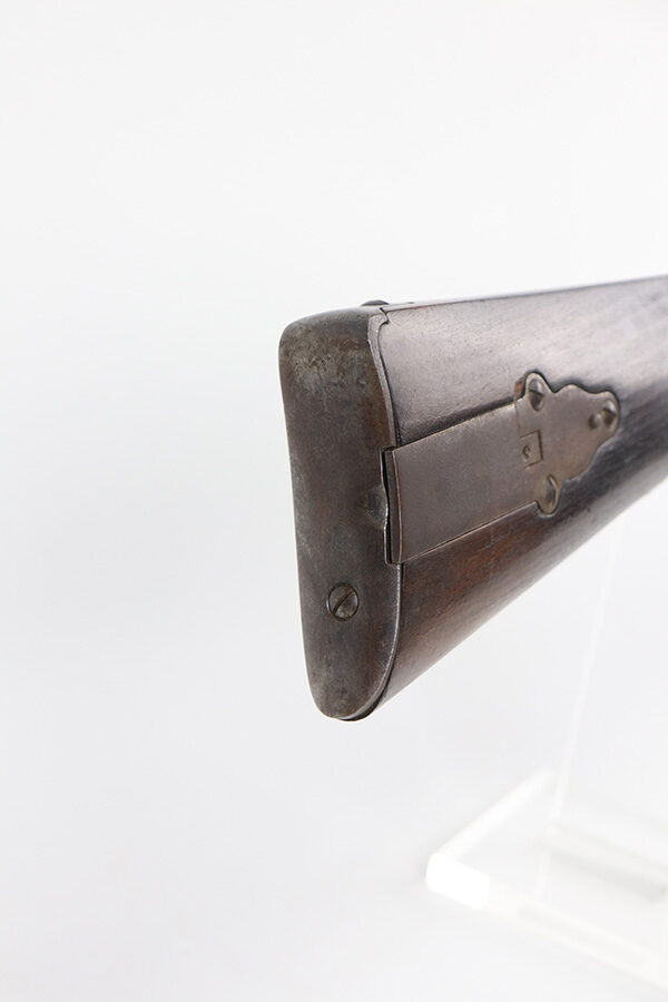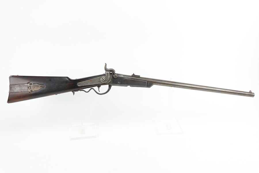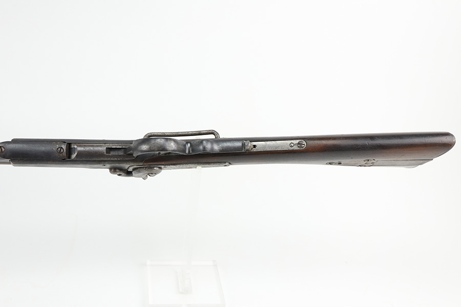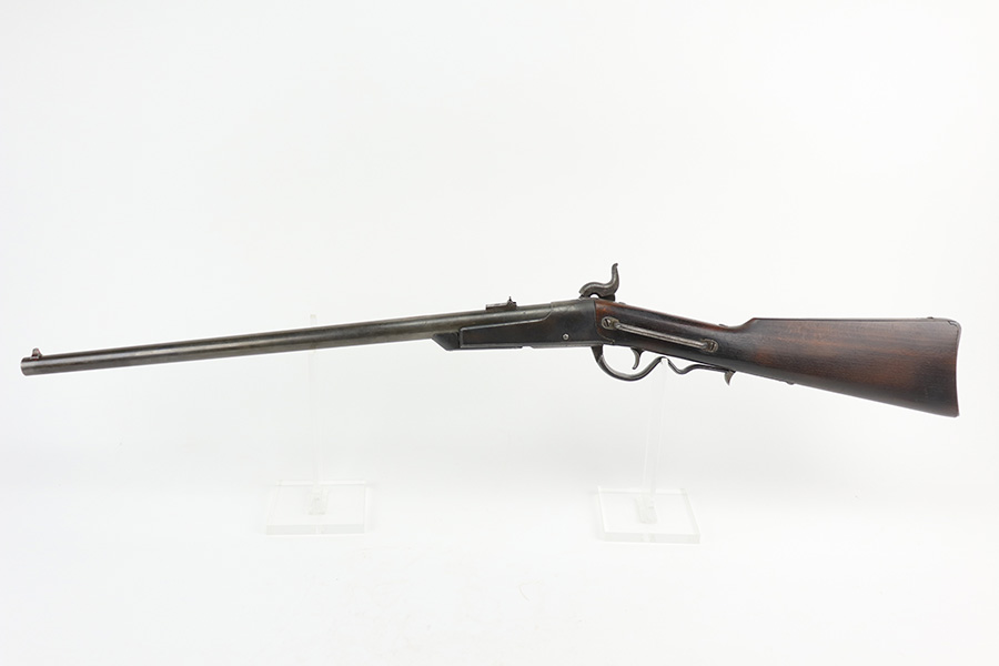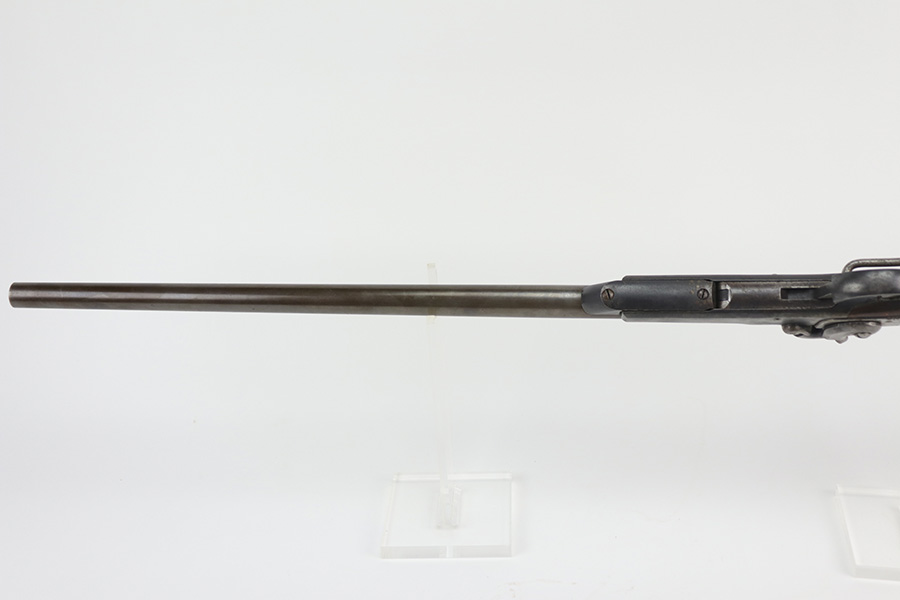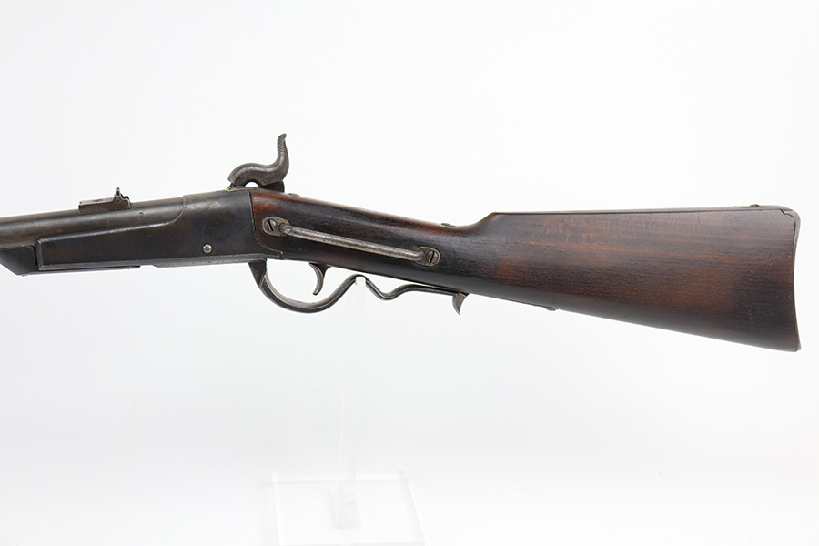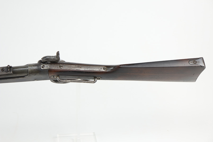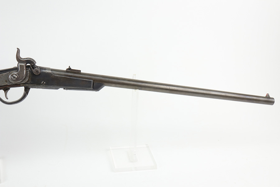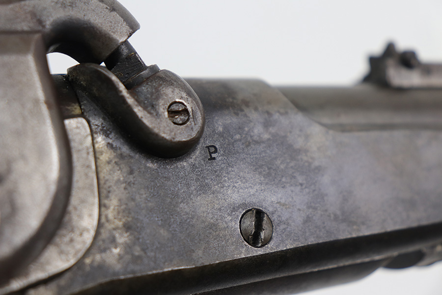 9/28/21 – This is a nice example of a Gallagher M1860 Carbine. The rifle’s designer, Mahlon J. Gallagher of Savannah, Georgia, leased the pattern to Philadelphia gun makers, Richardson & Overman. The Gallagher carbine was issued to Federal cavalry during the Civil War. This one is fully functional and the action is smooth. There is a “D” proof on the barrel, a “P” proof on the receiver, and “W” proofs on the small parts. No visible marking on the stock. The gun has lost most of its original finish with brown patina, splotchy discoloration, and spotty oxidation throughout. There are some areas of minor pitting along the underside of the gun. Very nice stock with minor scratches here and there. The bore has strong rifling with pin-pricking throughout.