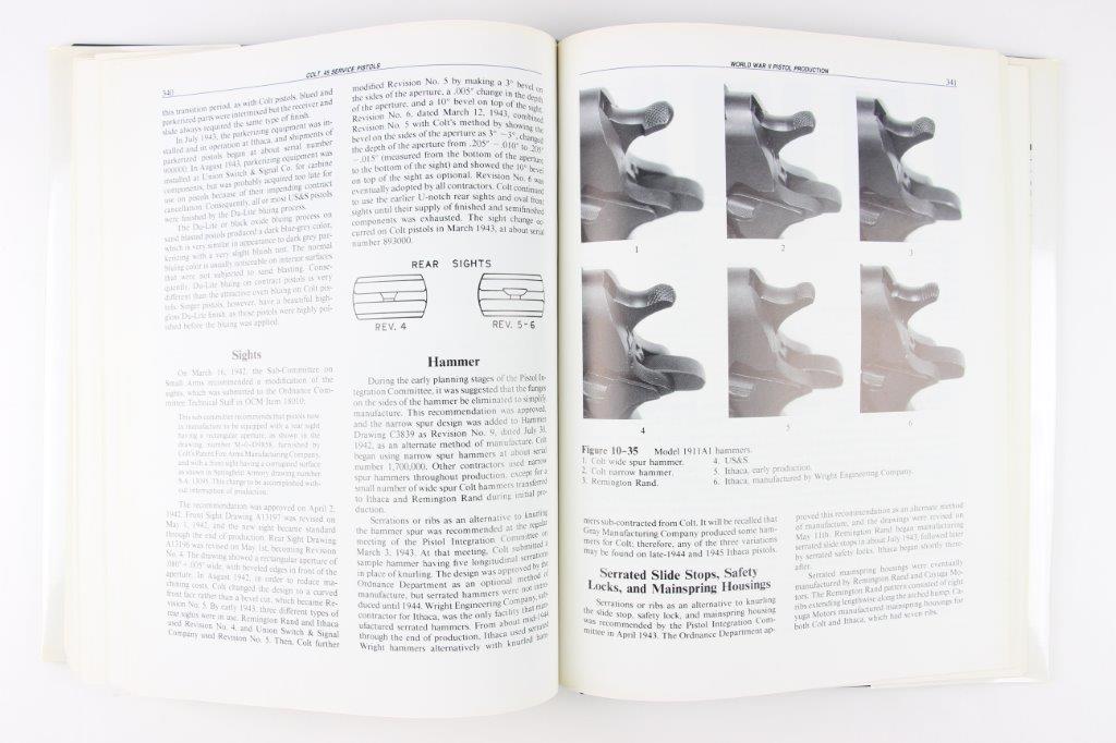 2/28/24 – This is a hardcover copy of Charles Clawson’s book on Colt 1911 and 1911A1 service pistols. This is the “big book”, which covers the complete military history, development, and production of Colt 1911 and 1911A1 pistols from 1900-1945. One of the most desirable and hardest-to-find collector resource books on the market. This is THE book to have for Colt 1911 collectors. This copy is an original 1993 printing in hardcover with the original sleeve. The back of the sleeve has a small rip in one corner, but the rest of the book is in great shape. All pages are excellent, clean, and intact. 429 pages total.