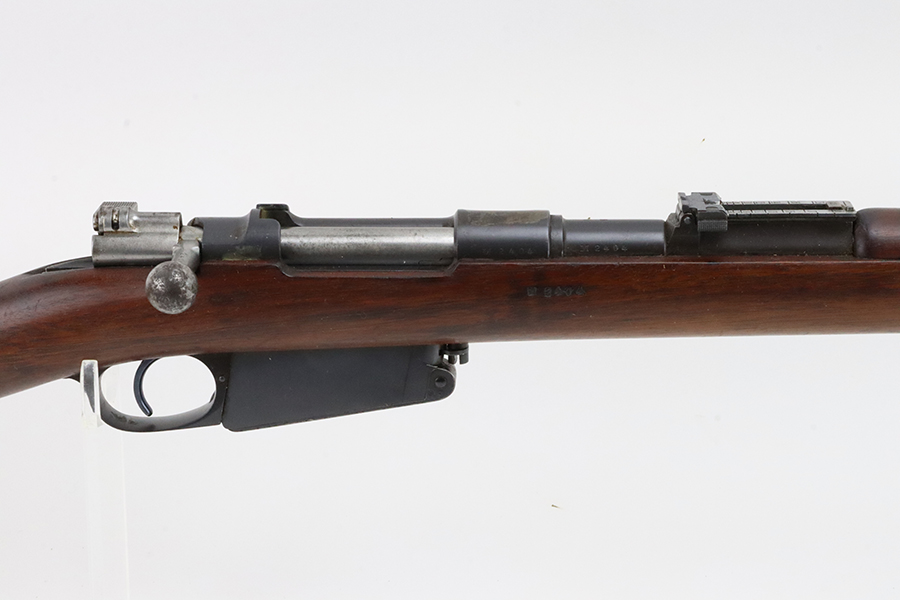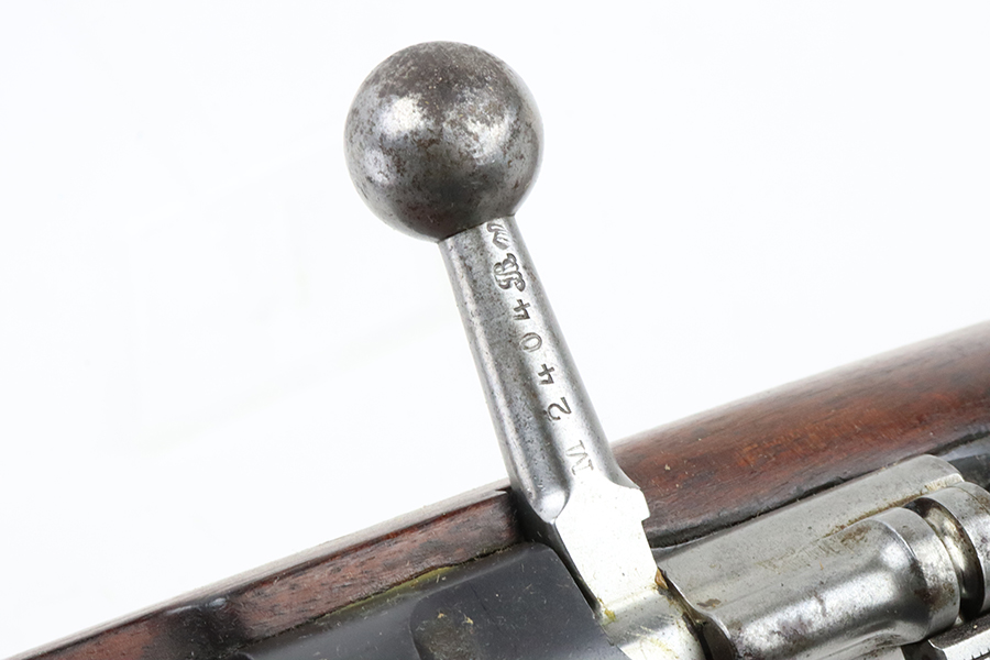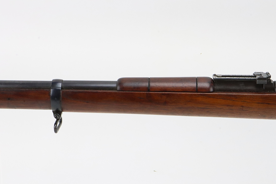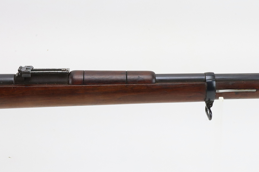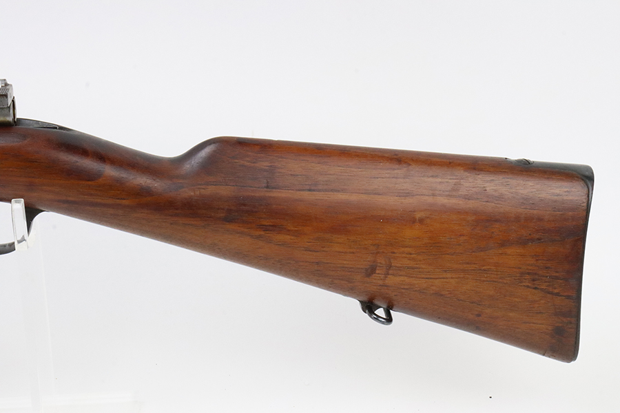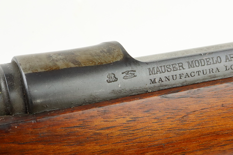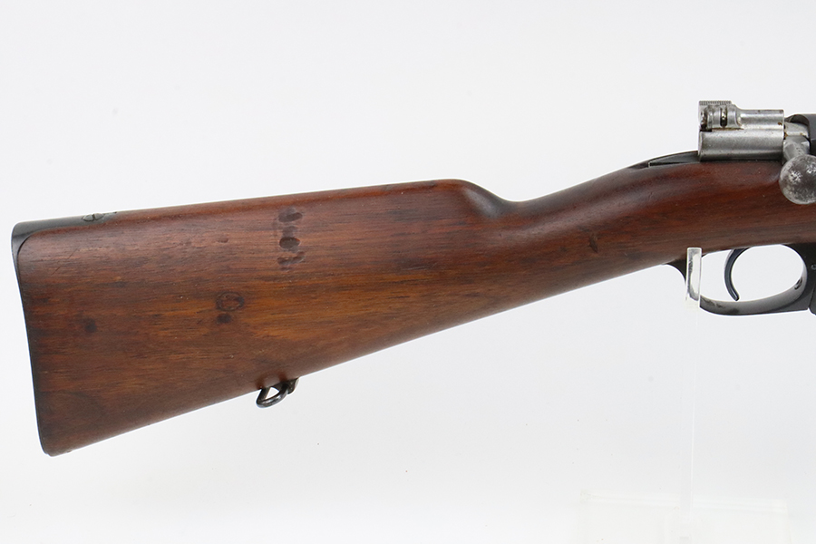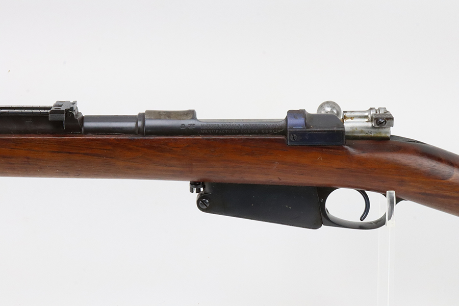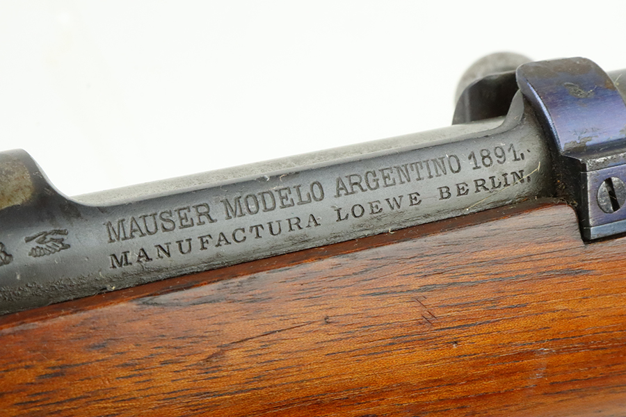 03/05/2024 – For sale is a clean Argentine Mauser Model 1891 made by Loewe in 1895. The Argentine Model 1891 is based on the Belgian 1889 Mauser rifle. The rifle is all matching including the cleaning rod. The metal finish on the rifle is clean with minimal blemishes and pockets of dried grease. There is some freckling of pitting on the magazine. The crest on the receiver has been ground away as is typical. The stock is sound with no major damages. The bore is clean and fairly bright but it is frosted.