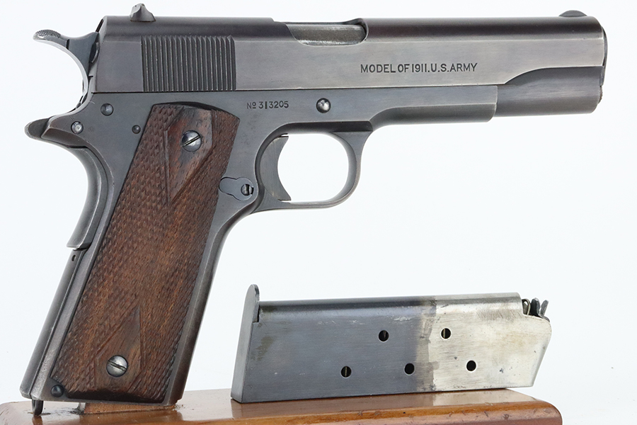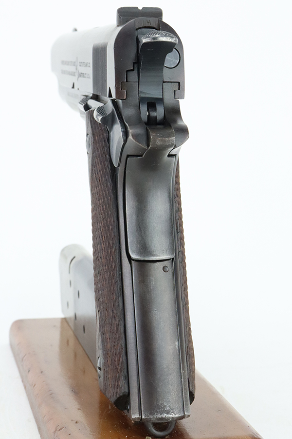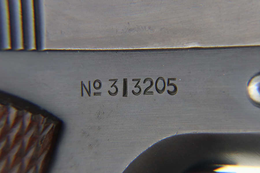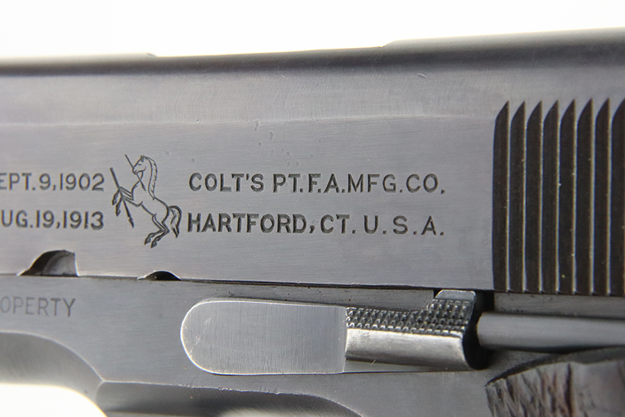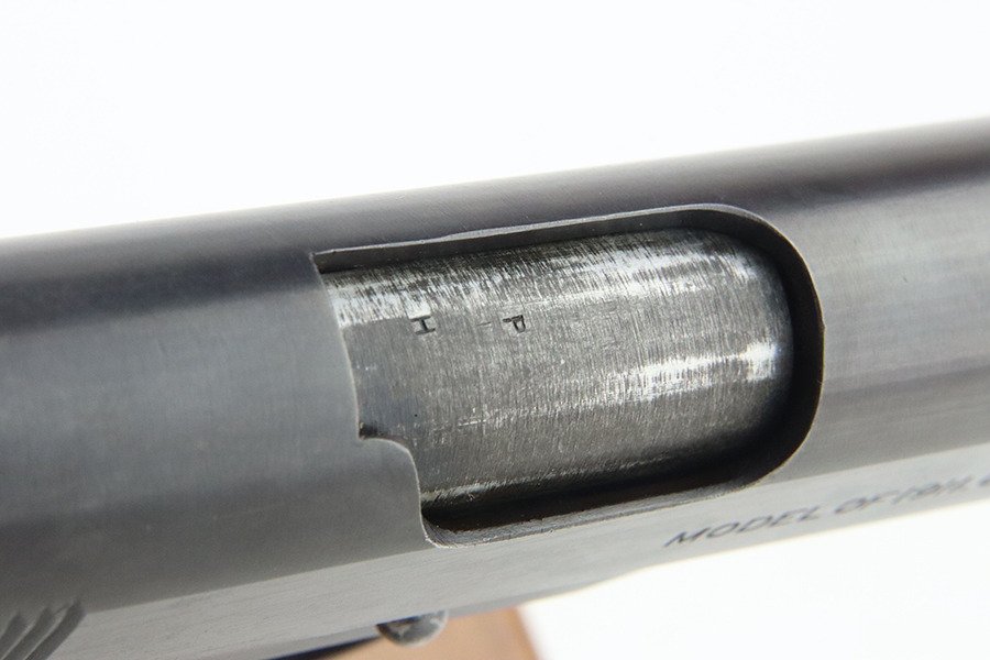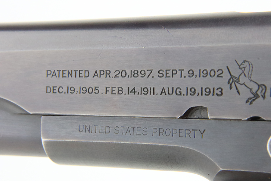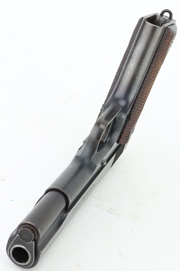 05/15/2024 – For sale is a Colt 1911 made in 1918. The handgun rates at about 95% overall finish as there is some finish loss on the backstrap of the pistol, and pockets of wear on the slide and frame but still retains a nice finish overall. The bore is bright with good rifling but it is frosted over. The top of the barrel is stamped H and P and the side of the receiver is stamped with the Eagle Head S* proof.