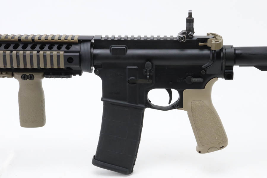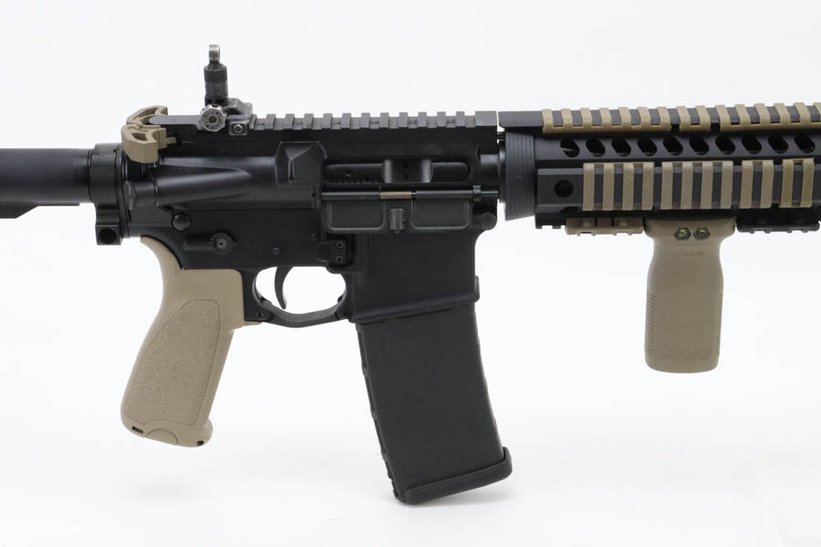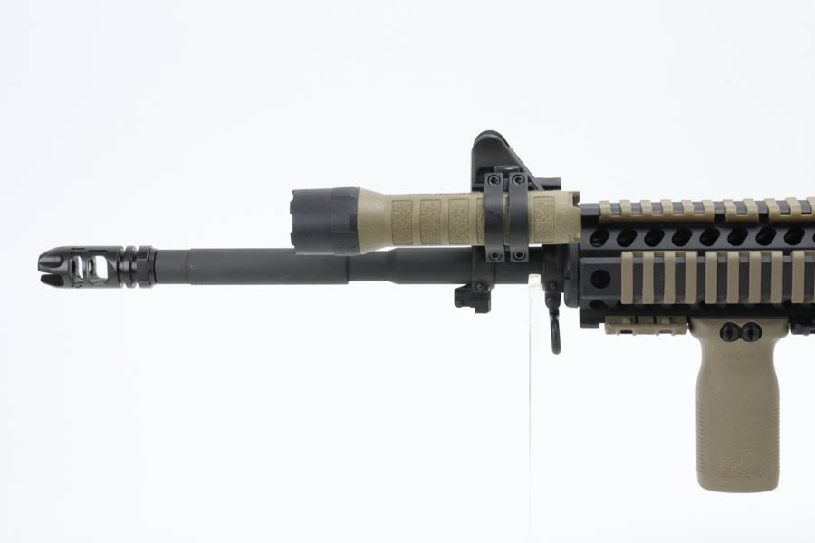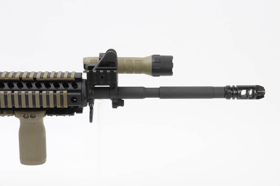 06/04/2024 – For sale is a Colt M4 carbine with FDE furniture installed. The rifle is in excellent condition with minimal finish loss to note. The rifle has a mirror bright bore with excellent rifling. There are a couple aftermarket parts installed like Mgapul pistol grip , vertical grip, BCM stock, a Armspec Victory Charging handle, Knights Armament USMC rear sight, VG6 Epsilon brake, and a tac light. The rifle comes with one 30-round PMAG.