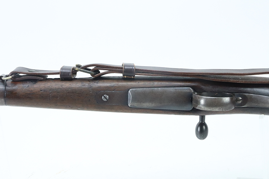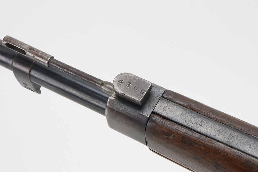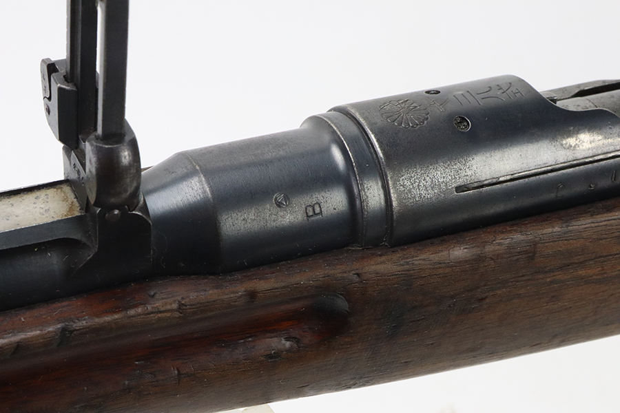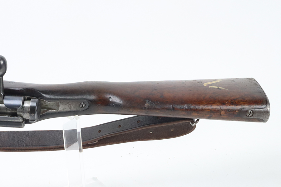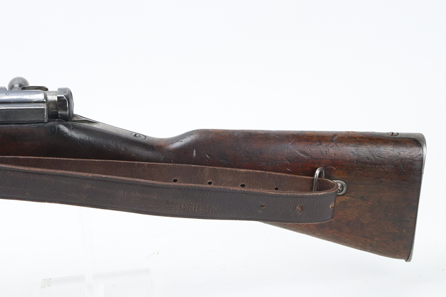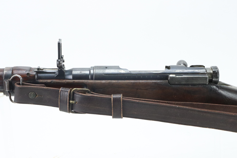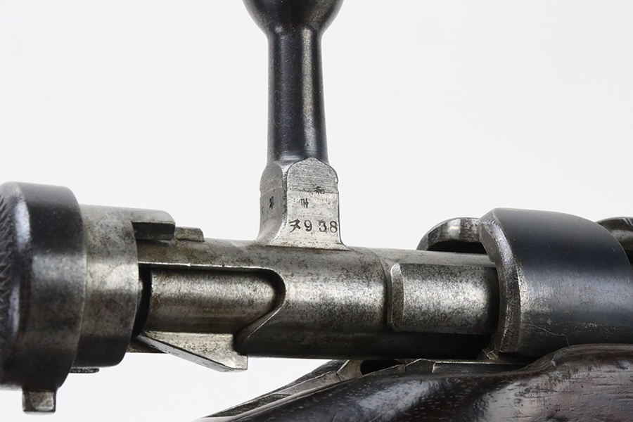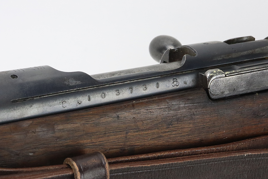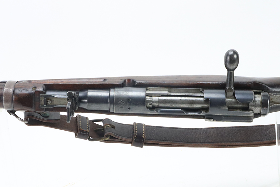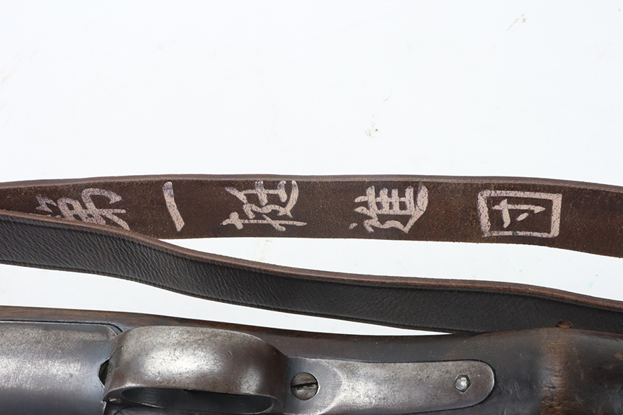 05/17/2024 – For sale is a Type 38 Carbine made at the Koishikawa Arsenal that was removed from military service to become a school drilling rifle. This rifle is in an overall 90% condition with finish loss on spots of the receiver and towards the muzzle. The bore is slightly dark but light shines through. The Imperial mum is canceled out and there is a character for “Teach” stamped above where its stamped Type 38. There is a serial prefix of 00 added before the serial number to denote it was turned into a school rifle. The rifle is mismatched. The stock is clean and free of any cracks or breaks. The stock is painted “8” on the right side. The carbine comes with a reproduction leather sling that had tried to write “First Paratroop group” in Japanese.