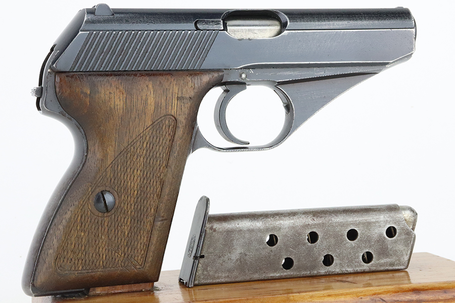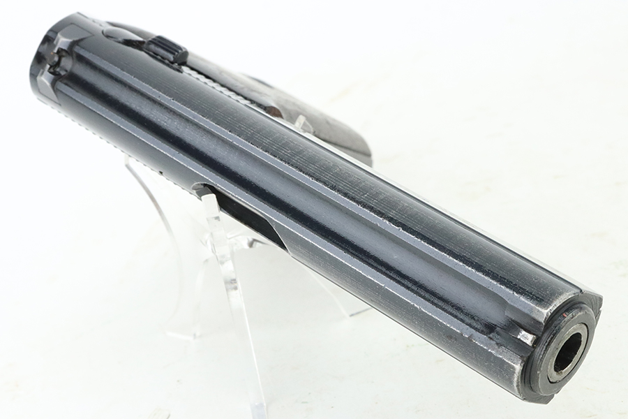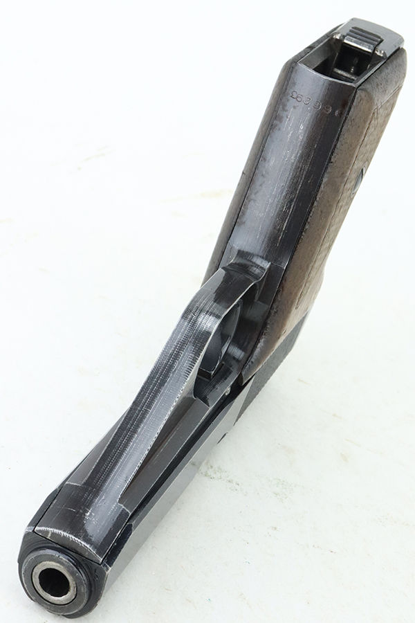 05/28/2024 – For sale is a Mauser HSc pistol produced after WW2. This handgun is marked on the trigger guard with French proofs as France occupied the Mauser factory after the war. This handgun is in great condition overall but has an old reblue. The slide has some edge wear on the slide and frame. The bore is bright but there are signs of wear. The frame does not match the barrel locking lug, and the slide is unnumbered.