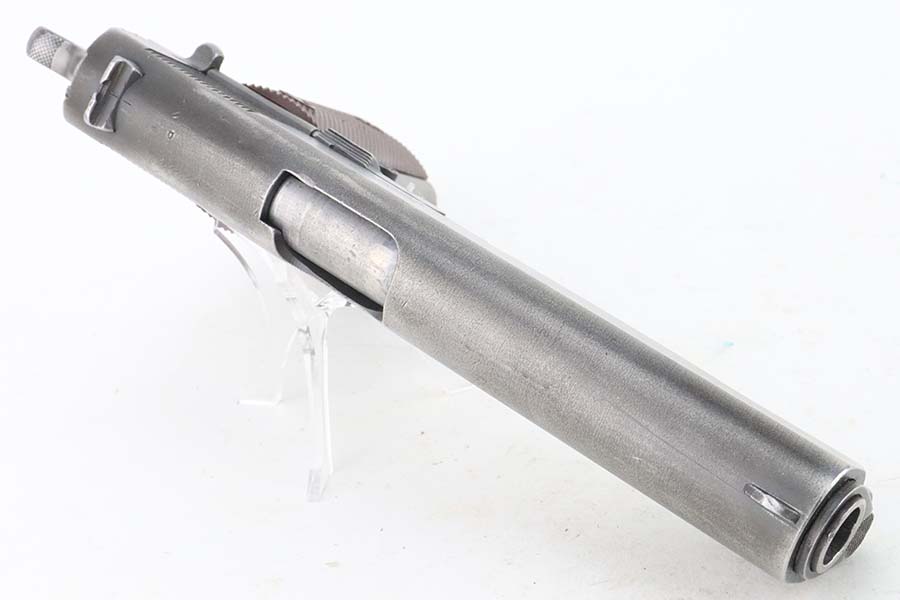 05/30/2024 – For sale is a 1943 Remington Rand 1911A1. This handgun shows some thinning to the finish throughout. The cross cannon stamp is slightly faded on the rear of the frame. The barrel is stamped HS for High Standard. The bore is bright but frosted over and has good rifling. The magazine is unmarked. Comes with a CMP pistol case, a pistol lock, a 1911 maintenance manual from the Dept of the Army, and the original CMP order tied to this pistol.