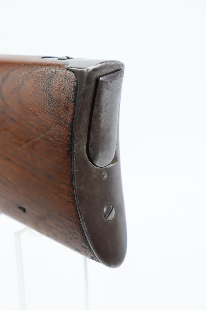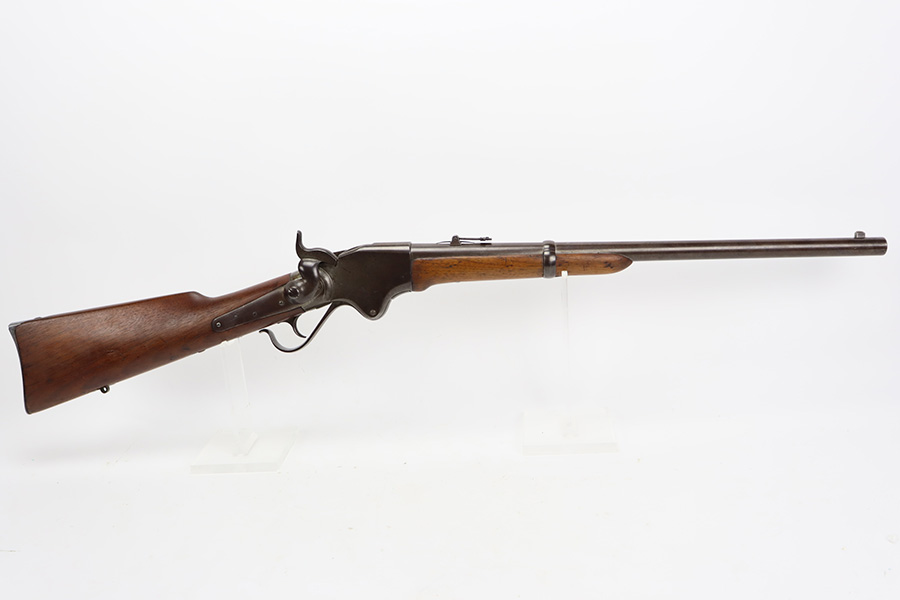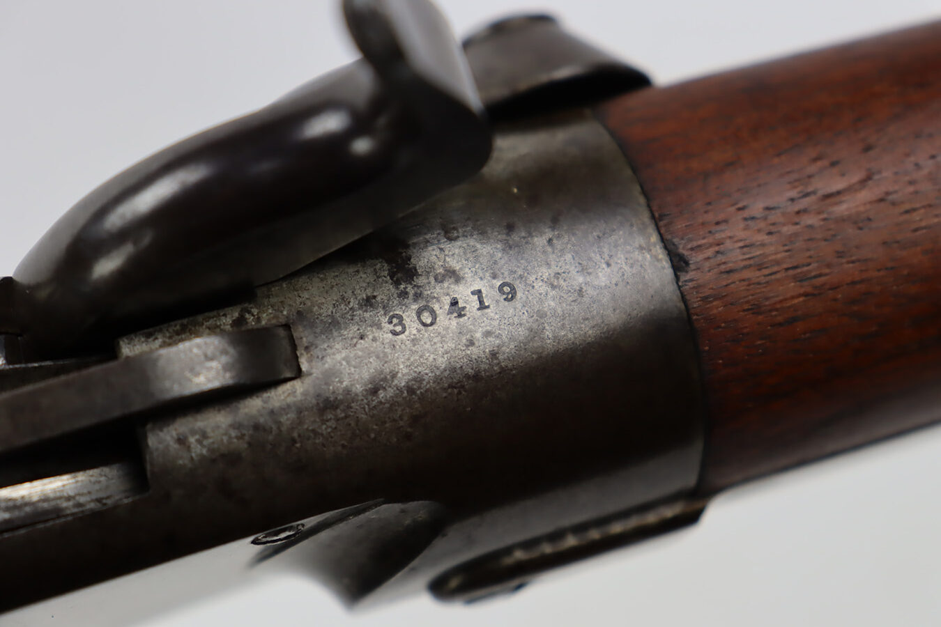 11/21/23 – This is a clean example of a Spencer Repeating Carbine that was made around the Civil War. The Spencer was one of the early adopters of repeating carbine that was used in service by a nation. For its age, the carbine is in great condition with patina throughout on the metal. The stock is in great shape with no damage. The bore is bright but there is speckling of pitting throughout. The receiver is stamped “Spencer Repeating Rifle Co, Boston, MA” on top with the serial number behind the chamber.