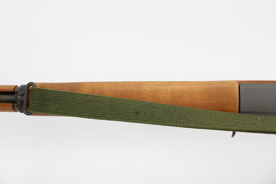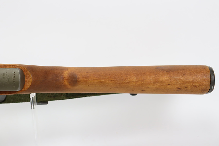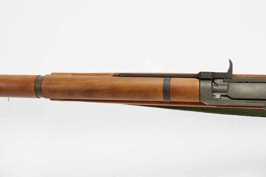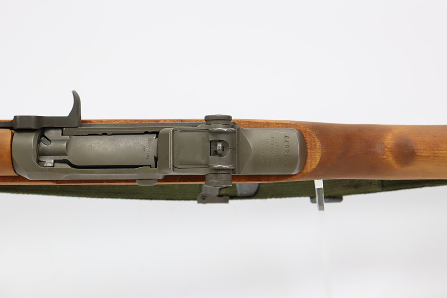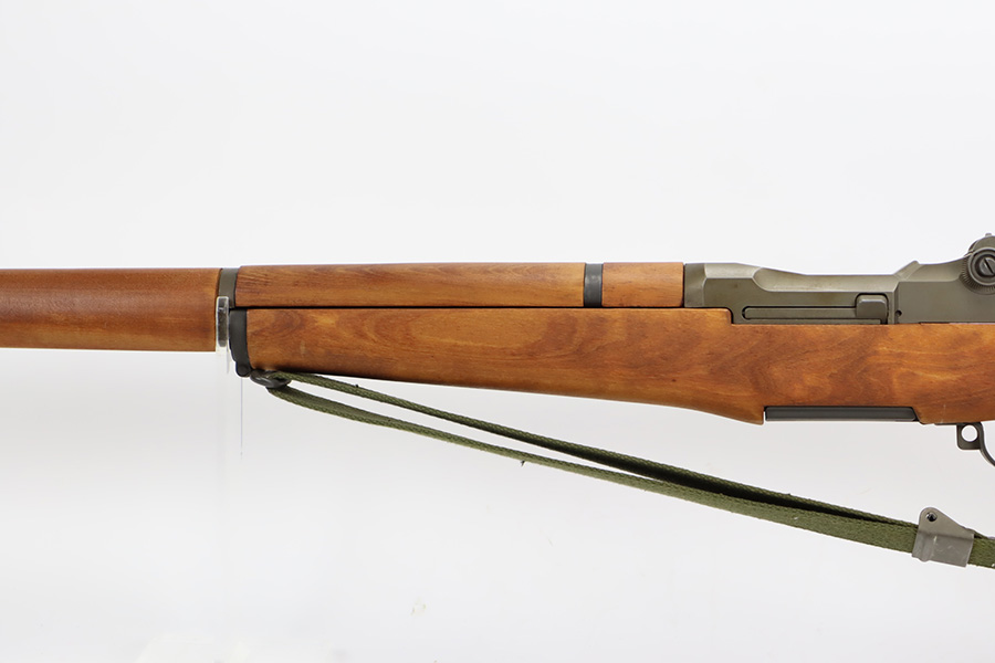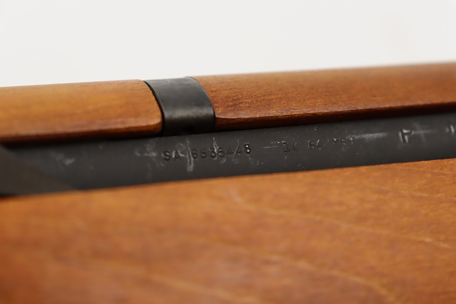 10/31/23 – This is an example of a very nice M1 Garand that was rebuilt in the mid-1960s using an original 1945 receiver. The rifle retains 99% of its finish as it went through the arsenal rebuild. The packetized finish is very clean and not much finish loss other than some small spots on the barrel. The stock is a post-war replacement and the barrel is also marked October of 1964. The bore has sharp rifling and is very bright but gets slightly frosted towards the muzzle. The rifle comes with a green canvas sling.