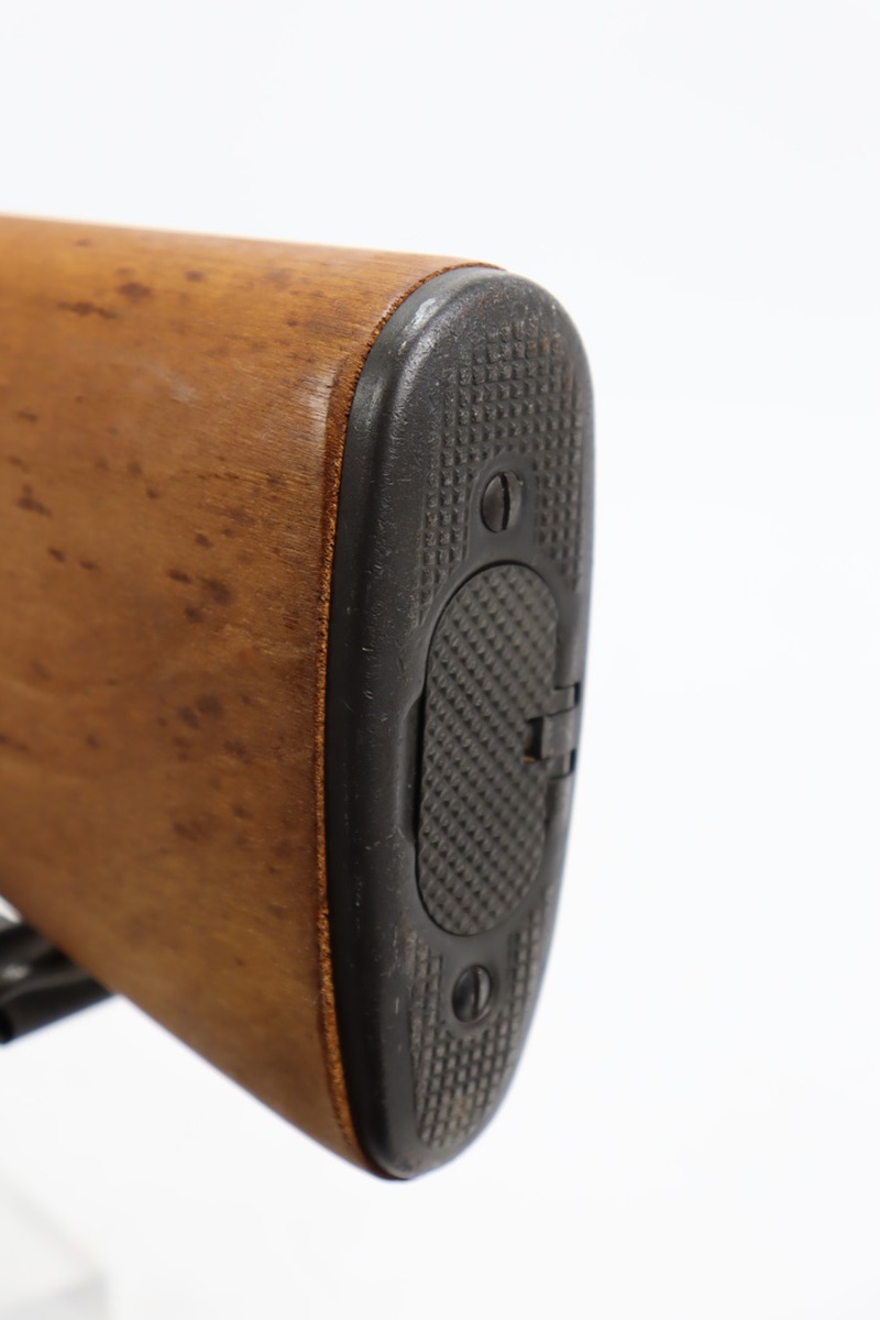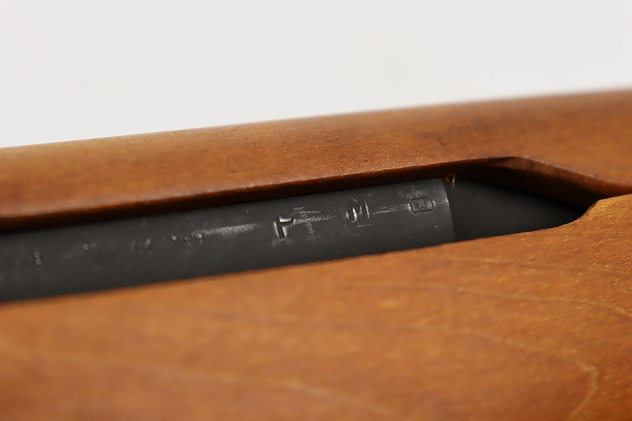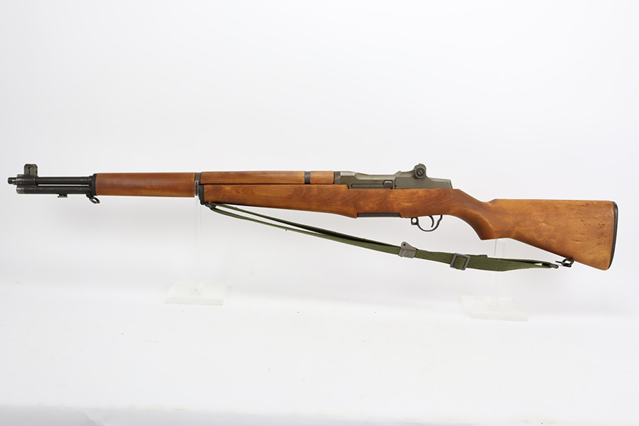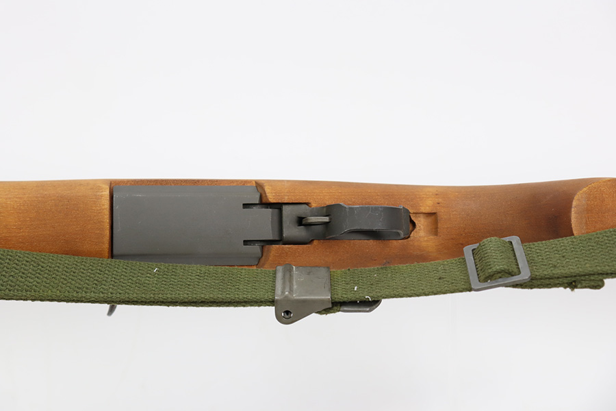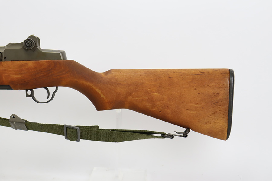 10/31/23 – This is an example of a very nice M1 Garand that was rebuilt in the mid-1960s using an original 1945 receiver. The rifle retains 99% of its finish as it went through the arsenal rebuild. The packetized finish is very clean and not much finish loss other than some small spots on the barrel. The stock is a post-war replacement and the barrel is also marked October of 1964. The bore has sharp rifling and is very bright but gets slightly frosted towards the muzzle. The rifle comes with a green canvas sling.