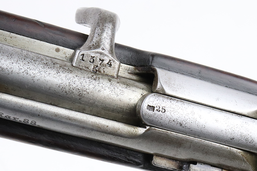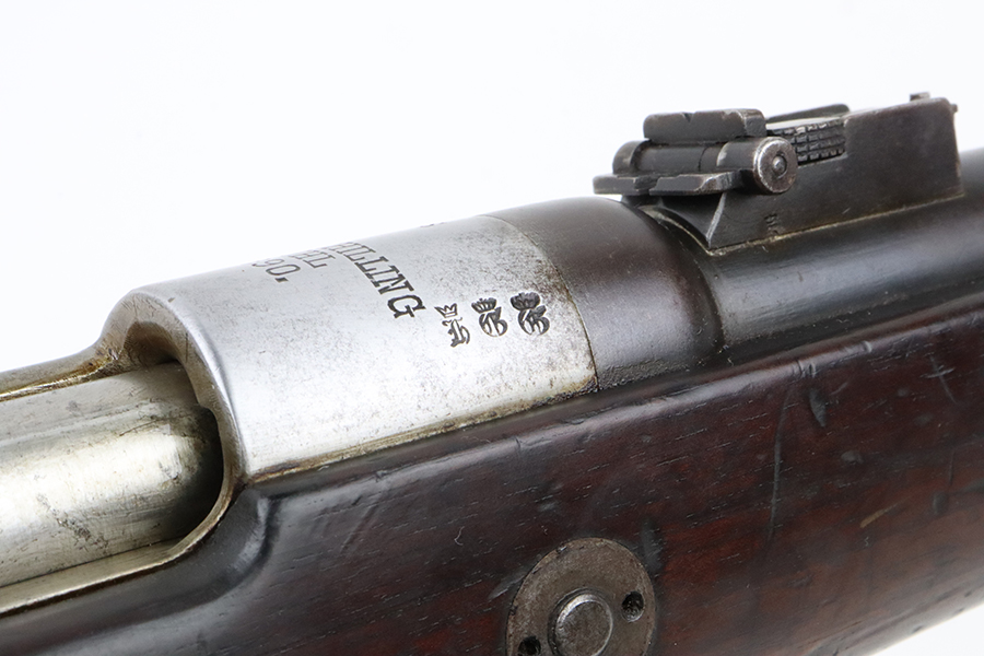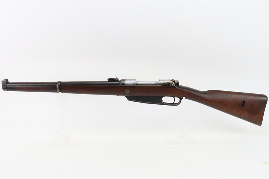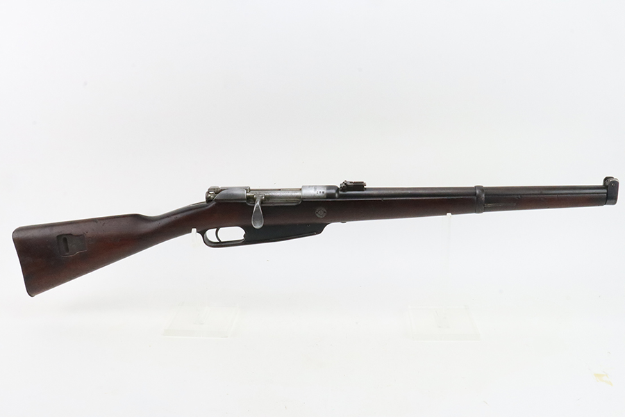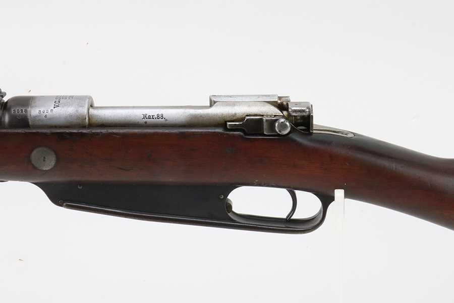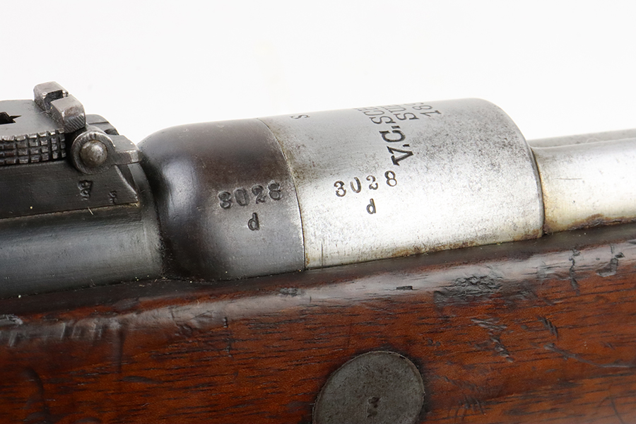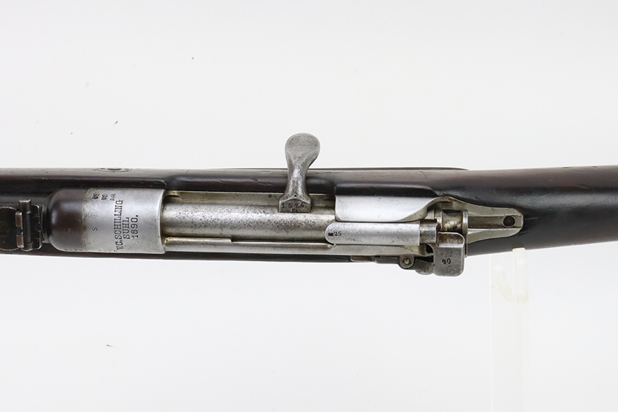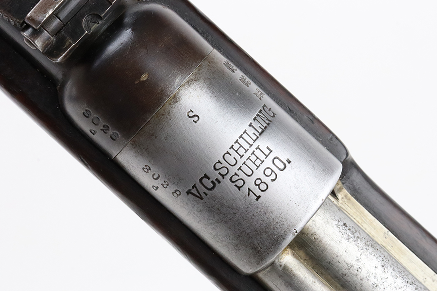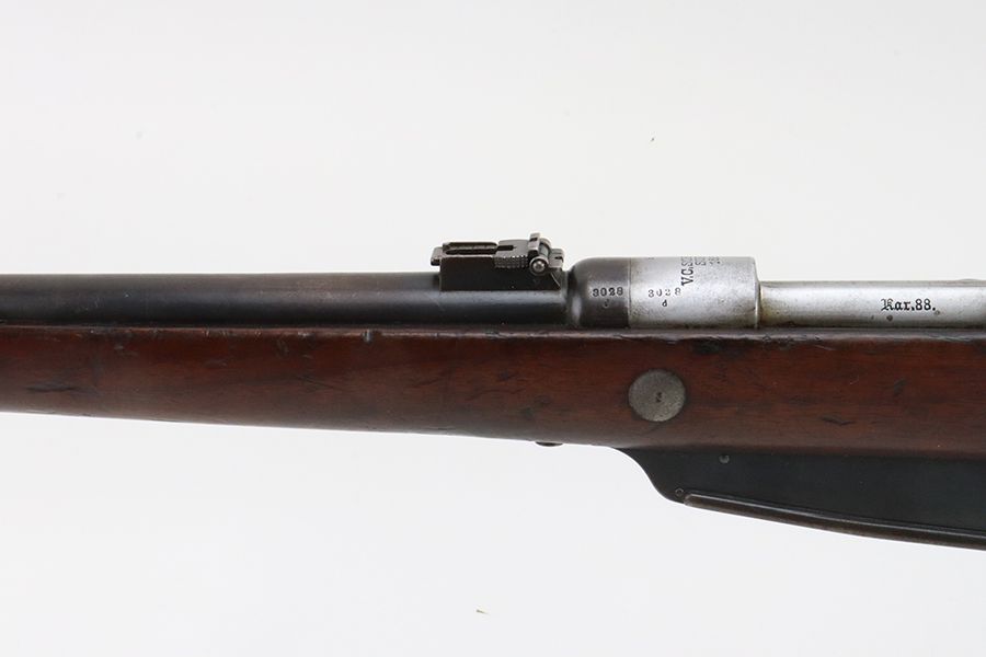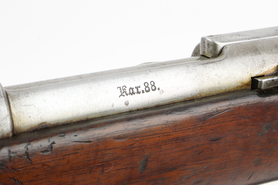02/12/2024 – For sale is a Kar 88 carbine manufactured in 1890 by VC Schilling Suhl. The Kar 88 is a carbine version of the Gewehr 1888 rifle and was used by rear-echelon soldiers. This example does not match. The bore is bright but fogged over and has good rifling. The rifle has patina throughout its metal parts but many of the parts retain their original bluing. The wood stock is sound and free of damage.