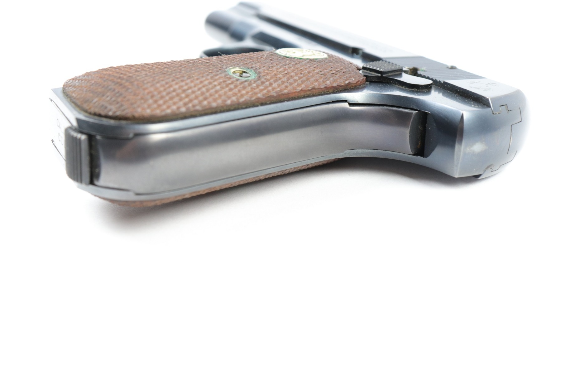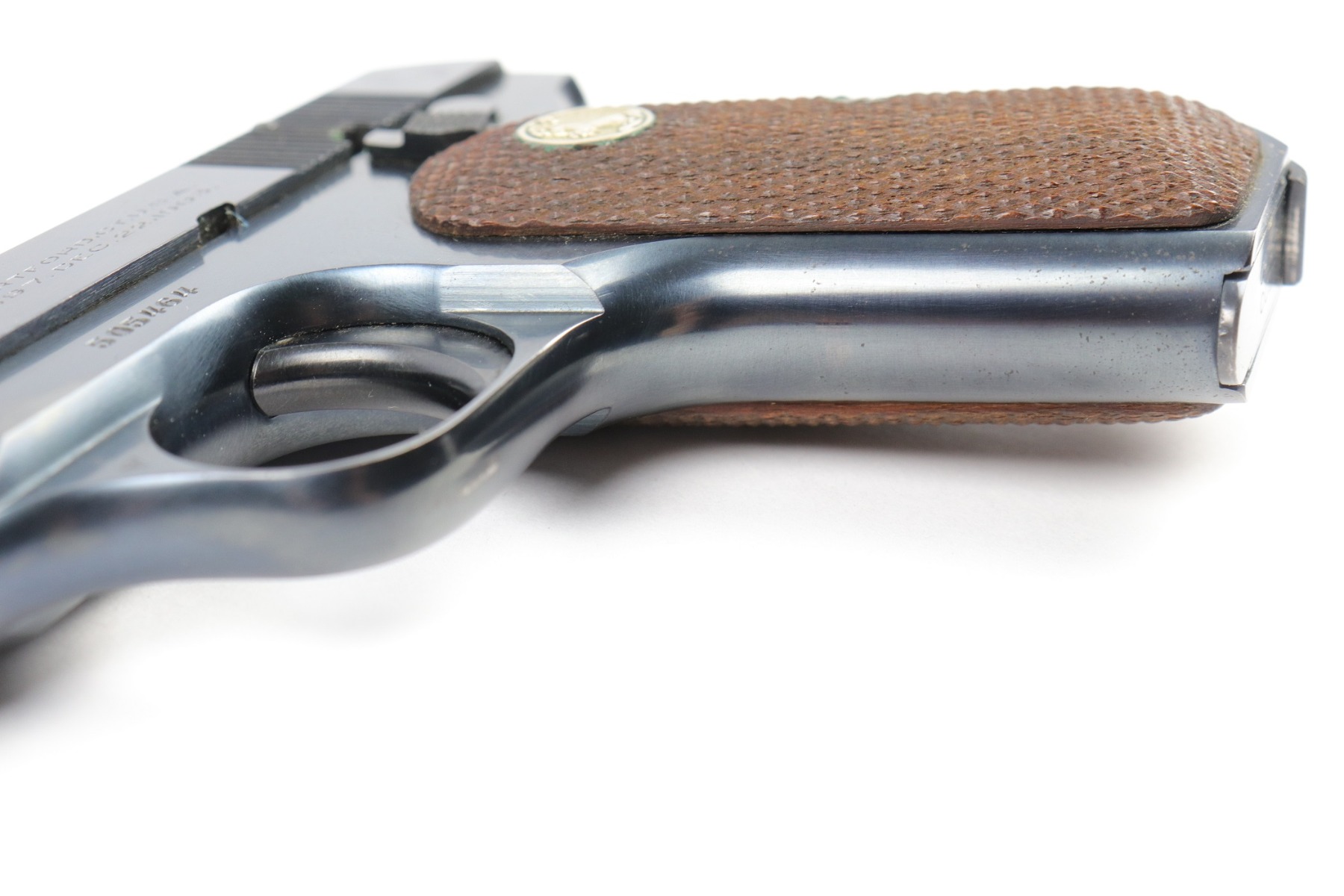3/22/18 – This is a beautiful 1930 production Colt model 1903 pistol with the original box numbered to the gun. The pistol has a beautiful Colt blued finish throughout and is like new condition except for a few small blemishes. The top of the slide has some light speckling (shown in photos), there is a hint of edge wear near the muzzle, and there is a small blemish on the legend of the pistol. Otherwise the gun is gorgeous and would make a great addition to a Colt collection. The wood grips are excellent and the magazine is correct for the pistol. The original box is a little tattered, and the lid is missing a few edges, but the box is numbered to the pistol on the underside. There are also 2 manuals included. Guaranteed original.