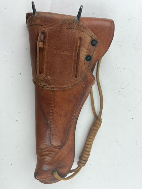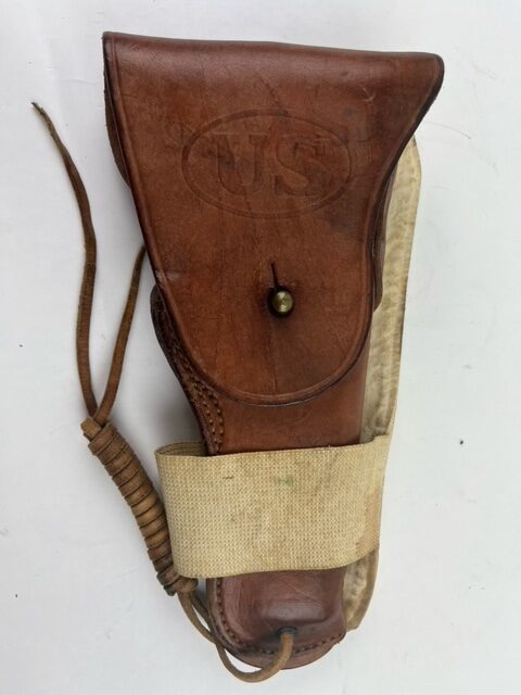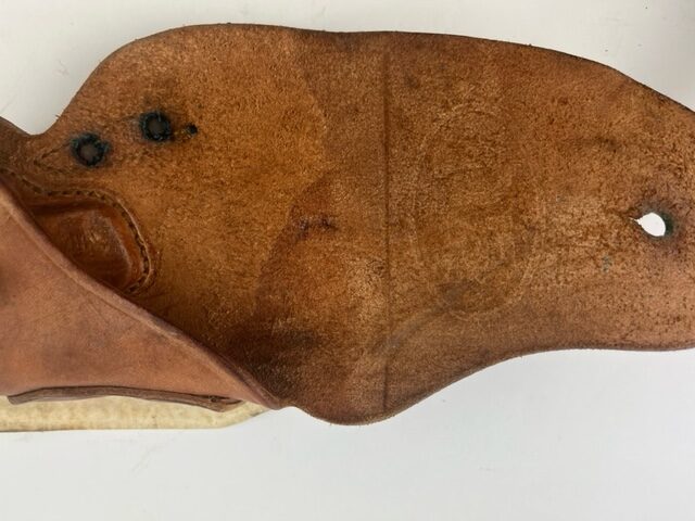10/12/23 – This is an original Colt 1911A1 holster made by A.L.P Co and issued to the United States Navy. Maker marked on the back and US stamped on the front. Leather is in great condition, just some minor handling marks here and there. Includes original Navy pants protector.