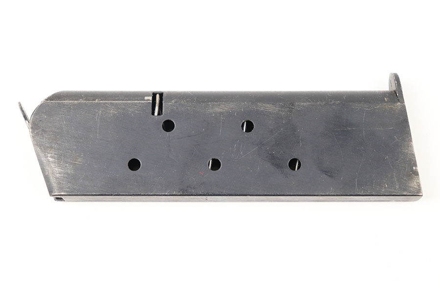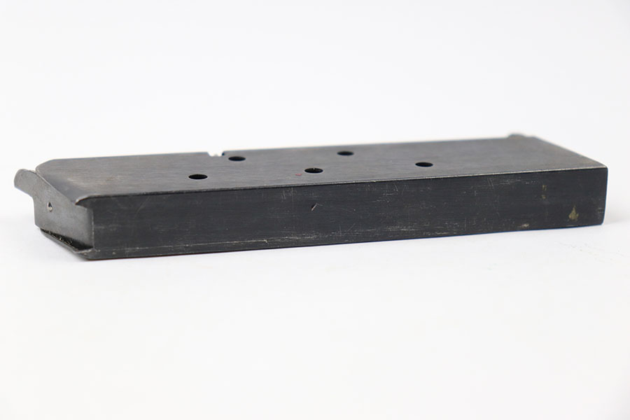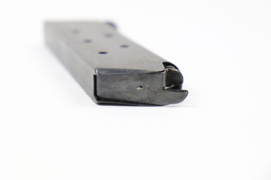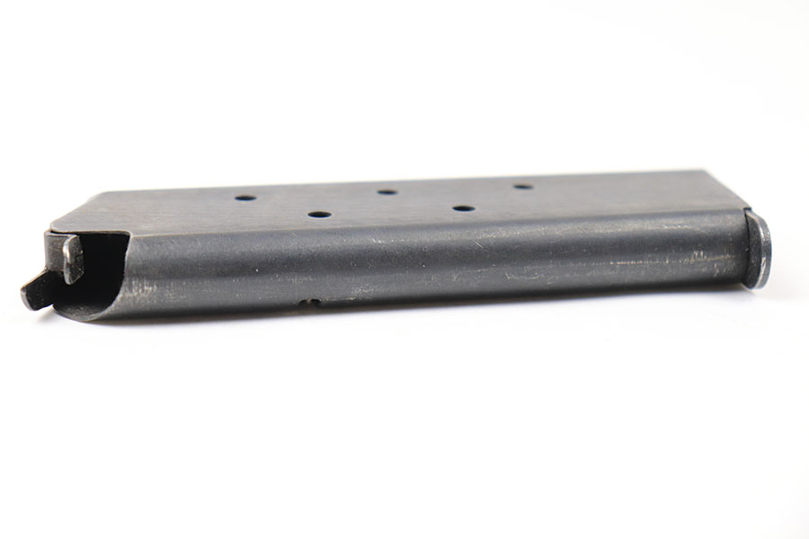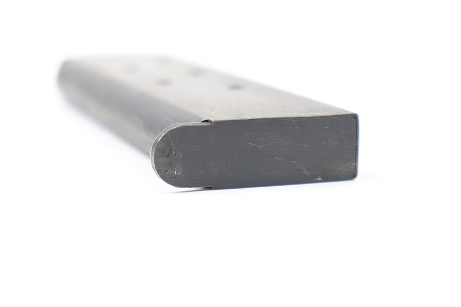 8/9/21 – This is an original WW2 1911A1 Colt magazine. Excellent blued finish throughout, with some mild wear from aging and previous use. Fully functional spring. Stamped “C-S” on the base, as shown. Multiple available (you may not get the exact one shown in photos, but similar).