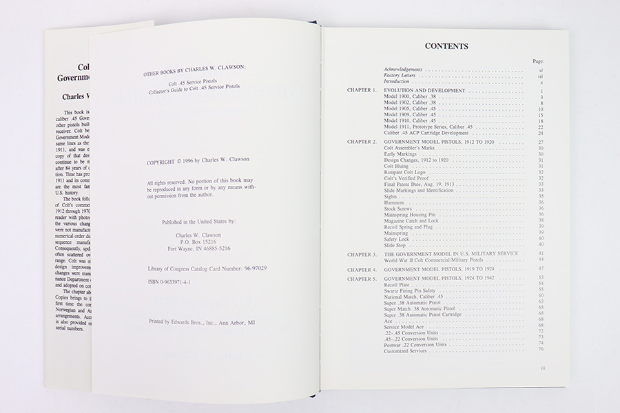 10/31/22 – The most comprehensive and complete resource book on commercial Colt model 1911 and 1911A1 pistols. Hardcover collector book by Charles Clawson. Excellent condition with the original sleeve and all pages intact. 230 total pages. Covers Colt 1911s from 1912 through 1970, including Super .38 and .22 models, plus Norwegian and Argentine Copies.