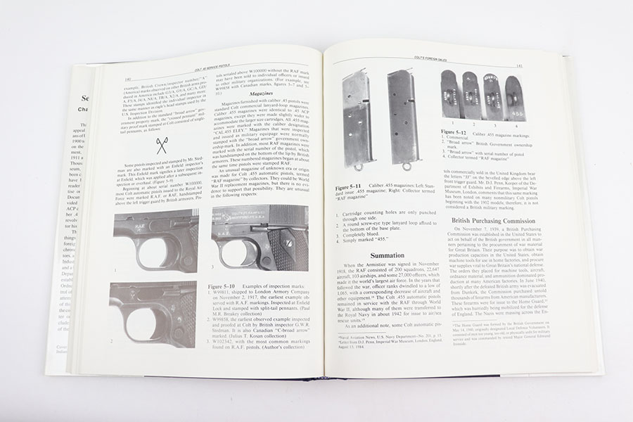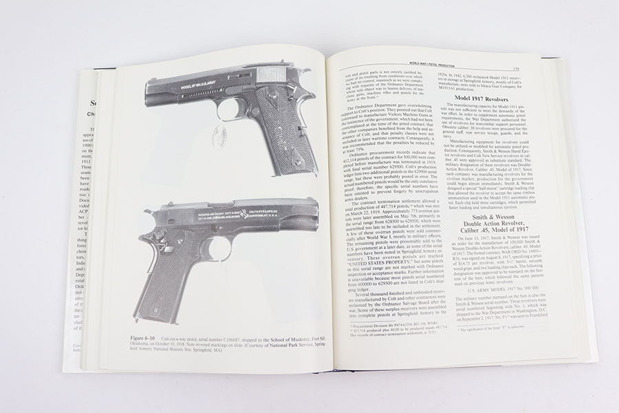 10/29/19 – This book is the most in depth, useful reference for the .45 Caliber Colt services pistols. Covers the model 1911 and model 1911A1, and is the best collector’s guide to date. No longer in print, these books are increasingly hard to find, especially in this condition. The book is in very good condition with only minor wear and a little discoloration to the sleeve. Hardcover edition with book sleeve in tact. Guaranteed original. 429 pages total.