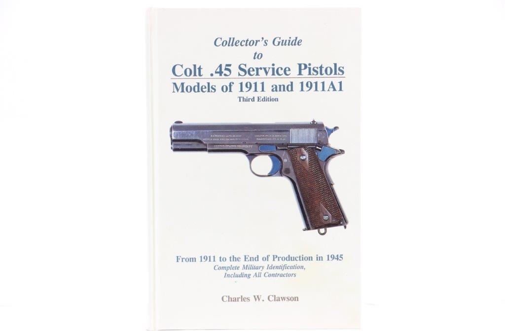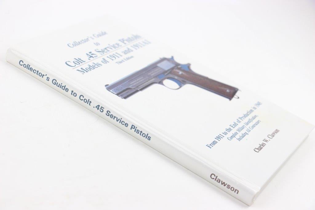 5/1/24 – This is a lightly used copy of Charles Clawson’s “Collector’s Guide to Colt .45 Service Pistols Models of 1911 and 1911A1”. This is a quick reference guide book, 146 pages with illustrations and charts. Includes complete military identification and all contractors for the model 1911 through WW2. Out of print and highly desired by collectors! All pages intact, in great-to-excellent condition with light signs of use on the exterior cover.