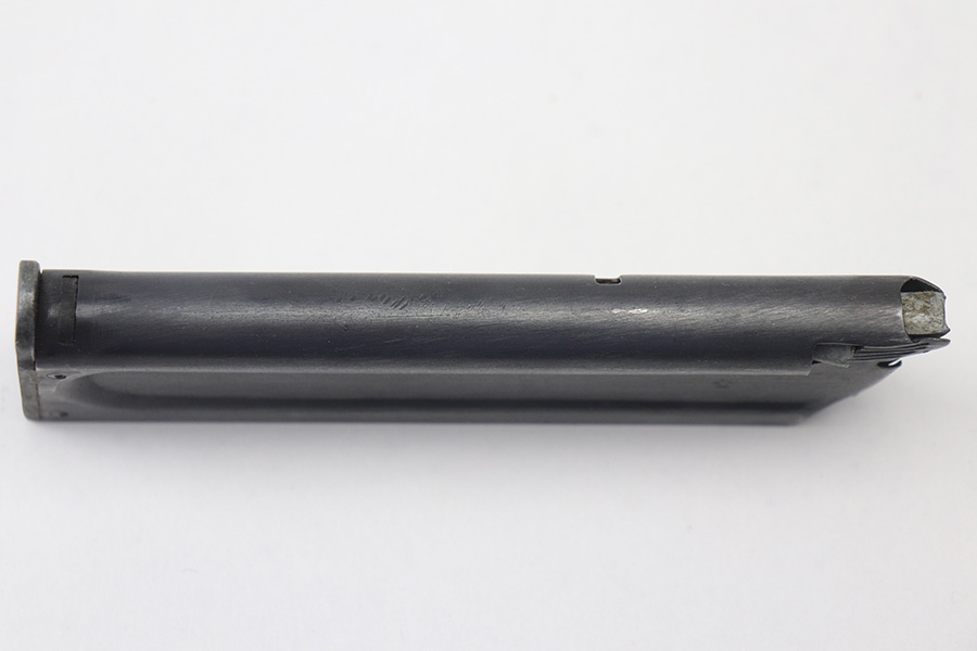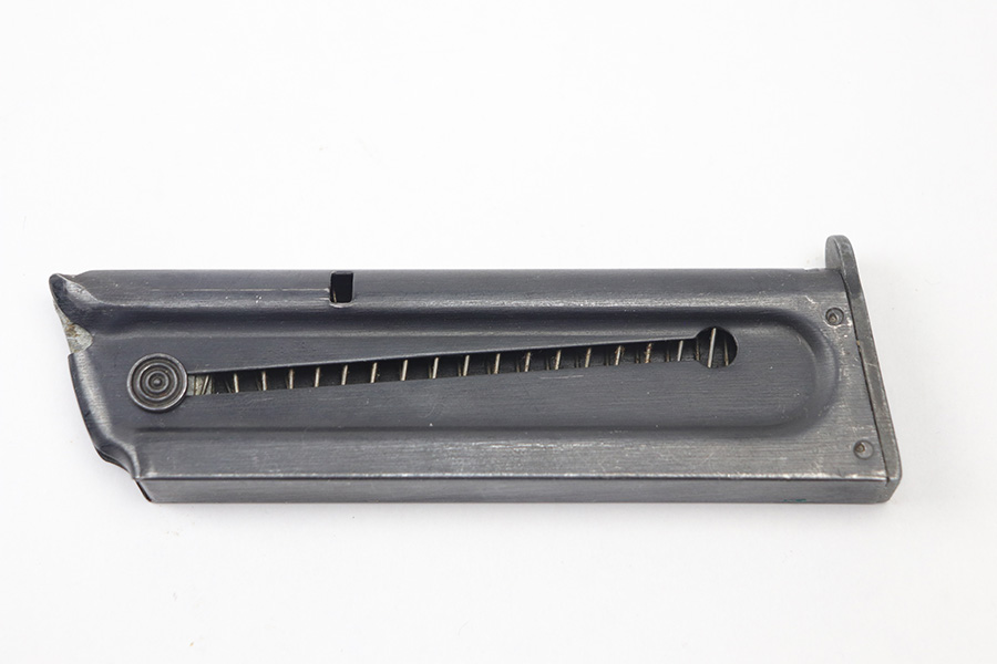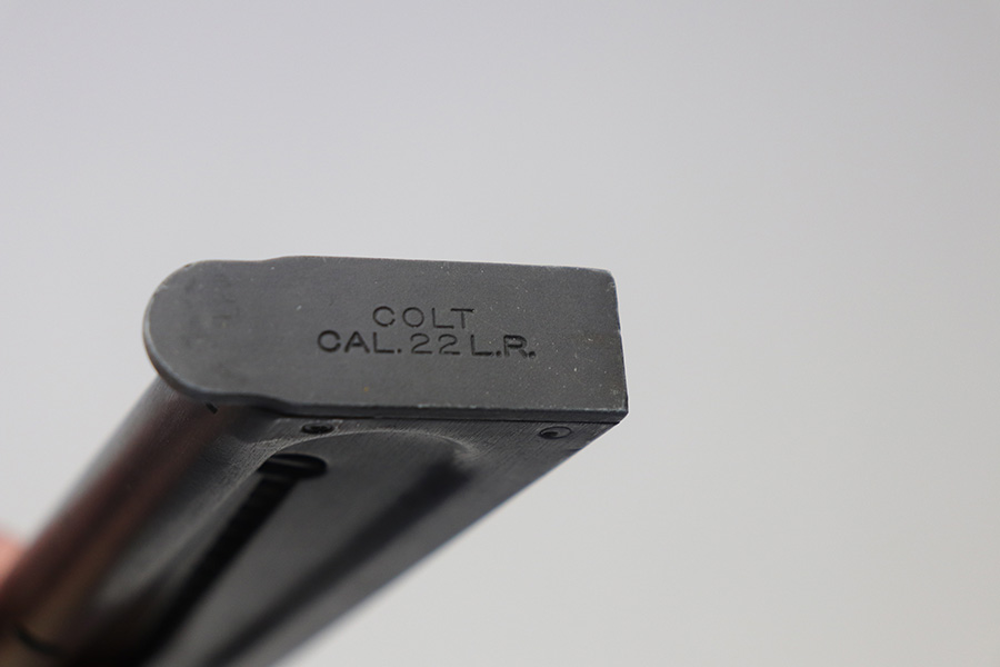 11/17/21 – This is an original Colt Ace magazine in great condition. Strong, functional spring and minimal finish loss. No notable flaws. Stamped on the base plate “Colt Cal. 22 L.R.”.