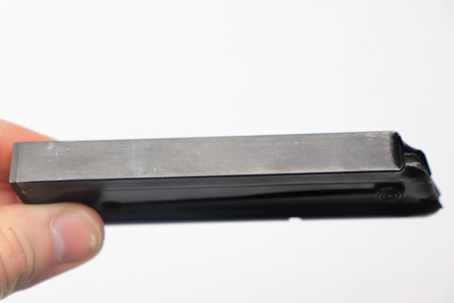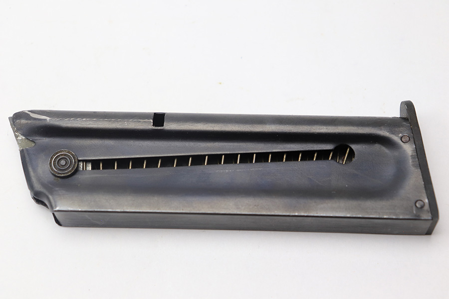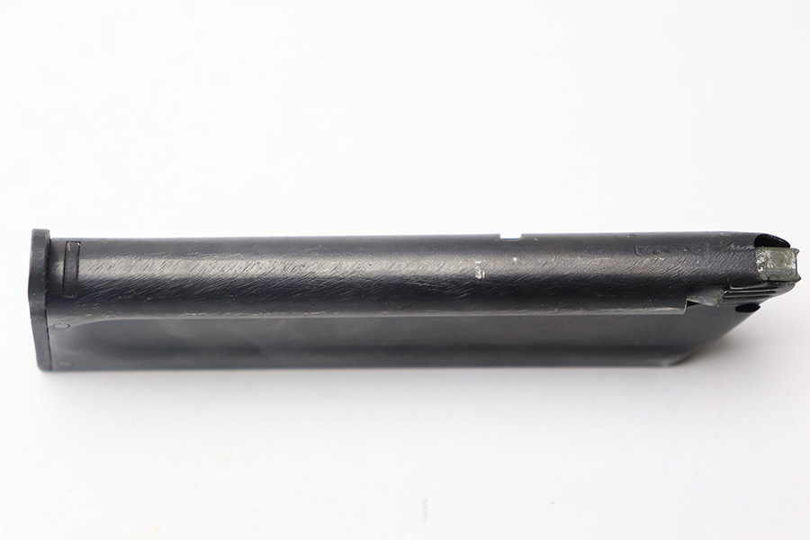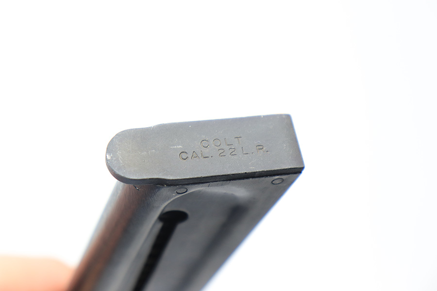 3/31/22 – This is a great example of a Colt Ace magazine. The magazine has a blued tube and base, which have retained a majority of their original finish, showing only minor scratchy wear throughout. The magazine bottom is marked “Colt Cal. 22 L.R.”