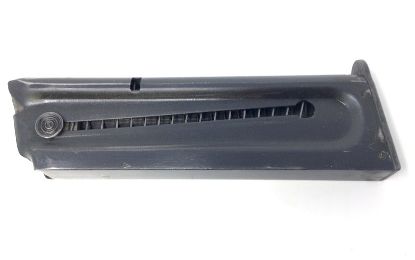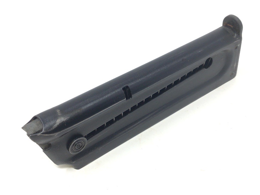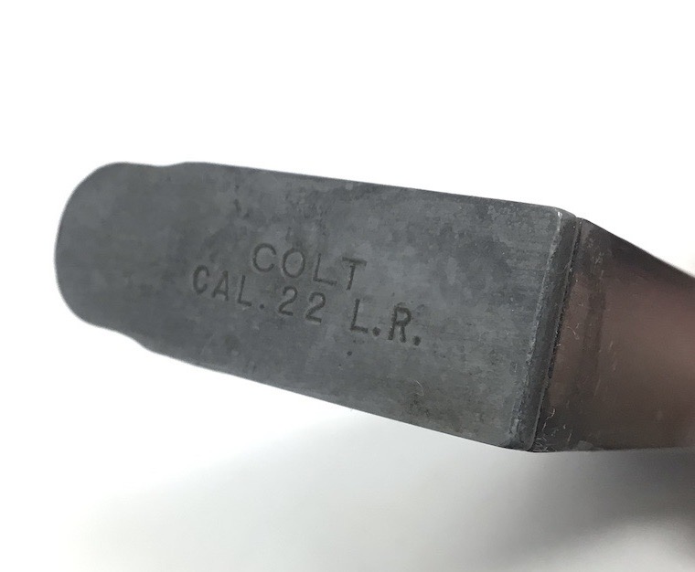 10/2/23 – This is a Colt New Service Model .22 Caliber pistol magazine. Excellent condition with clean finish throughout. Some mild roughness on the base, but minimal finish loss. Strong, fully functional spring.